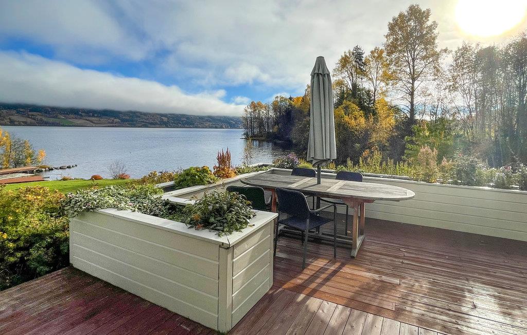 Ute på terrassen kan du også nyte utsikten til det fulle. Huset har egen badebrygge og badeplass, så du kan alltid avkjøle deg på varme dager. Eieren leier også ut kanoer for padling på Randsfjorden.