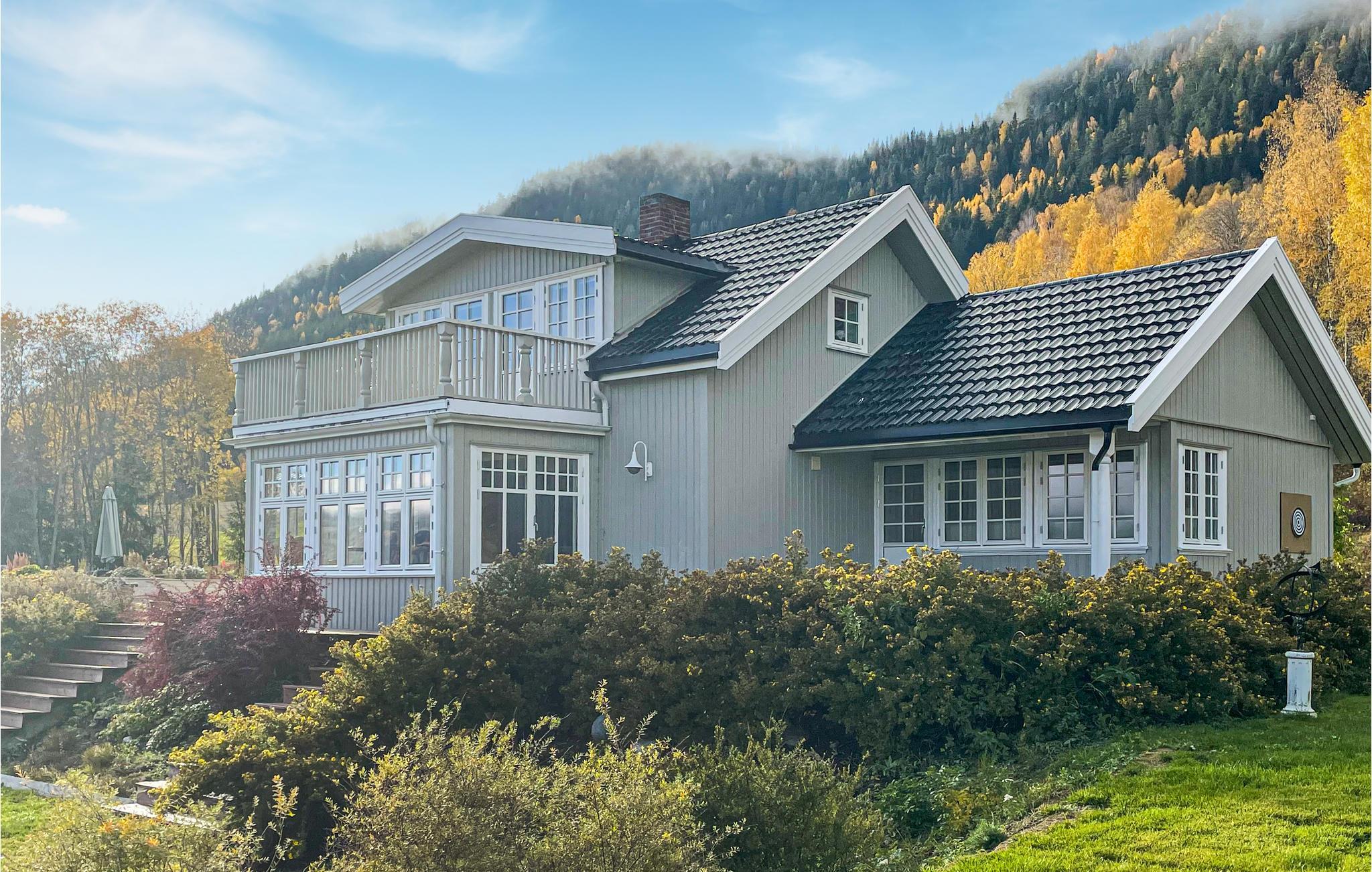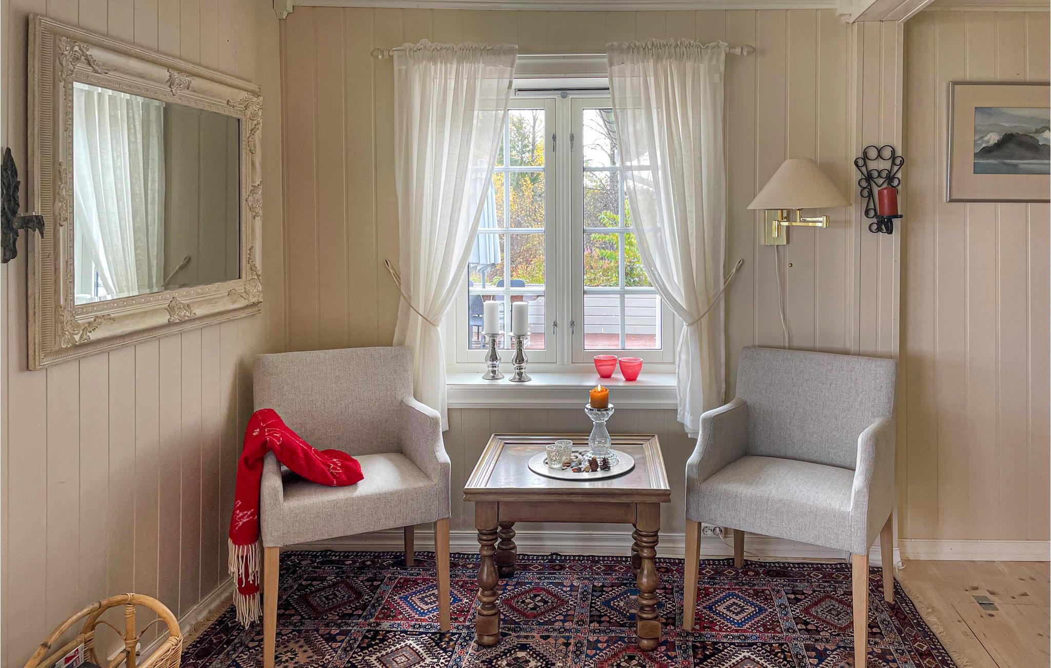 Det lyse og innbydende huset har en fantastisk beliggenhet i utkanten av skogen og Randsfjorden, Norges fjerde største innsjø. Det ønsker deg velkommen med et hjemmekoselig interiør i stil med et landsted. Her kan du slappe av med den beste panoramautsikten etter en aktiv dag. Se en film sammen, planlegg de neste dagenes aktiviteter mens flammene spraker i peisen.