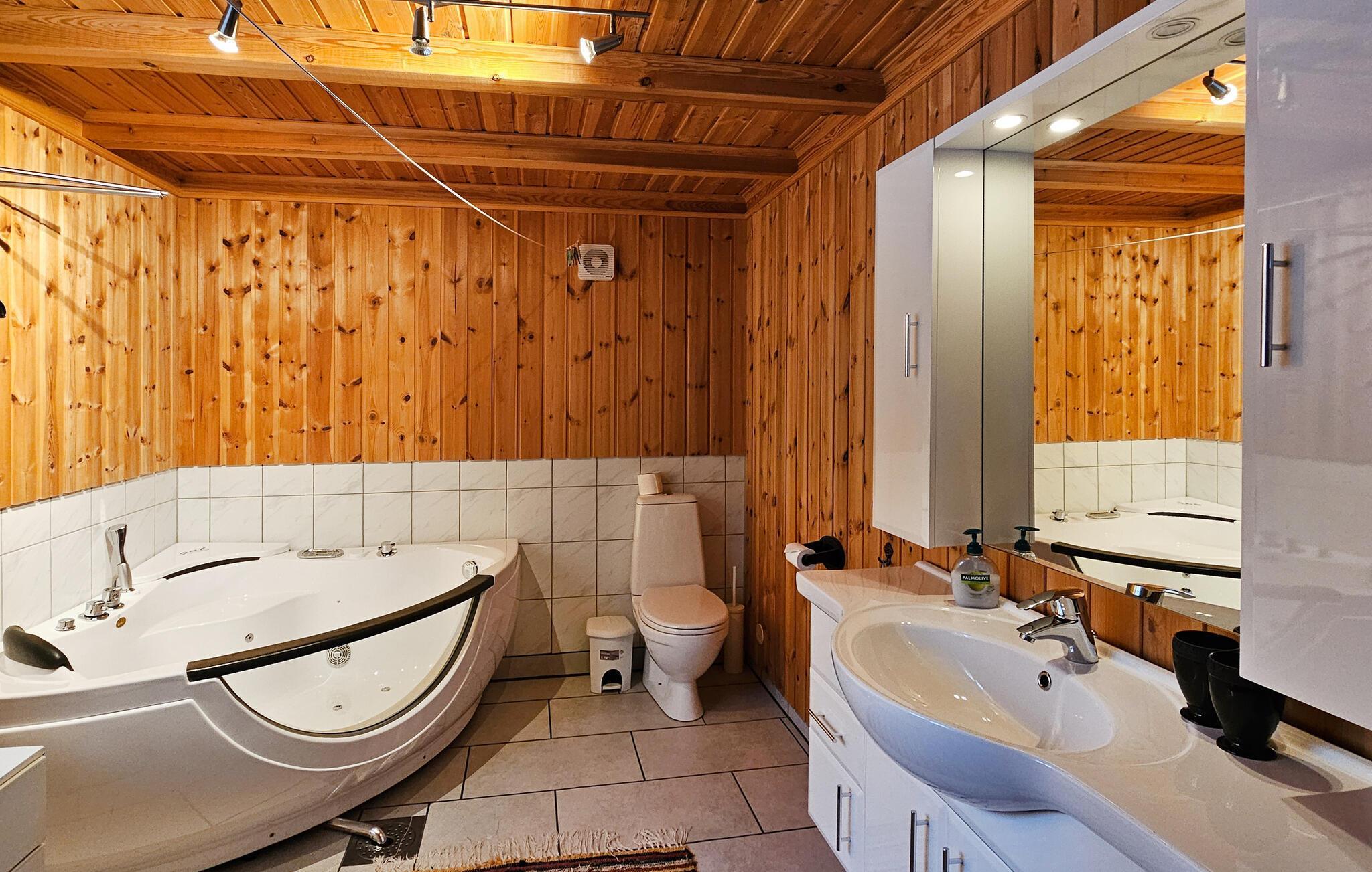 Dette komfortable feriehuset ligger i et pittoresk naturlandskap og byr på en koselig feelgood-atmosfære i de trepanelkledde rommene, samt mye fred og ro. Lag mat på det åpne, velutstyrte kjøkkenet, og nyt måltidene i den koselige spisestuen. Tenn opp i peisen og sett deg godt til rette i den store sofagruppen.