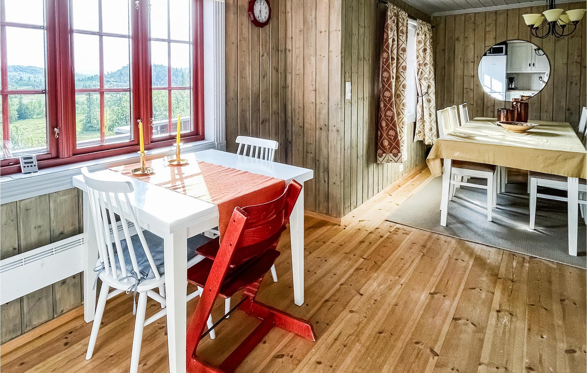 Ikke langt fra landsbyen Reinli ligger dette feriestedet som er et ideelt utgangspunkt for mange utendørsaktiviteter, og her vil alle naturelskere og fiskeentusiaster føle seg hjemme. Inne i denne boligen vil du føle ekte hyttefølelse og hygge. Når du kommer inn, vil du umiddelbart legge merke til den koselige røde hjørnesofaen og den innbydende innredningen. Gled dere til spillekvelder ved spisebordet og til å lage mat sammen. Alt handler om å nyte livet sammen. Fra hytta har du en fantastisk utsikt over det eventyrlige og mystiske fjellandskapet. Nyt juice, te og frisk frukt på terrassen og gå på tur igjen.