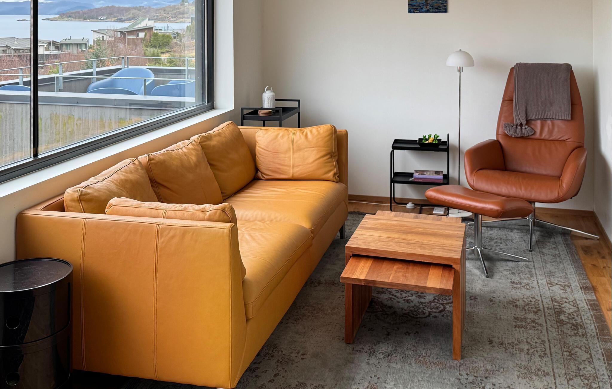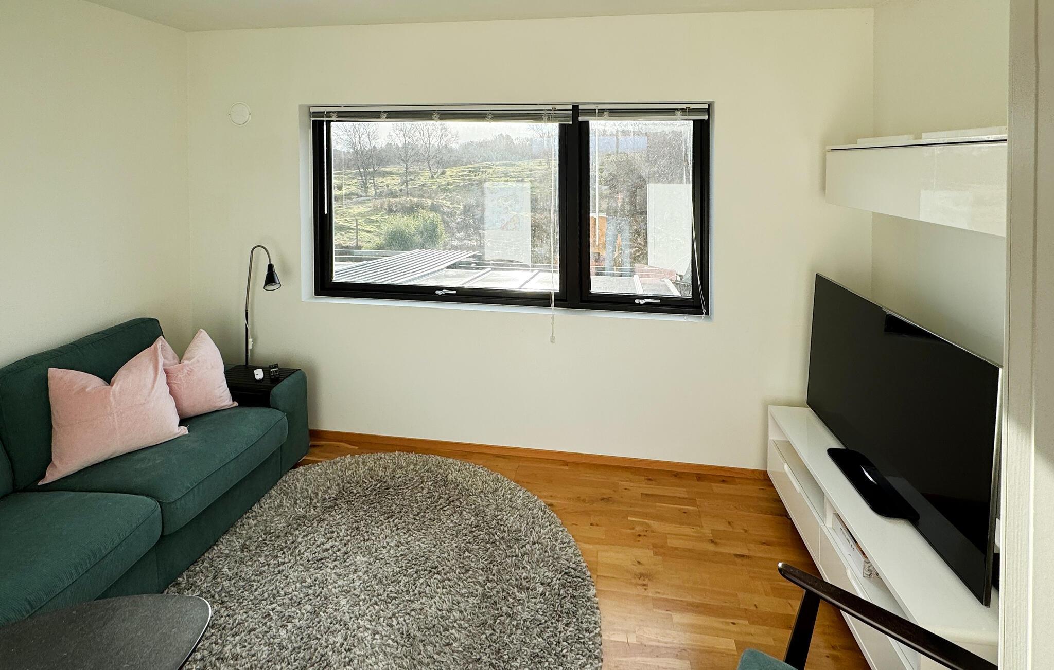 Nyt den fantastiske panoramautsikten over fjorden fra dette moderne feriehuset.