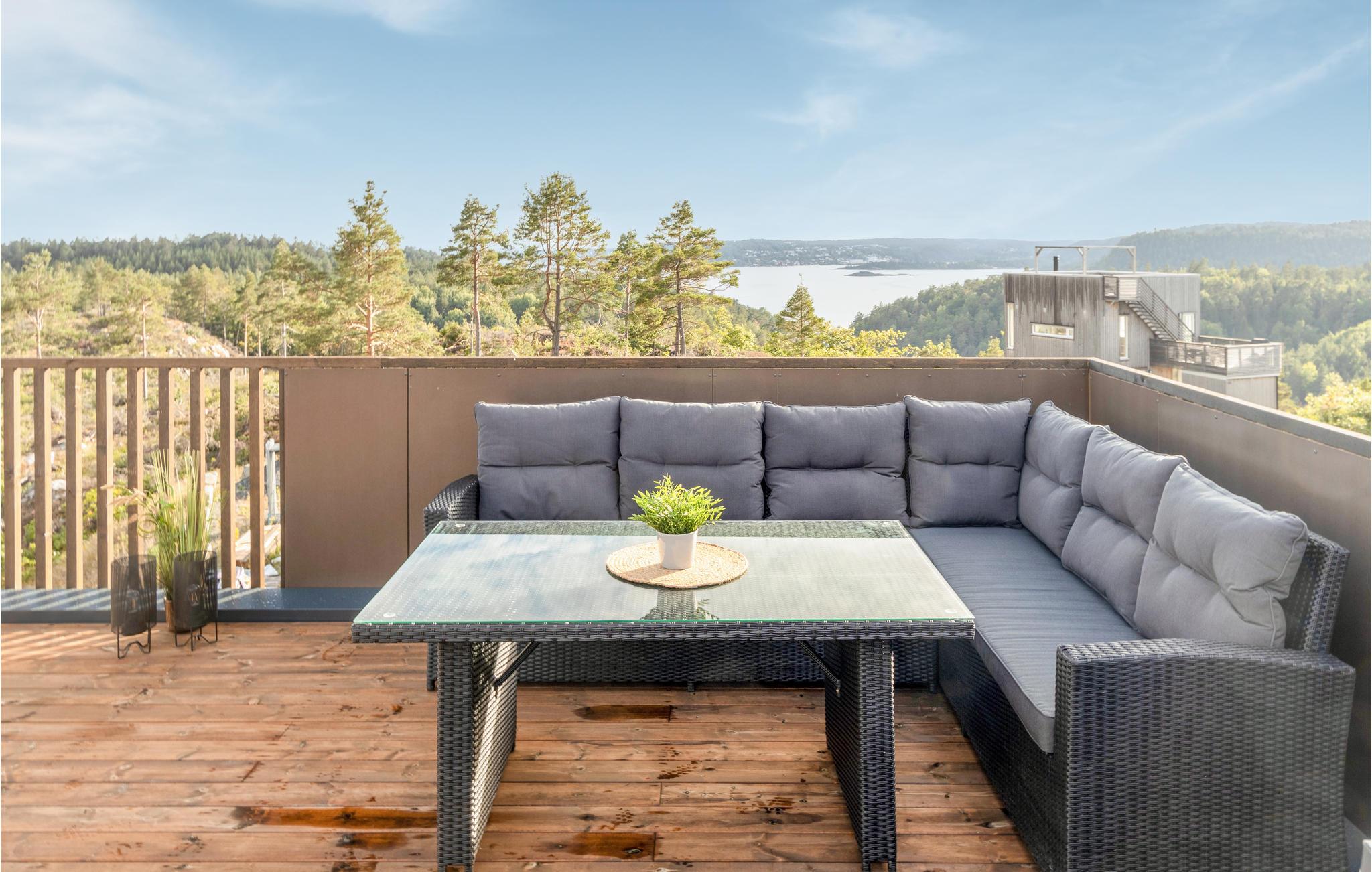 Velkommen til Øysang på Sørlandet. Dette moderne feriehuset er godt utstyrt med alt du trenger for en hyggelig ferie med familie eller venner. Her kan du rusle ut på takterrassen med kaffekoppen i hånden og nyte vakre soloppganger og panoramautsikt over havet. Stuen er innredet med et åpent kjøkken og tilbyr også her fantastisk utsikt over omgivelsene.