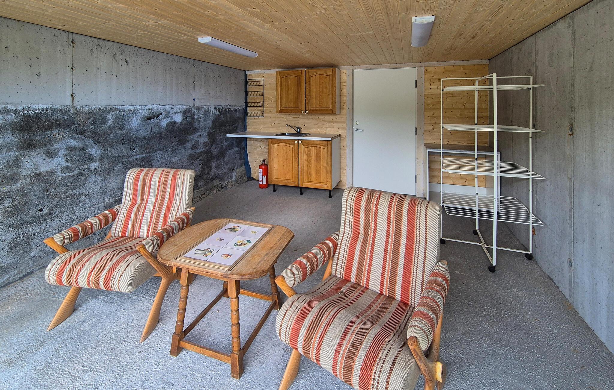 På den åpne terrassen kan du nyte den fredelige atmosfæren mens du nyter en avslappet frokost ved vannet. På varme dager kan du forfriske deg i det klare vannet i fjorden, eller bruke båten til en fisketur.