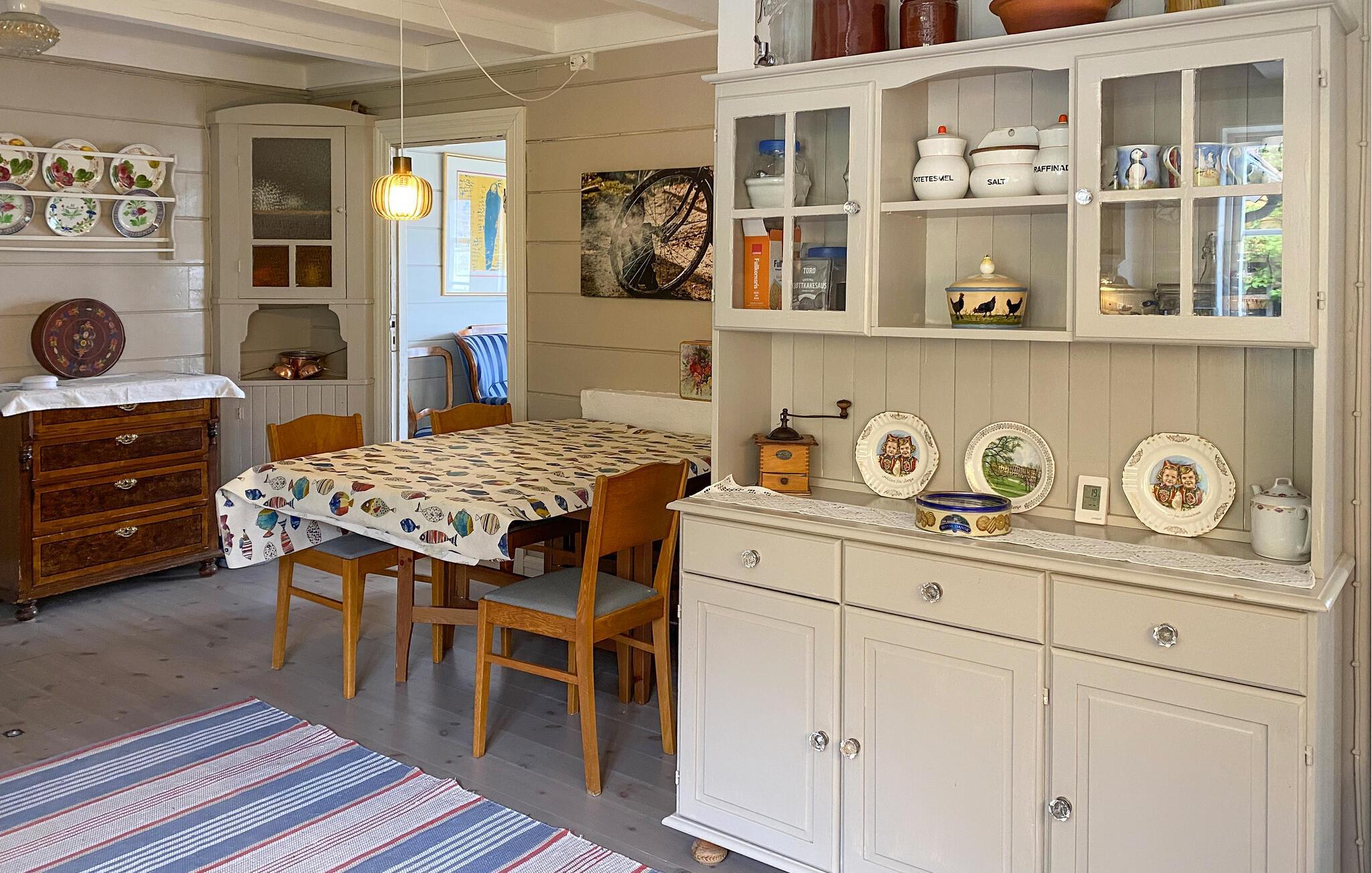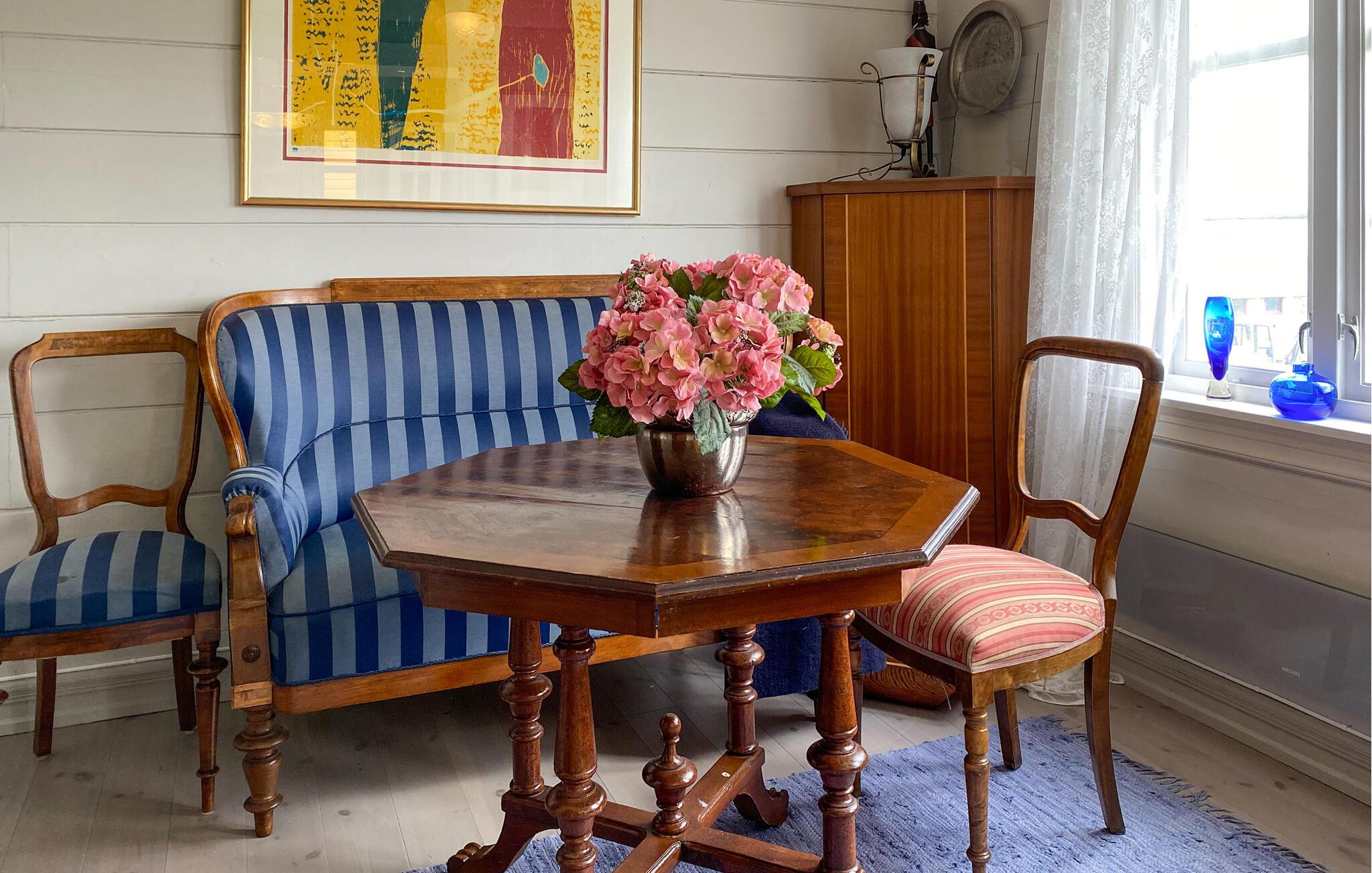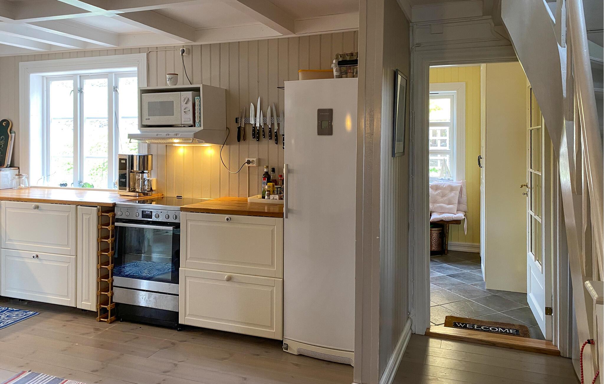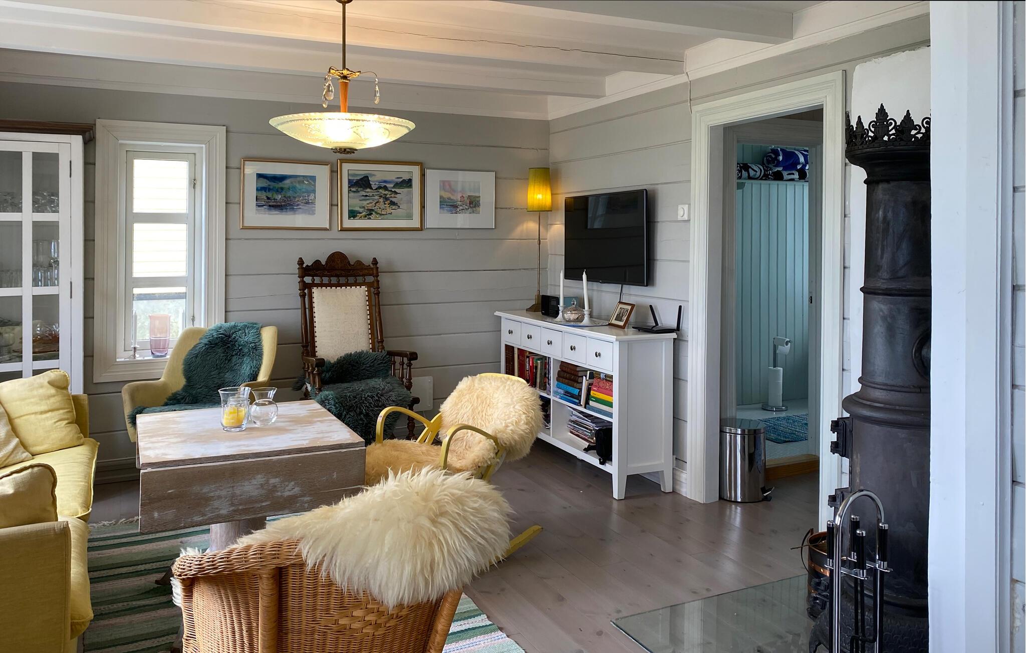 Stig inn og la deg inspirere av hyggen i dette nennsomt restaurerte huset, hvor harmoniske dager sammen med dine nærmeste venter på deg. Gled deg til hyggelige matlagingskvelder på det romslige kjøkkenet, og sett deg godt til rette i stuen etter en lang dag i den friske sjøluften, der du kan lytte til den milde knitringen fra peisen under muntre spillkvelder eller stille lesestunder.
