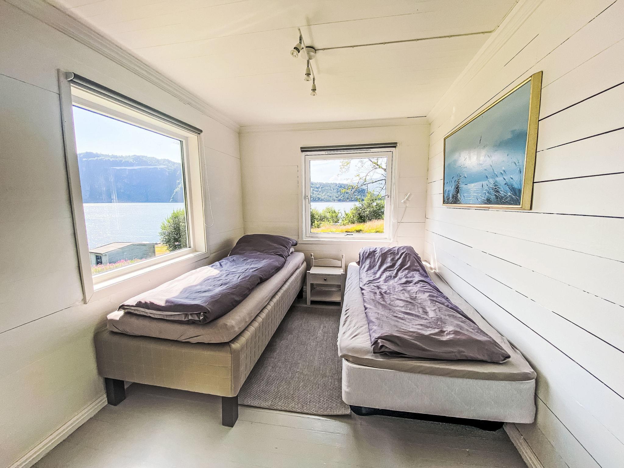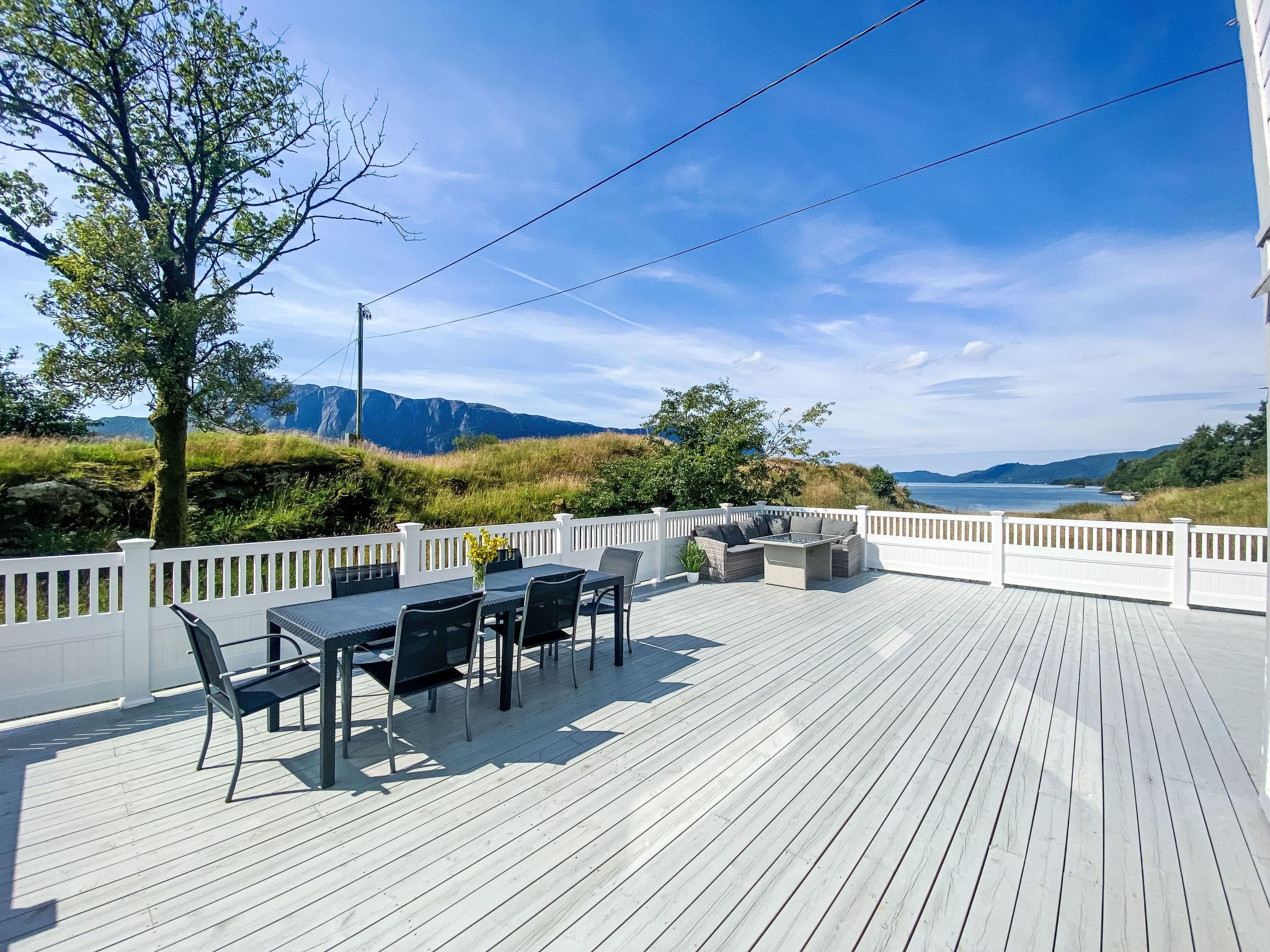 "Sjøtun", 5-room house 116 m2 on 2 levels. Bright, comfortable and beautiful furnishings: living/dining room with Scandinavian wood stove, dining table and TV. Exit to the terrace. Open kitchen (oven, dishwasher, 4 ceramic glass hob hotplates, microwave, freezer, electric coffee machine). Exit to the terrace. Shower/WC. Forced-air heating, underfloor heating. Upper floor: (steep stair), 1 open room with 1 double bed (180 cm, length 200 cm). 2 rooms, each room with 1 bed (90 cm, length 200 cm). 1 room with 2 beds (90 cm, length 200 cm). Sleeping alcove with 1 sleeping facility. Sep. WC. Large terrace 100 m2. Terrace furniture, barbecue. Beautiful panoramic view of the sea, the mountains and fjord. Facilities: washing machine, baby cot. Internet (WiFi, free). Please note: non-smoking house. TV via WIFI. Freeze approx. 300 l. Instead of an enclosed bedroom, some sleeping areas are located in an open-plan area (gallery, alcove, etc.). 924531169