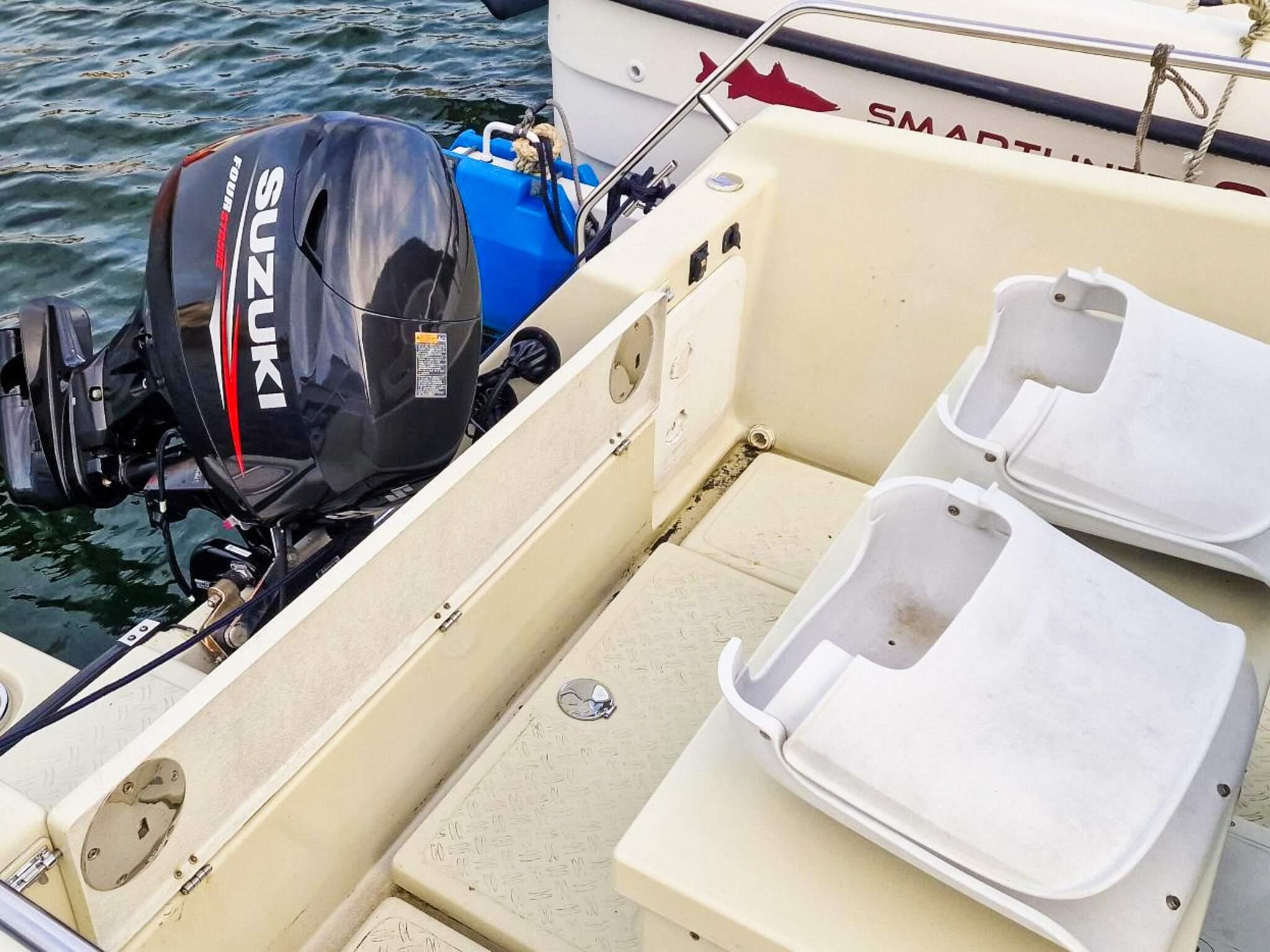 1x 18 fots Hobby540 med 50 HK Suzuki, 6 stangholdere