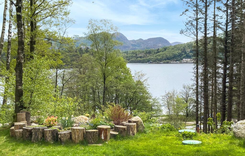 Opplev de lange sommerkveldene på terrassen og nyt den vakre hagen, mens idyllisk natur omgir deg og fører deg til de små strendene i Storavatnet bare noen få meter unna.