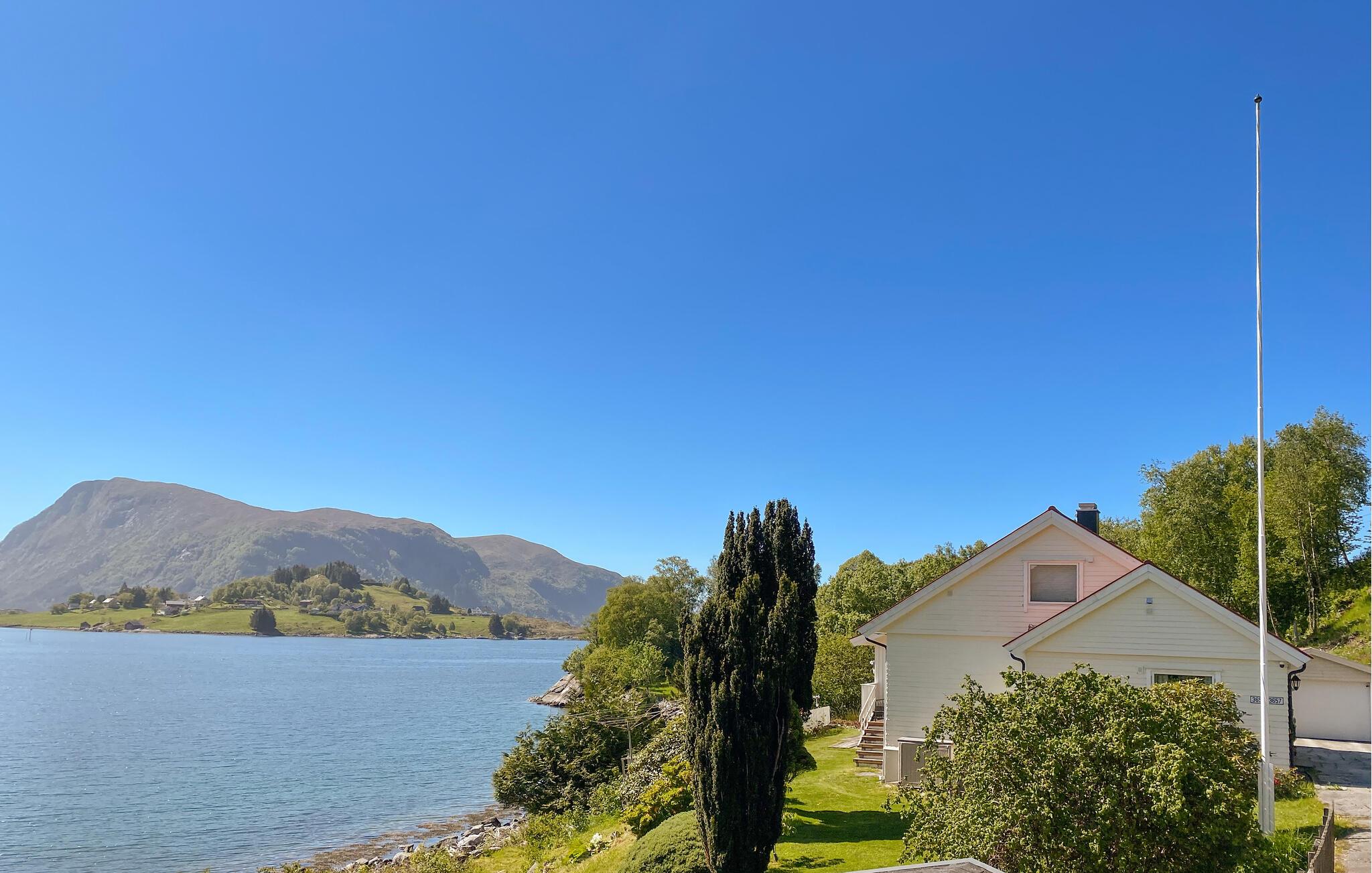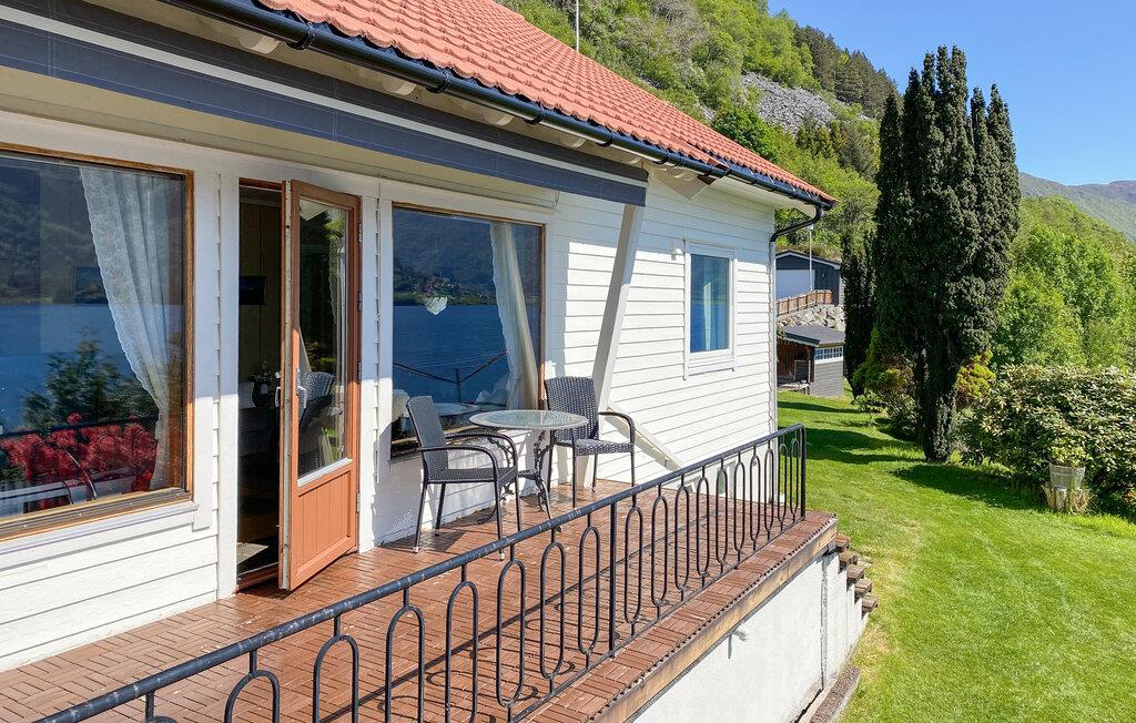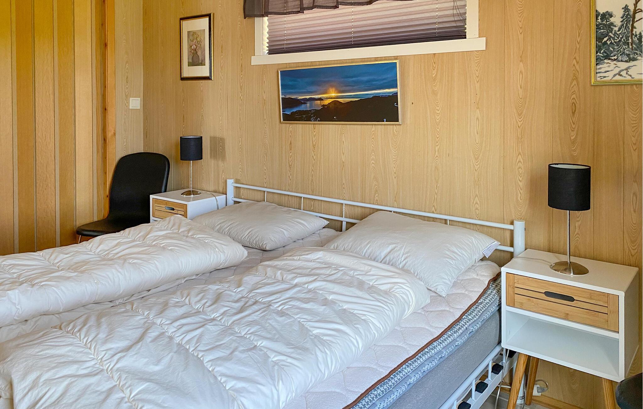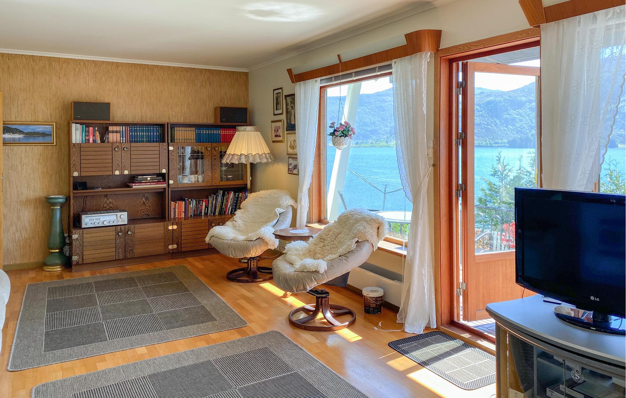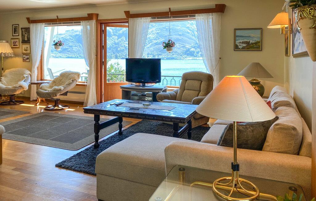 Opplev en avslappende ferie rett ved vannet, omgitt av et imponerende fjordlandskap. Den koselige ferieleiligheten er ideell for rolige dager med utsikt og utflukter i naturen. Tilbring avslappende timer i den romslige stuen med de store vinduene, der lyset faller inn i de komfortable lenestolene og sofaene. Her kan du kose deg med en bok eller se en film. Kjøkkenet er funksjonelt innredet, med god plass til felles måltider og et praktisk spisebord for sosialt samvær med familie eller venner.