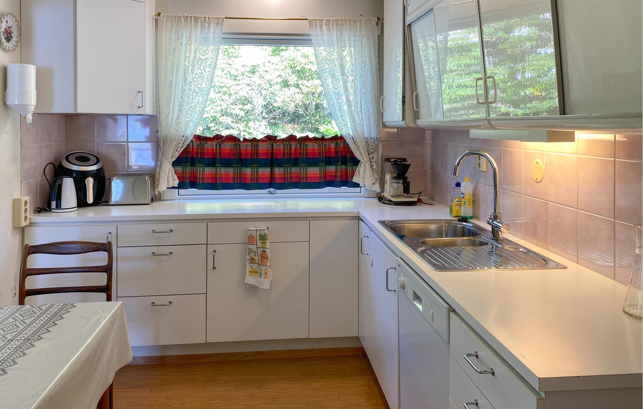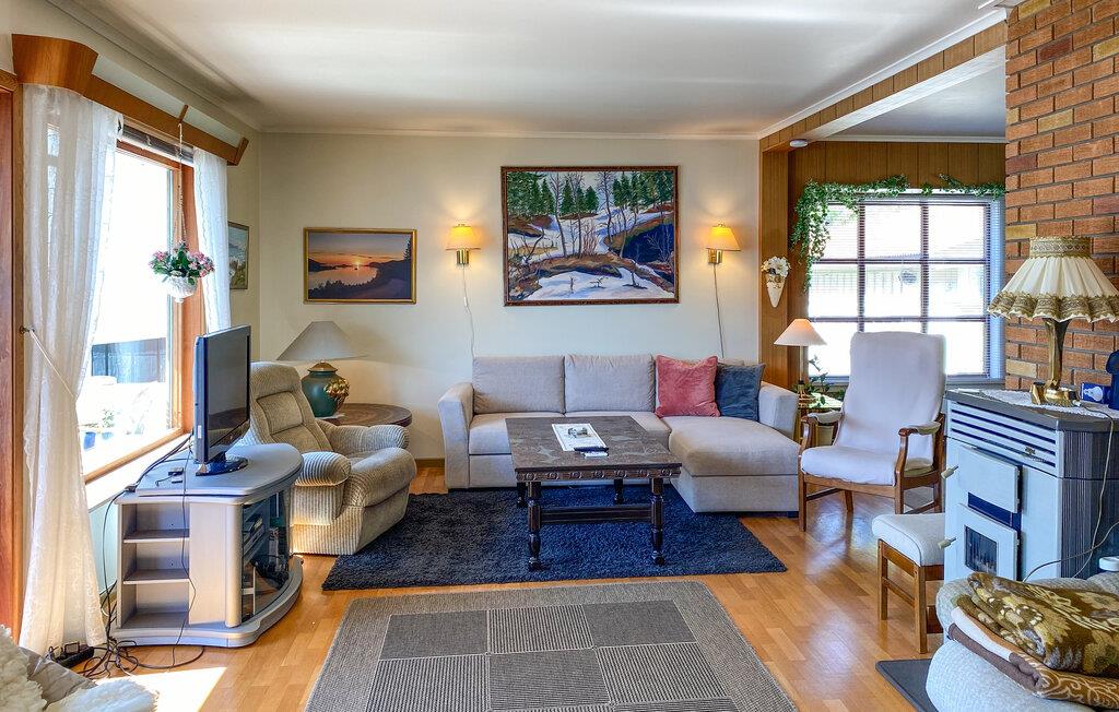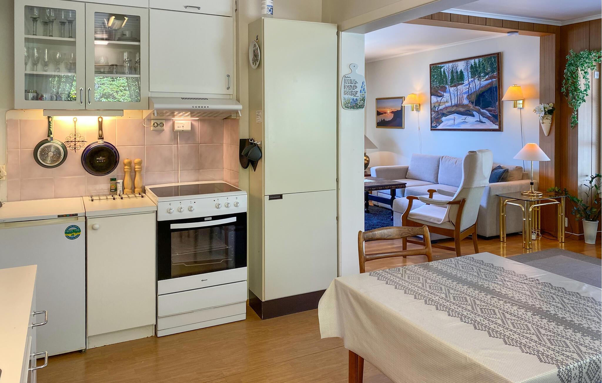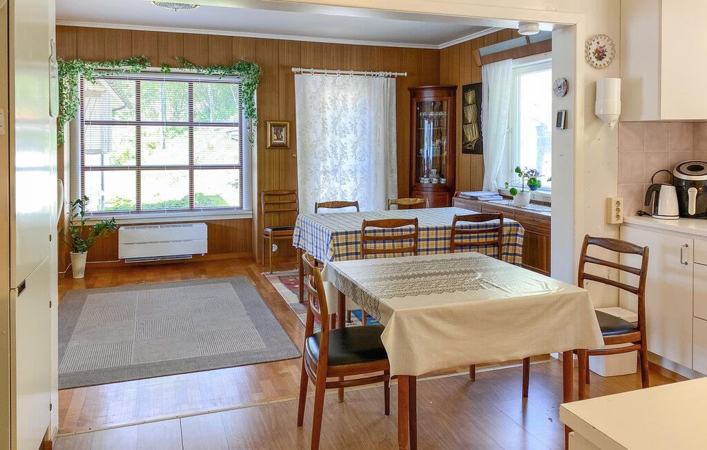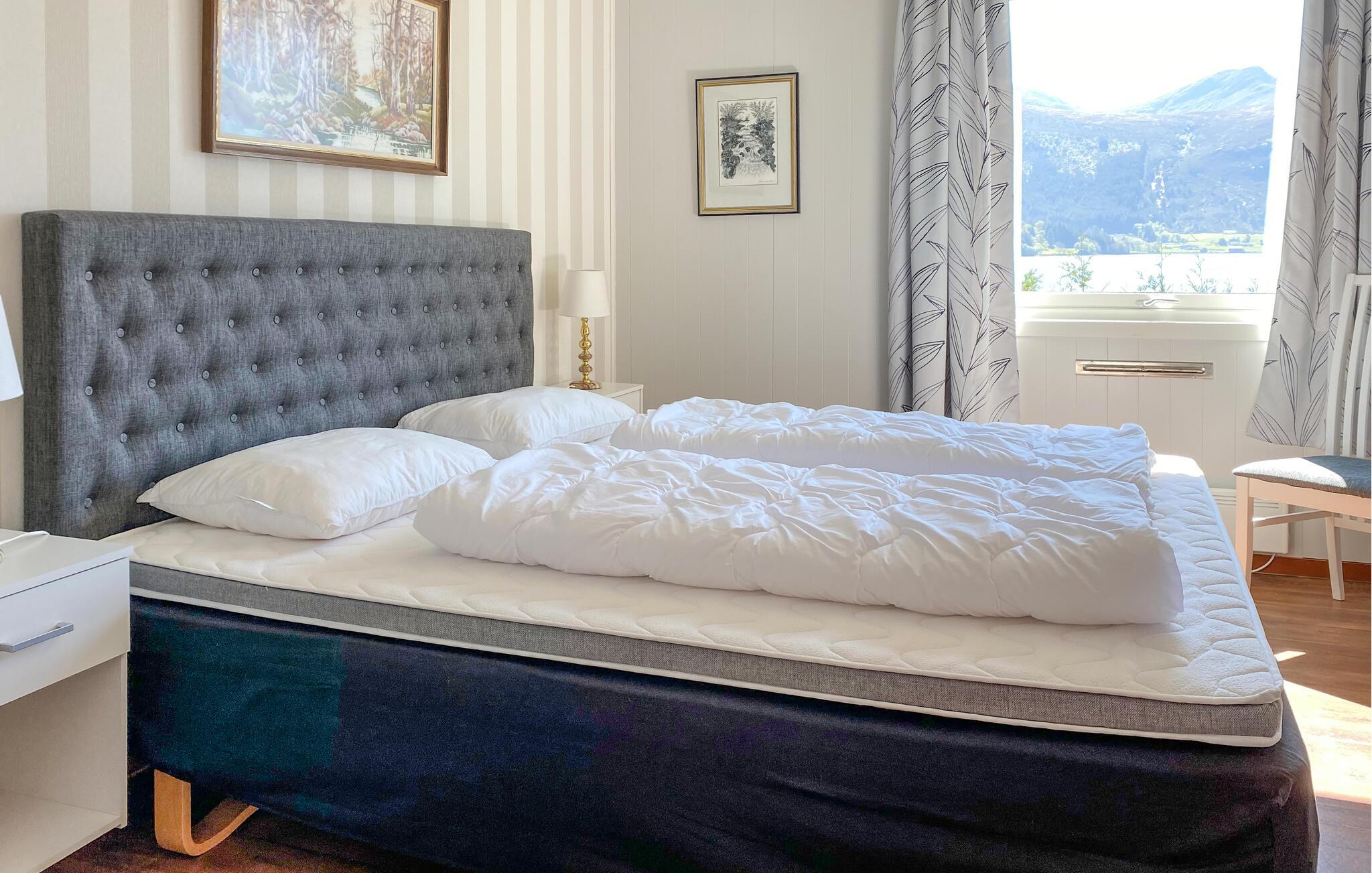 Opplev en avslappende ferie rett ved vannet, omgitt av et imponerende fjordlandskap. Den koselige ferieleiligheten er ideell for rolige dager med utsikt og utflukter i naturen. Tilbring avslappende timer i den romslige stuen med de store vinduene, der lyset faller inn i de komfortable lenestolene og sofaene. Her kan du kose deg med en bok eller se en film. Kjøkkenet er funksjonelt innredet, med god plass til felles måltider og et praktisk spisebord for sosialt samvær med familie eller venner.