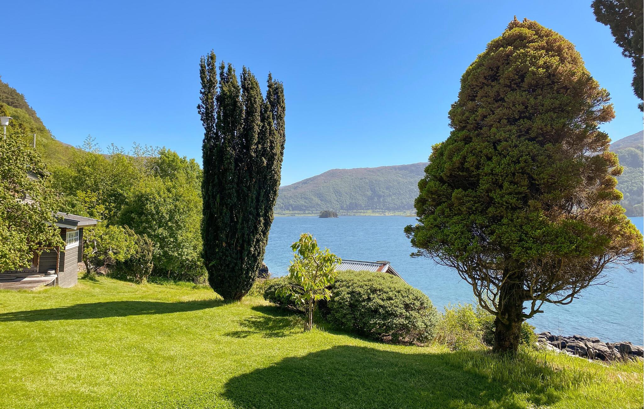 Sett deg ned med en kopp kaffe på terrassen eller i det lune hageområdet og nyt utsikten over vannet og fjellene rundt. Det velstelte uteområdet med plen og fargerike planter gir deg mange muligheter til å slappe av.
