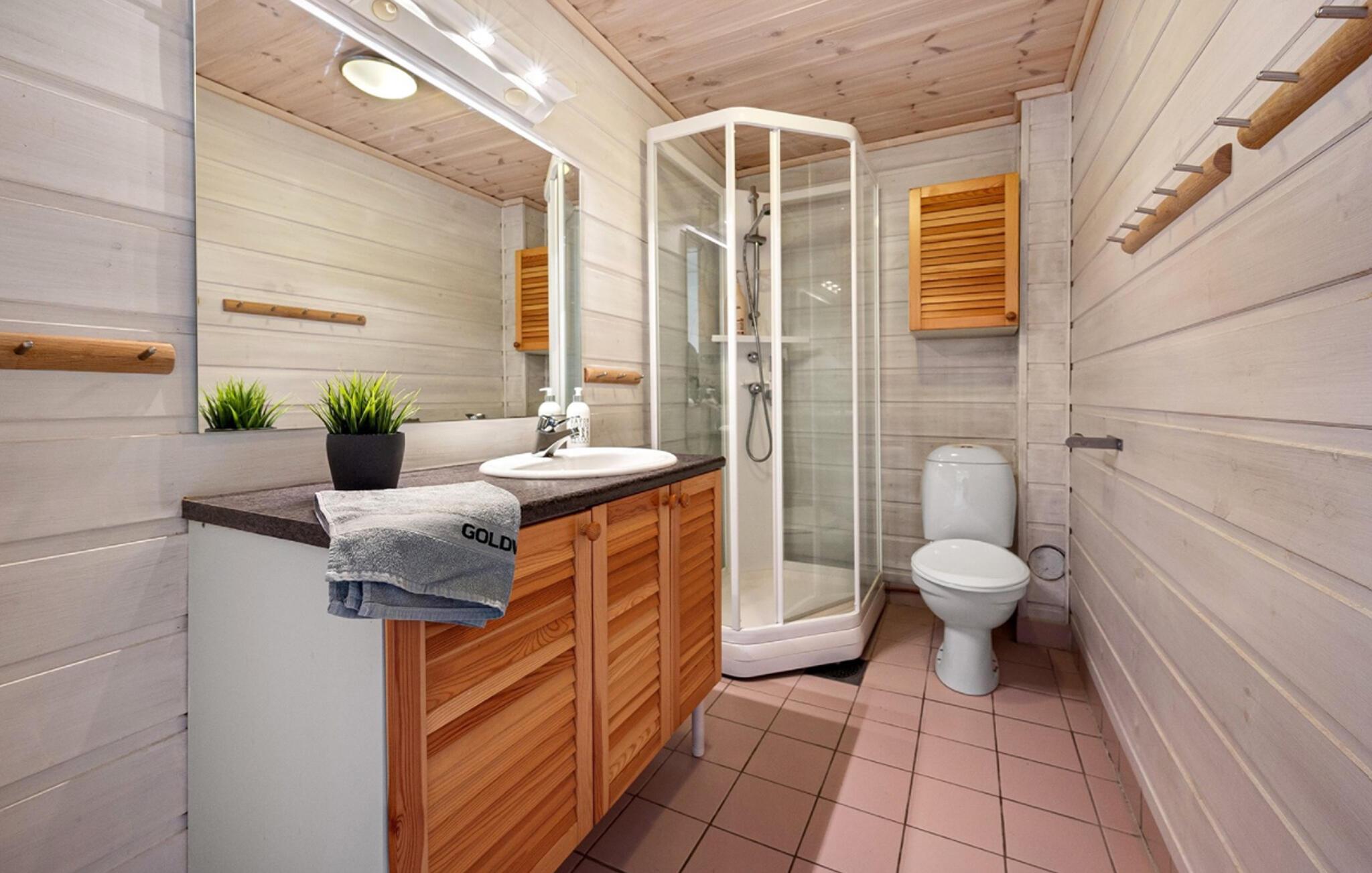 - WC med varmt og kaldt vann, Dusj