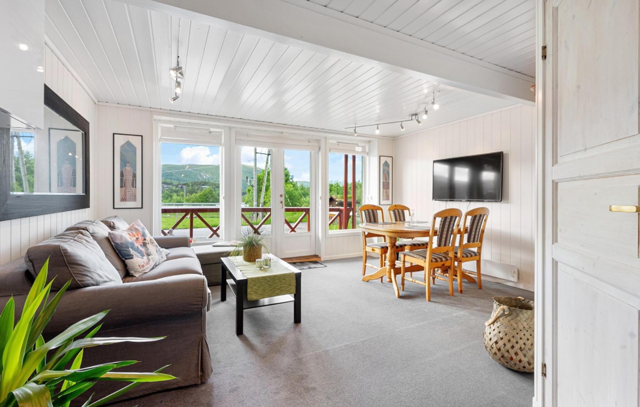 Tilbring en hyggelig ferie i en vennlig ferieleilighet omgitt av et sjarmerende naturlandskap. Legg hverdagen bak deg og se frem til opplevelsesrike dager mellom fjell, skog og innsjøer. Leiligheten er den perfekte rammen for avslapping og aktiviteter når som helst på året. Tilbered måltider sammen på det praktiske kjøkkenet, eller slapp av i den koselige stuen etter en lang dag ute. Her er det plass til samtaler, spill eller bare litt fred og ro med vakker utsikt over de grønne omgivelsene.