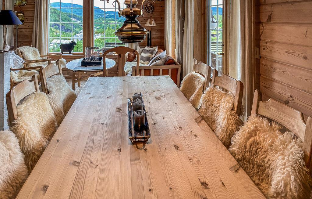 Dette vakre huset kombinerer komfort og hygge på en behagelig måte. Store vinduer, rustikke møbler og vakre detaljer skaper en koselig atmosfære der du raskt kan slappe av og lade batteriene. Tilbring avslappende timer i den komfortable sofaen eller lag deilige måltider sammen på kjøkkenet.
