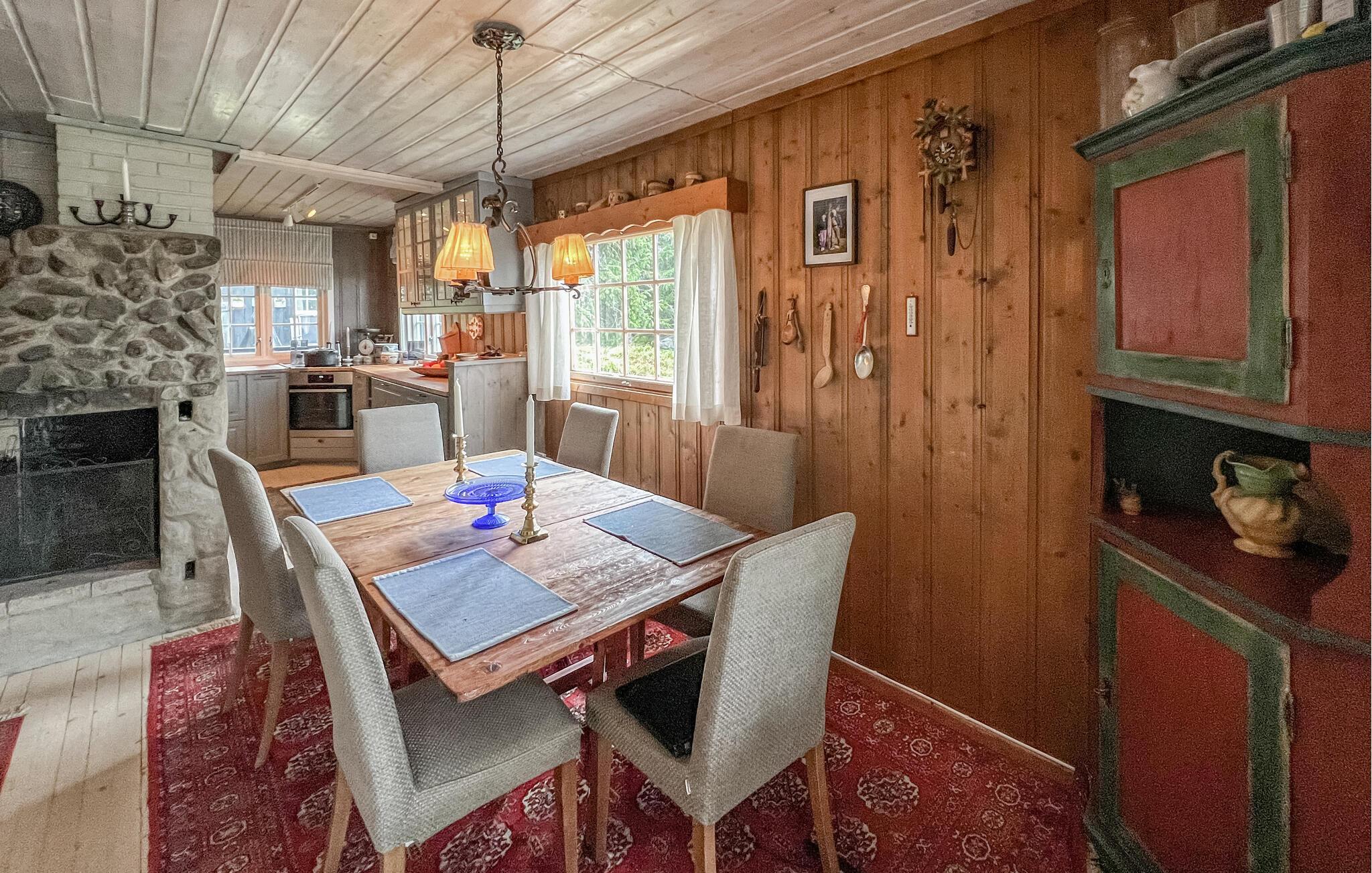 Etterpå kan du sette deg til rette i den romslige stuen foran peisen. De lyse trepanelene og de innbydende møblene skaper en varm atmosfære. Bruk den åpne spisestuen til felles måltider i en koselig atmosfære, og nyt kveldene med levende lys og stimulerende samtaler. Det vakre kjøkkenet inviterer deg til å tilberede nordiske spesialiteter. Her blir matlagingen en avslappet opplevelse.