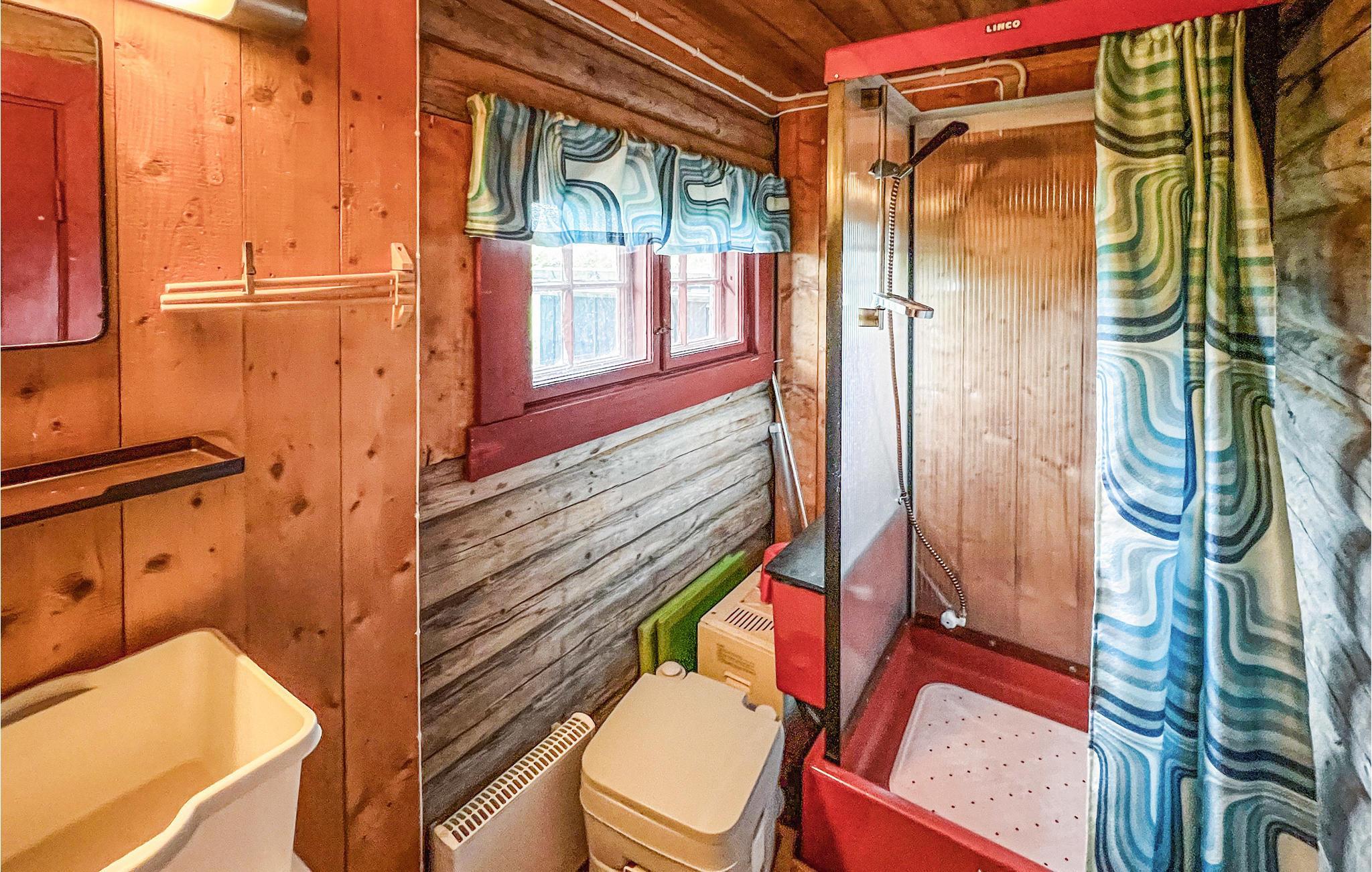 Merk: Det er ikke innlagt vann på hytta, så det må hentes i kanner fra en vannpost ca. 300 meter unna. Det er en pumpedusj på badet.