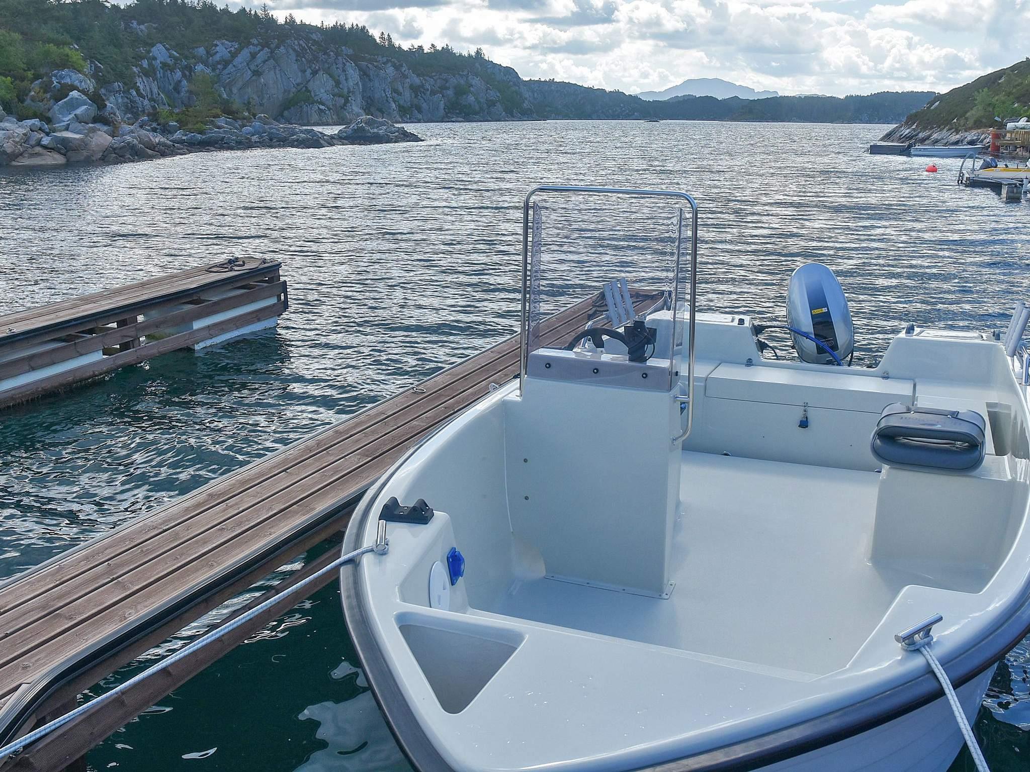 Overdekt fiskefileteringsplass med vann og lys. Kort vei med båtene til meget gode fiskeplasser i fjord eller åpnere farvann. Området er svært fiskerikt hele året. Mange øyer og små fjorder avskjermer og gjør at du kan fiske selv om været er dårlig. Båtene ligger ved en stor, stabil flytebrygge i betong rett foran feriehuset.