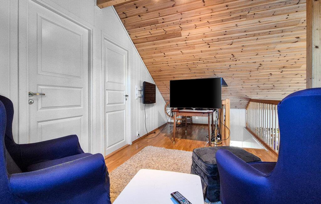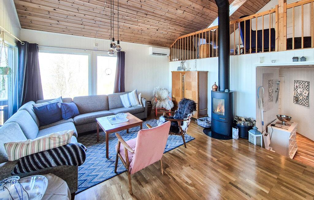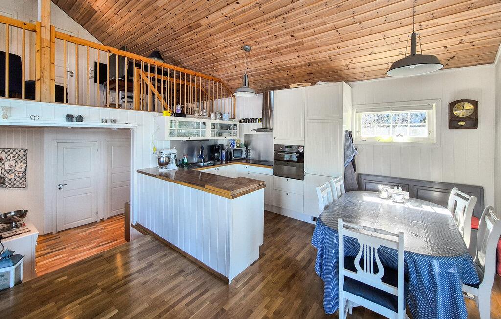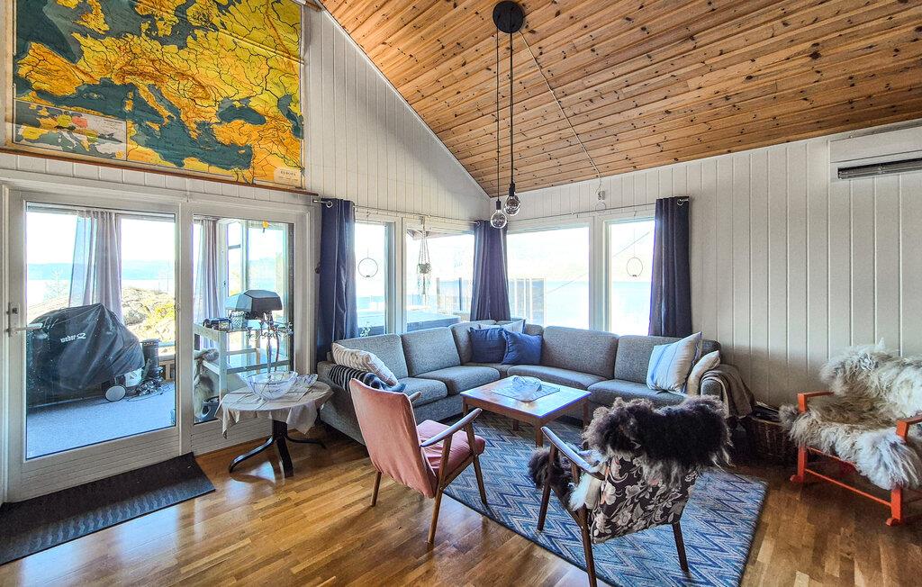 Dette romslige feriehuset ligger på en idyllisk tomt, og tilbyr deg et koselig og komfortabelt tilfluktssted for avslappende dager med dine nærmeste. Etter en lang dag i frisk sjøluft kan du styrke deg med gode måltider ved det innbydende spisebordet, tenne opp i vedovnen og kose deg i den romslige sofagruppen for koselige TV-kvelder.