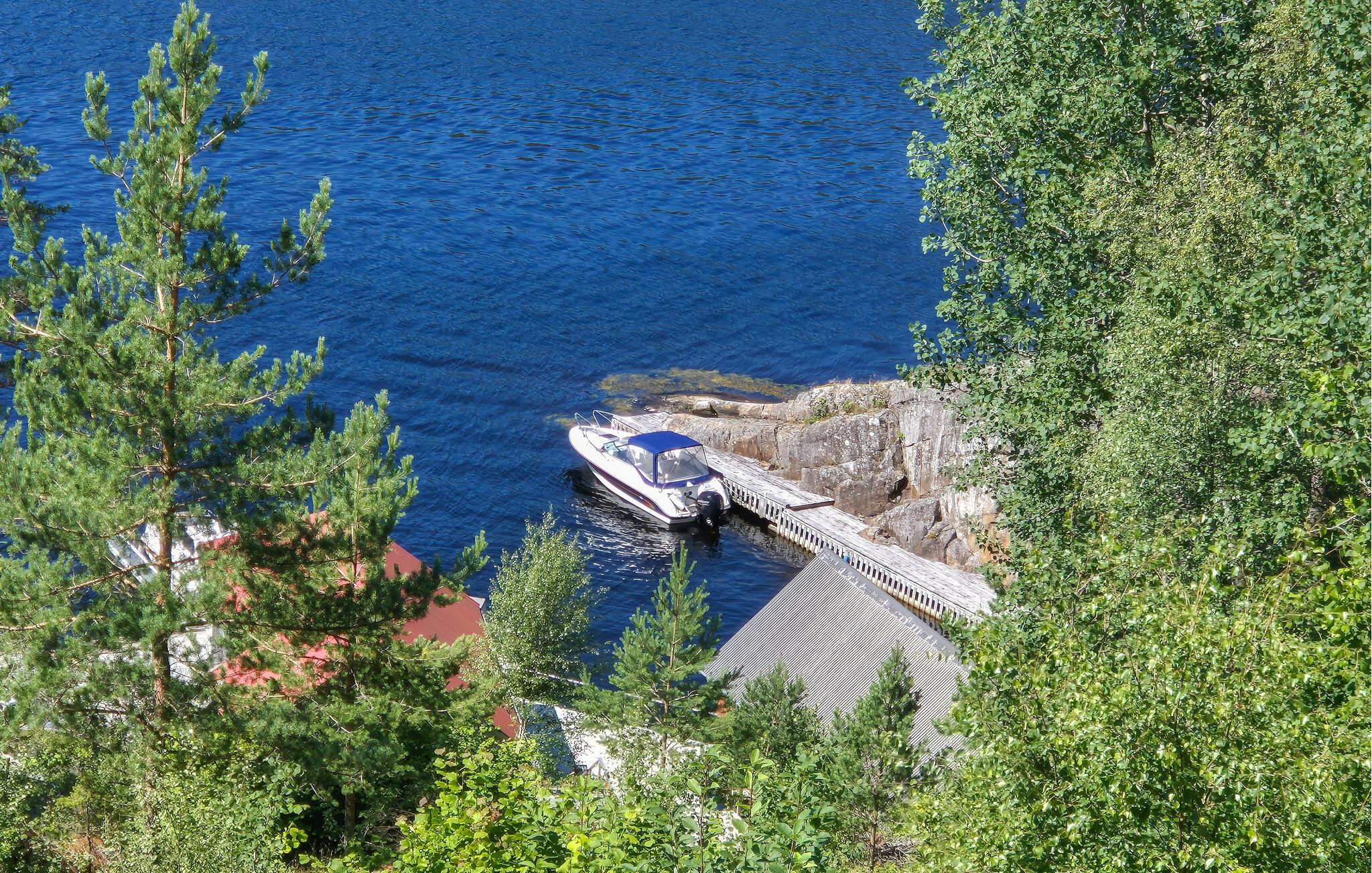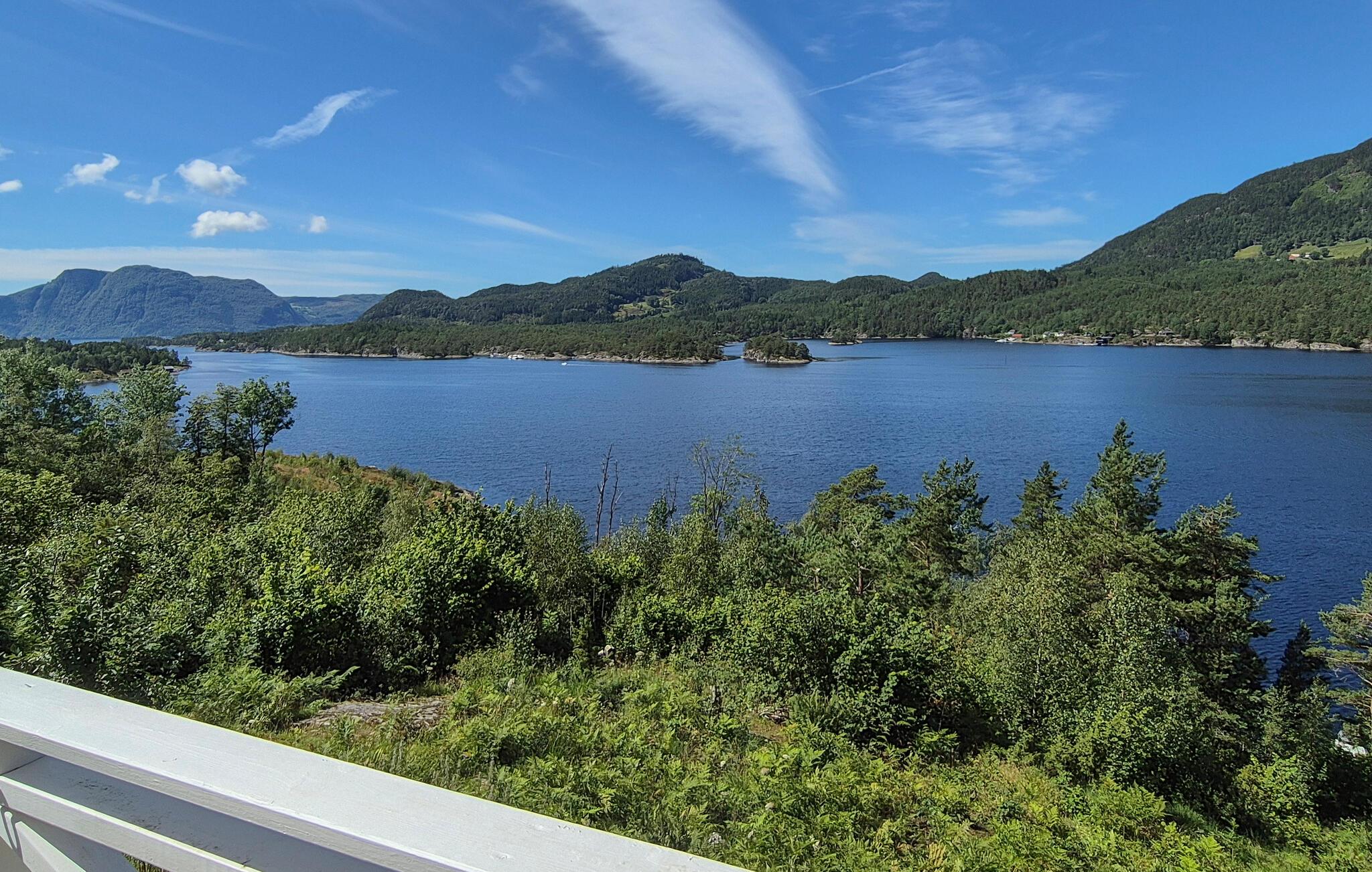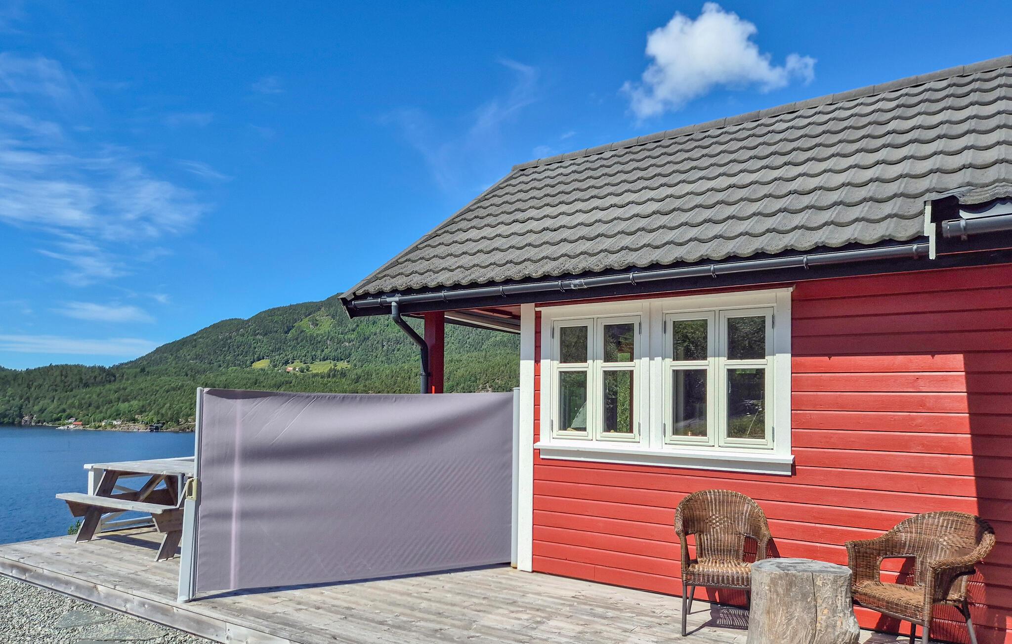 På terrassen kan du slappe av tett på naturen og nyte den fantastiske utsikten, mens en badebrygge inviterer til en forfriskende dukkert i fjorden.