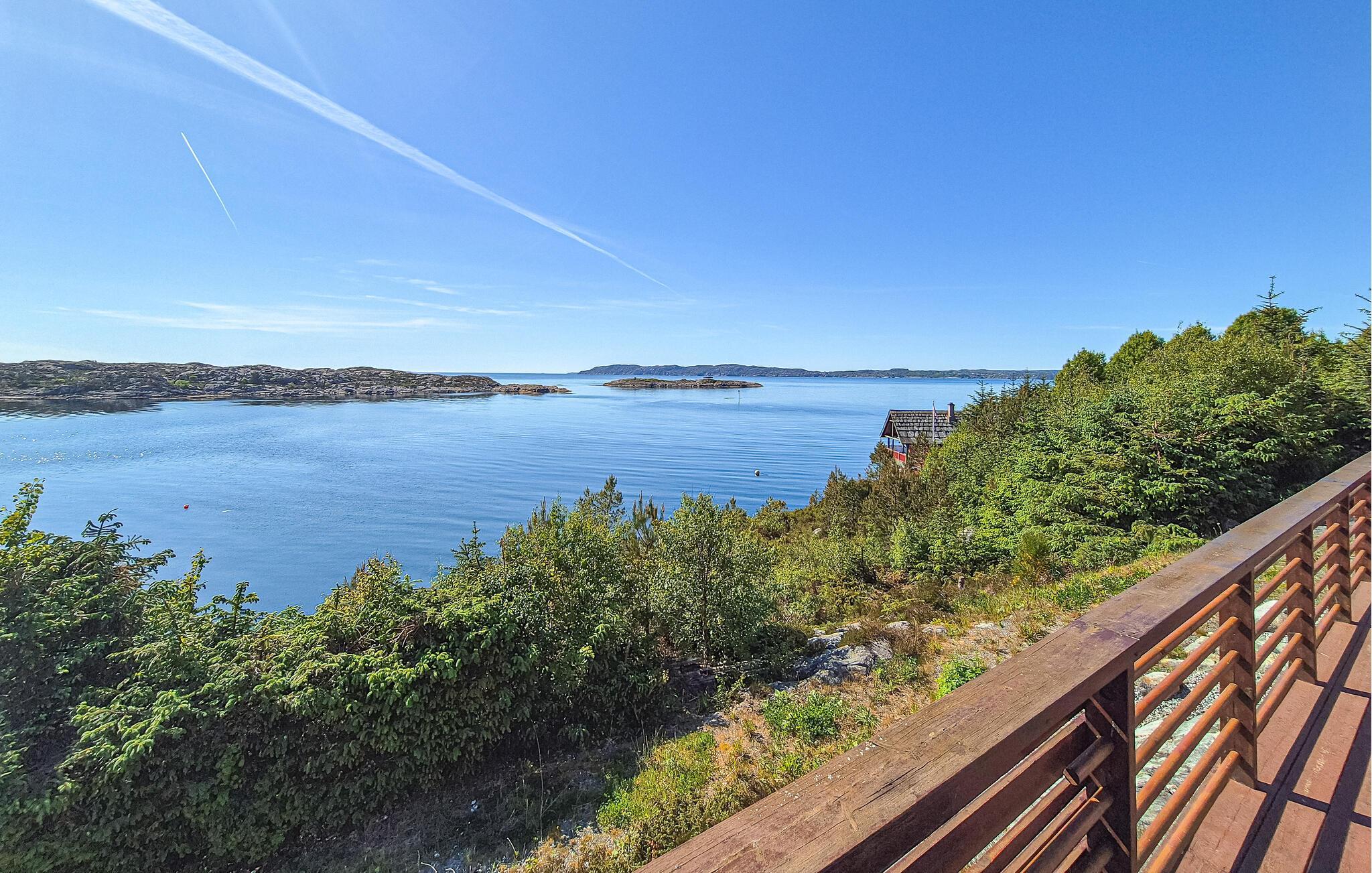 En ferie i dette bortgjemte og idylliske feriehuset er den ideelle muligheten til å slappe av midt i naturen og flykte fra hverdagens stress. Feriehuset imponerer med sin fredelige beliggenhet og fantastiske utsikt over Bømlafjorden. Slå deg ned på den overbygde eller åpne terrassen og start dagen med frokost i det fri, eller avslutt kvelden her i en koselig atmosfære mens du nyter utsikten og den friske sjøluften.