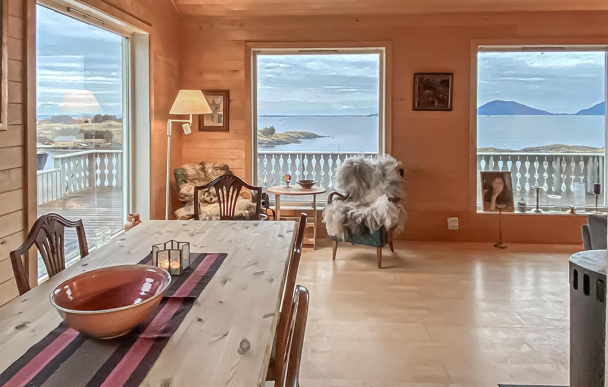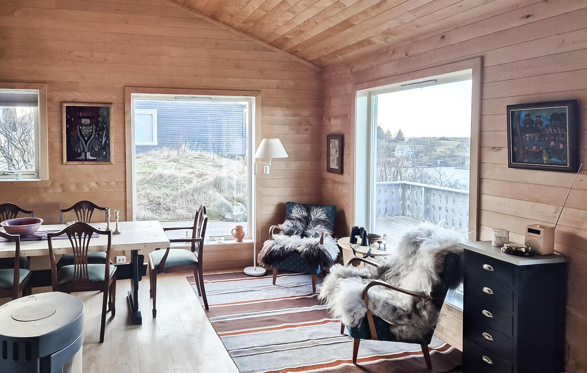 Nyt en spesiell ferie i et feriehus som har en imponerende og eksepsjonell beliggenhet. Inne finner du en koselig atmosfære med mye varme og komfort. Sett deg ved vinduet og la blikket vandre over landskapet og havet mens du legger planer for neste dag. Kjøkkenet er perfekt for å tilberede dagens ferske fangst. Etterpå kan dere samles rundt det romslige spisebordet og tilbringe avslappende timer med å nyte måltidene sammen.
