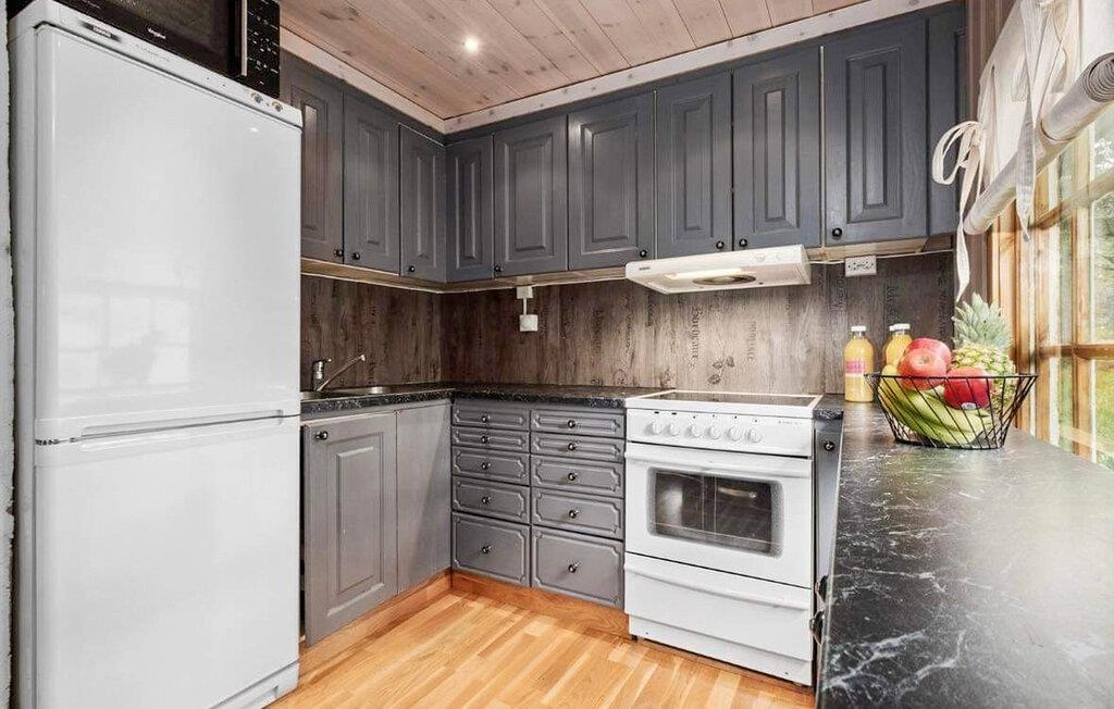 Gå inn og sett deg godt til rette i den koselige sofaen i den romslige stuen. Treveggene og vedovnen skaper en koselig, varm atmosfære, ideelt for å slappe av etter en aktiv dag. Bruk den stilfulle spiseplassen til koselige måltider sammen. Her er det nok plass til hele familien eller en gruppe venner. På det vakre kjøkkenet kan du tilberede favorittrettene dine. Det varme treverket og de tradisjonelle skapene skaper en autentisk hyttestemning som innbyr til å dvele.