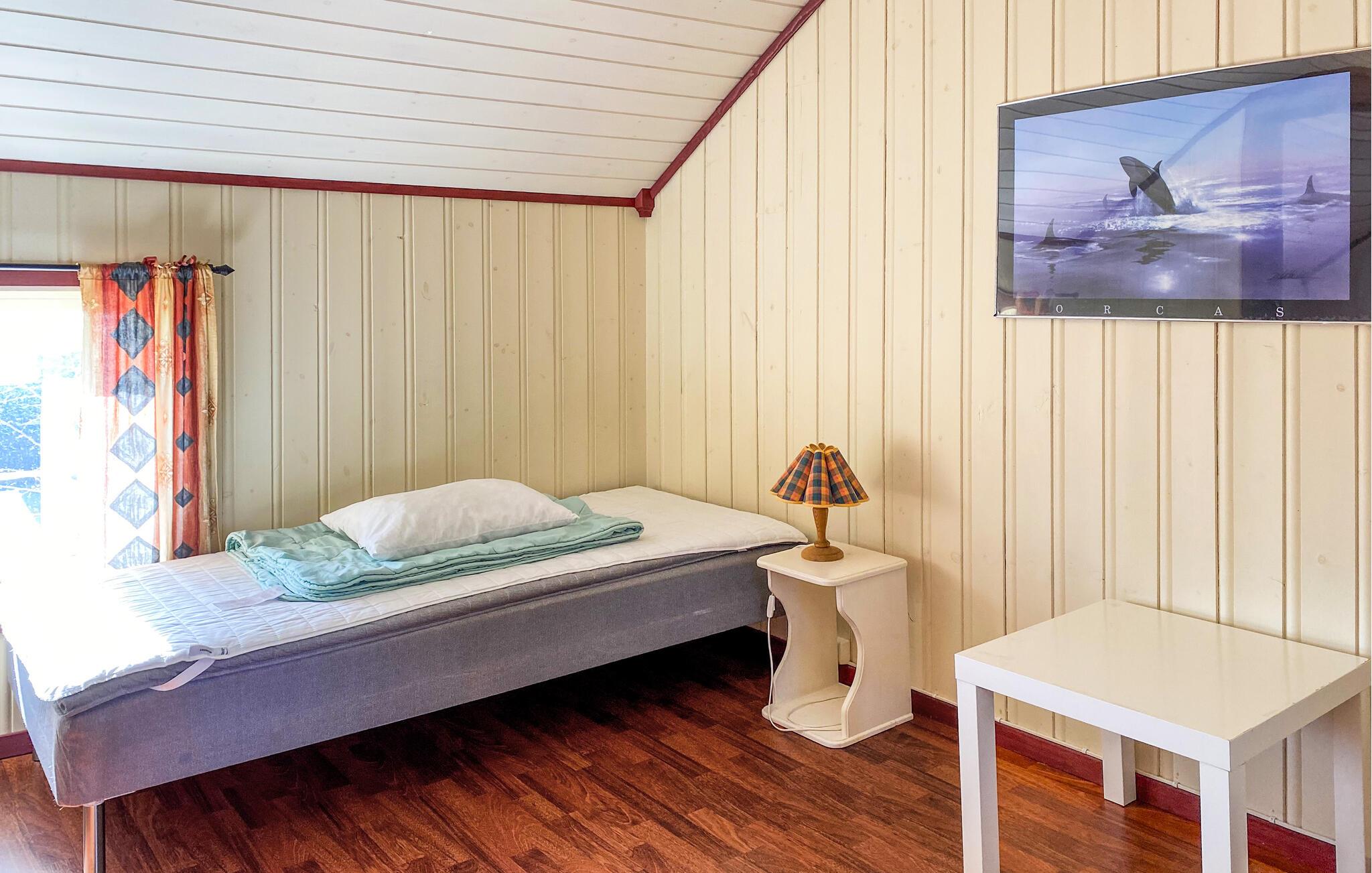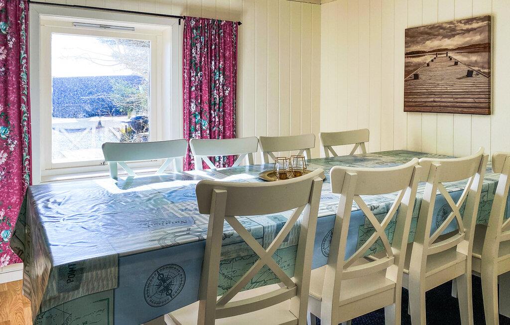 Med en fantastisk beliggenhet ved sjøen, ønsker det innbydende og romslige huset deg velkommen med en flott utsikt fra de lyse rommene og gir deg en koselig ramme for ferien din, der du kan forfriske deg i sjøen når som helst og fiske hele året rundt. Etter en begivenhetsrik dag kan du sette deg godt til rette i den koselige atmosfæren, spise middag sammen med vakker utsikt og tilbringe hyggelige kvelder ved den knitrende peisen.