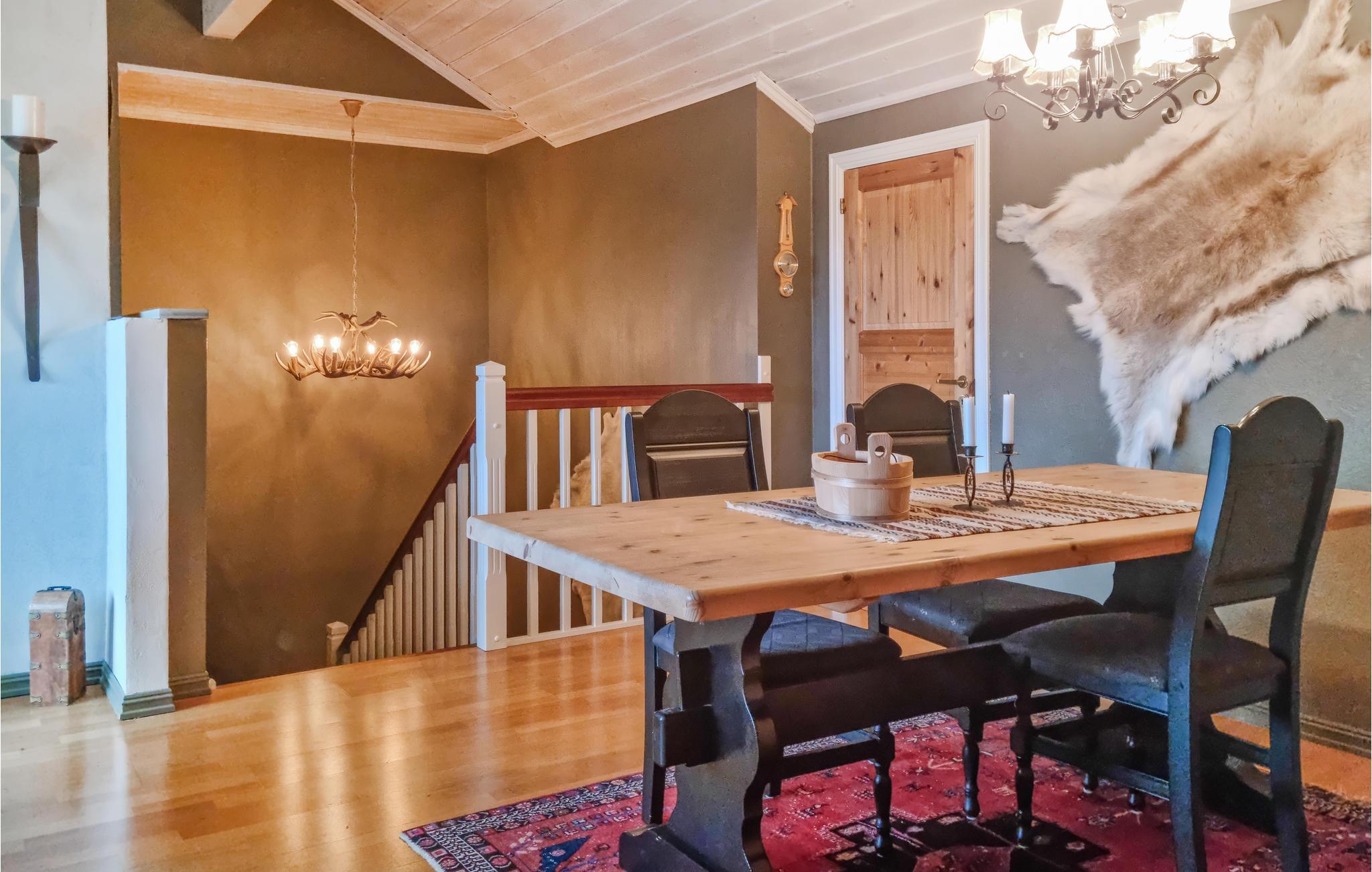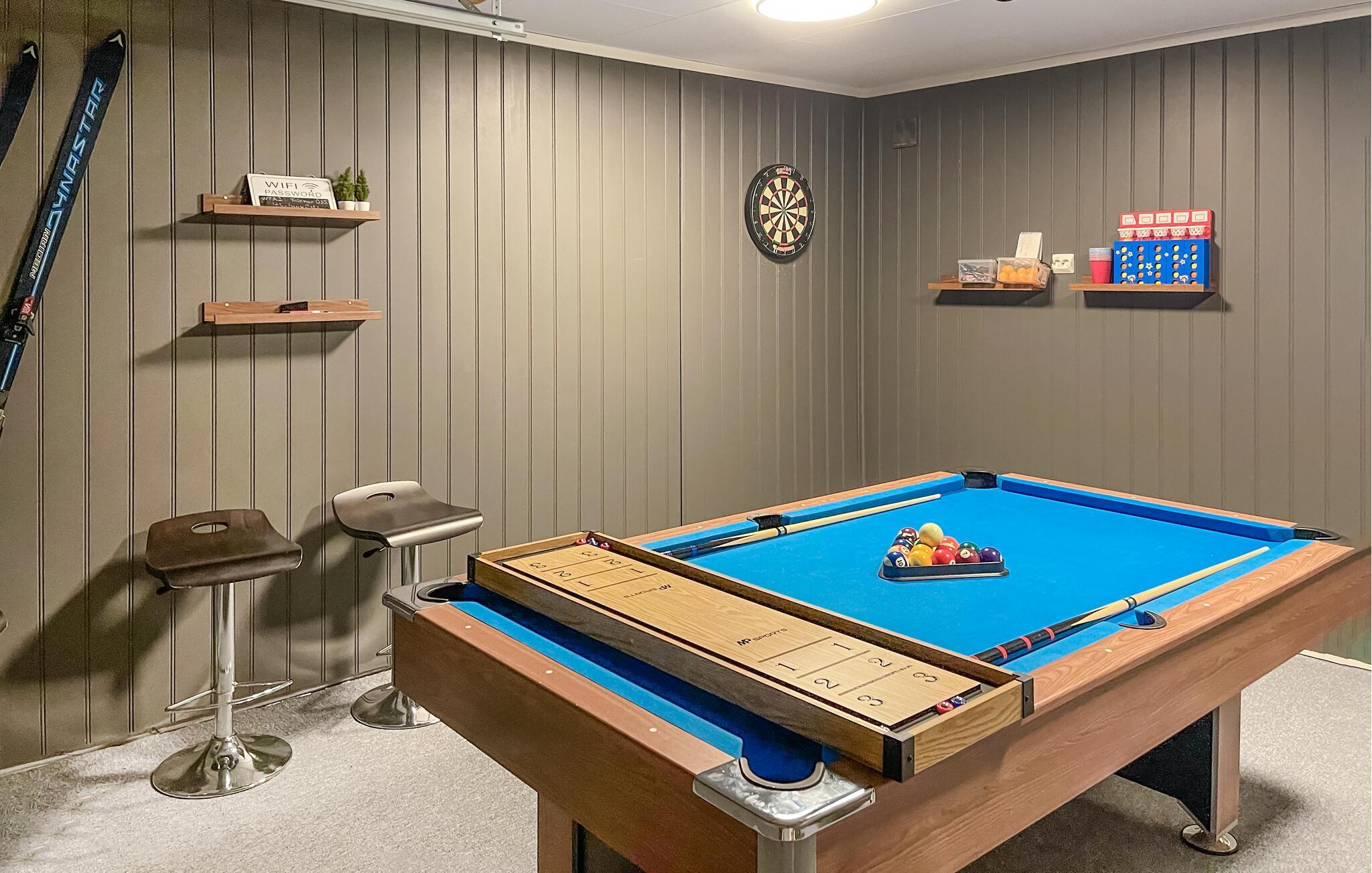 Med romslige rom, aktivitetsrom, flott utsikt over vann og fjell og en vakker beliggenhet i et vannrikt turområde med mange turstier og et rikt dyreliv, innbyr dette feriehuset til en herlig ferie. I den vakkert innredede hytta kan du slappe av på to plan. Overlat matlagingen til amatørkokkene, mens andre hygger seg med brettspill. Samle dere rundt langbordet til en velsmakende frokost, og senere kan dere utfordre hverandre ved biljardbordet. Gå ut på terrassen om morgenen og pust inn den friske luften før dere tar en spasertur til innsjøen.