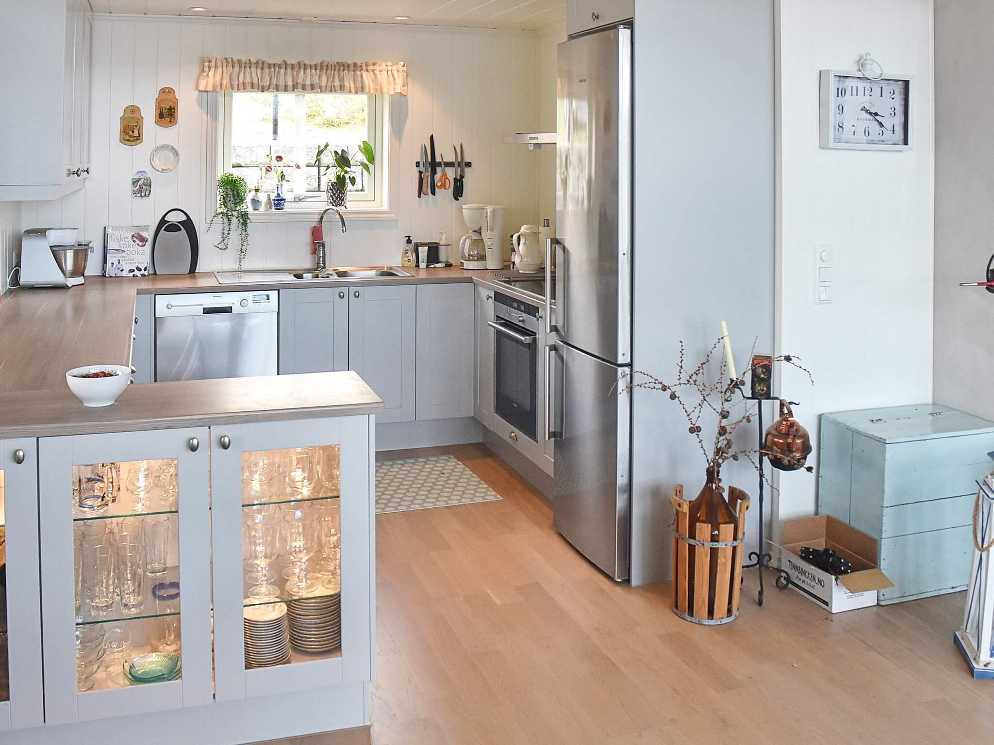 Feriehus med kombinert stue og kjøkken. I stuen er det en peisovn, og utgang til en 84 kvm stor terrasse. På den overdekkede delen av terrassen kan man nyte et godt måltid. Norsk/nordiske og Tyske/internasjonale TV-kanaler via strømming. Internett for strømming. Feriehuset har to bad. Det er 150 cm brede dobbeltsenger på alle rom, to av soverommene har en overkøye. Sengetøy og håndklær kan leies.