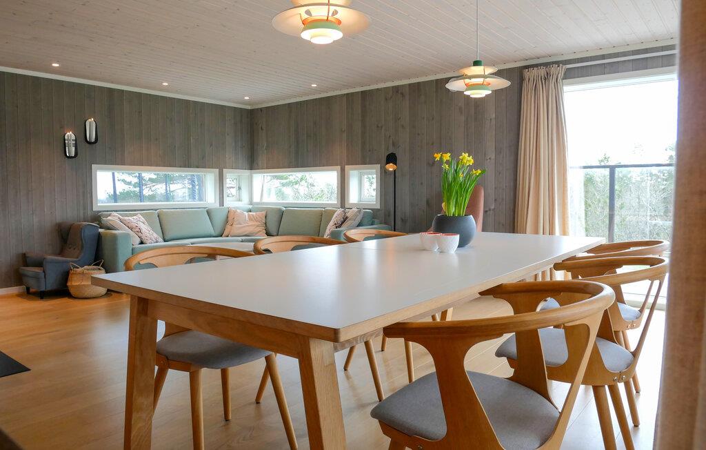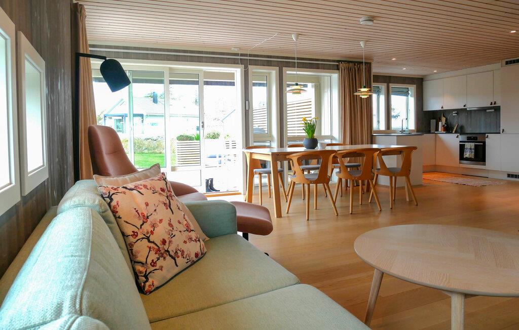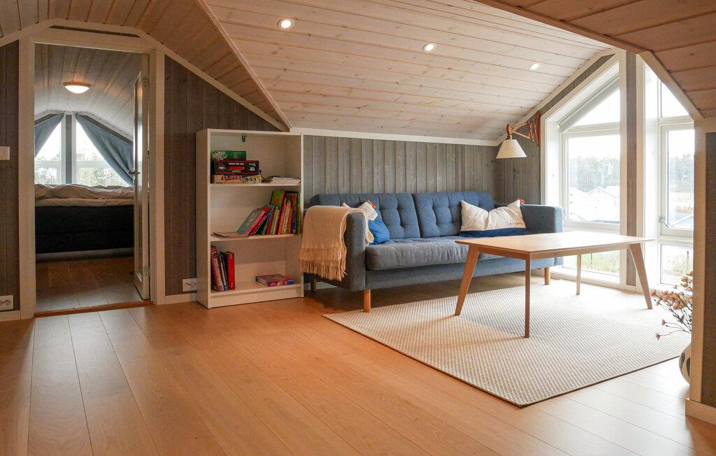 Dette stilfullt innredede feriehuset med moderne interiør og naturmaterialer ønsker deg velkommen bare noen få skritt fra sjøen. Tenn opp i vedovnen, slå deg ned i sofaen og nyt utsikten over hagen. En trapp fører opp til det sjarmerende lesehjørnet. Slå deg ned i sofaen med en god bok i hånden og se ut i det fjerne gjennom vinduet.