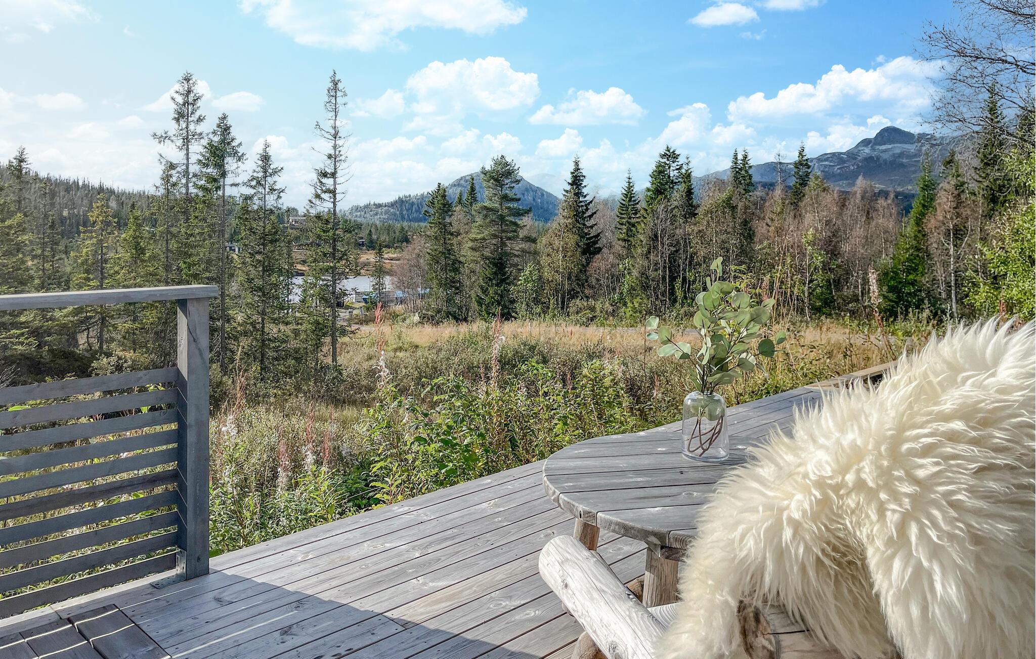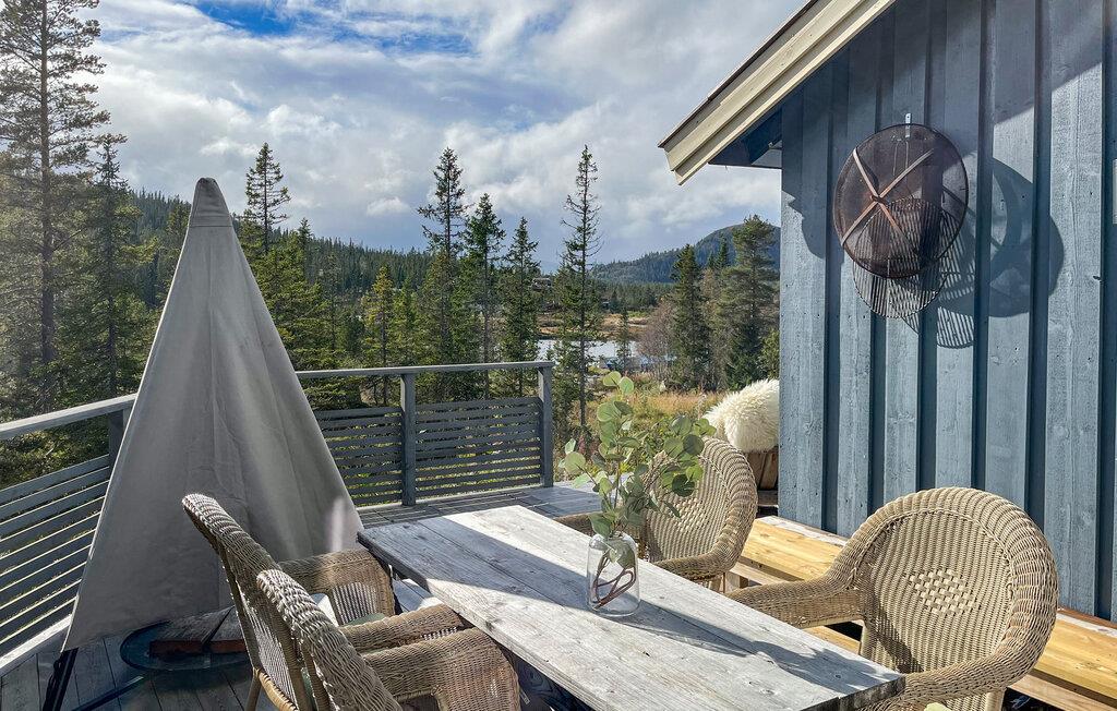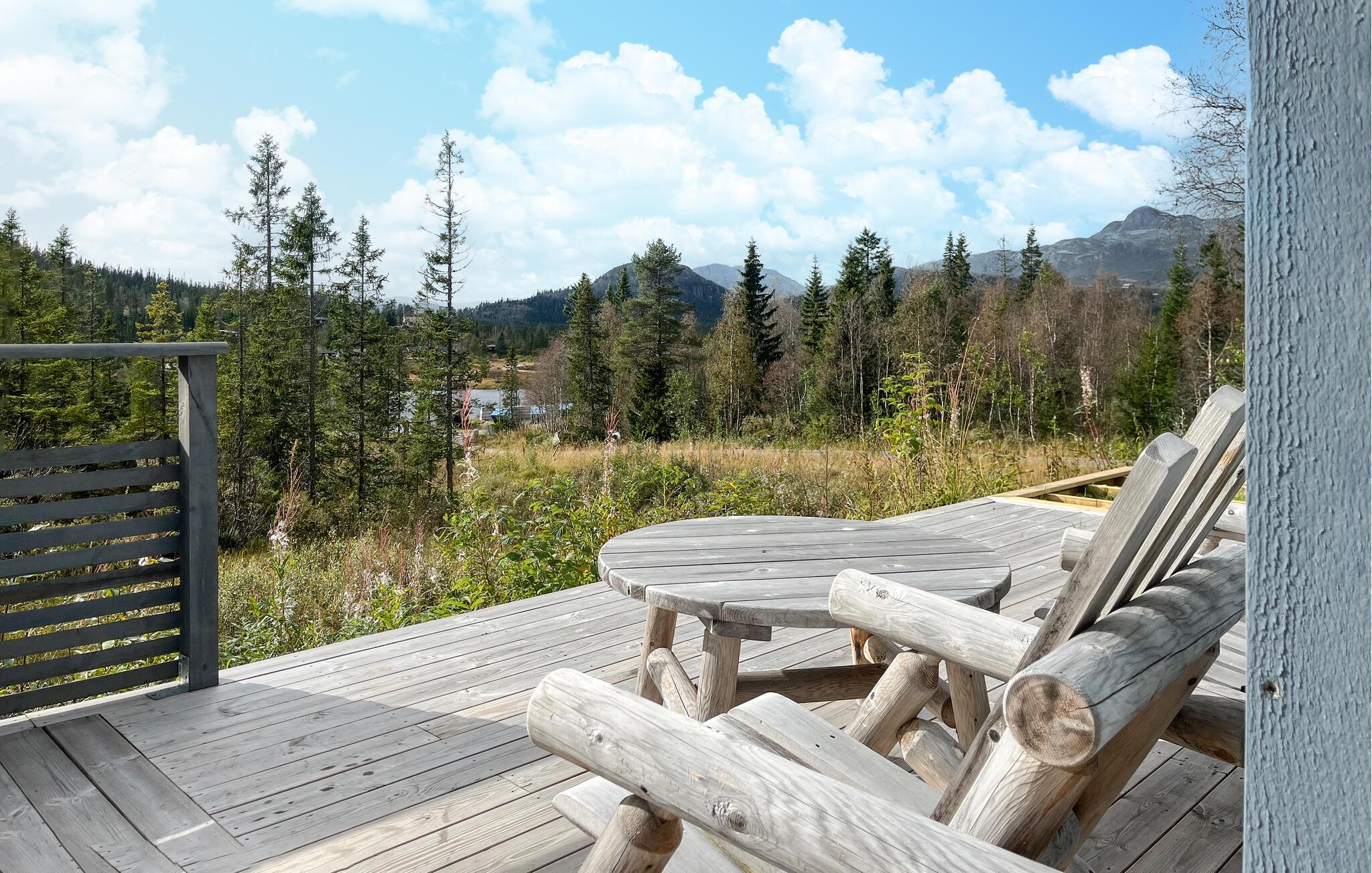 Fra terrassen kan du nyte utsikten over det omkringliggende fjellandskapet og nyte roen på denne unike beliggenheten på solsiden av Gaustatoppen.
