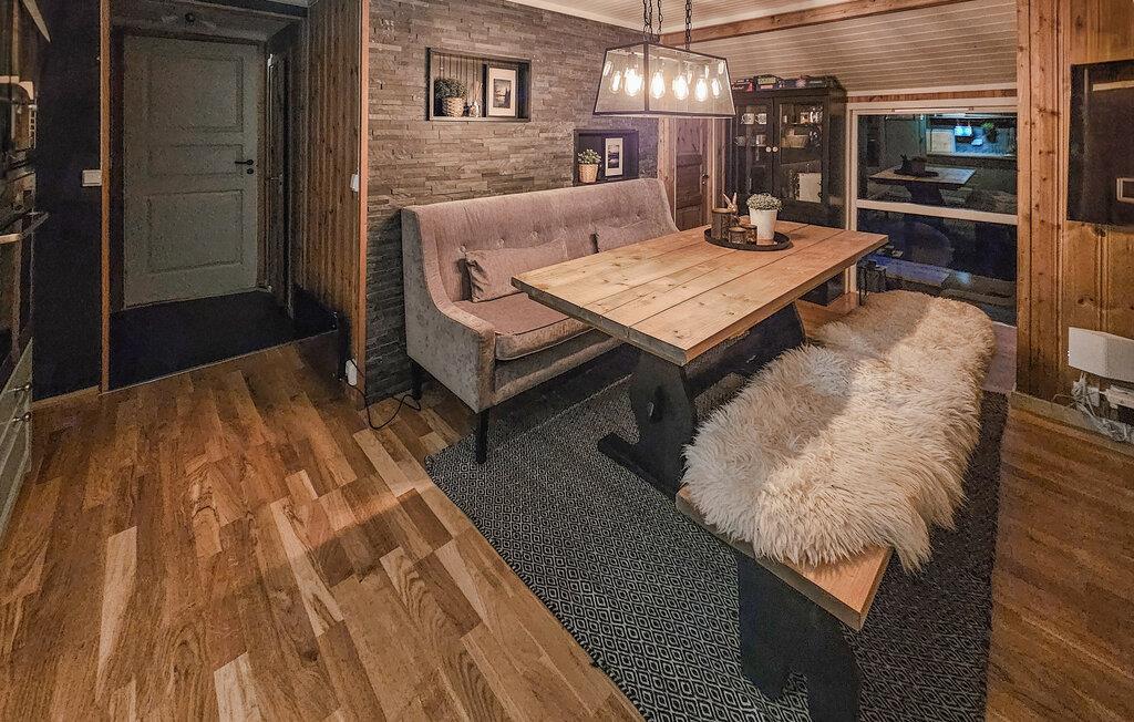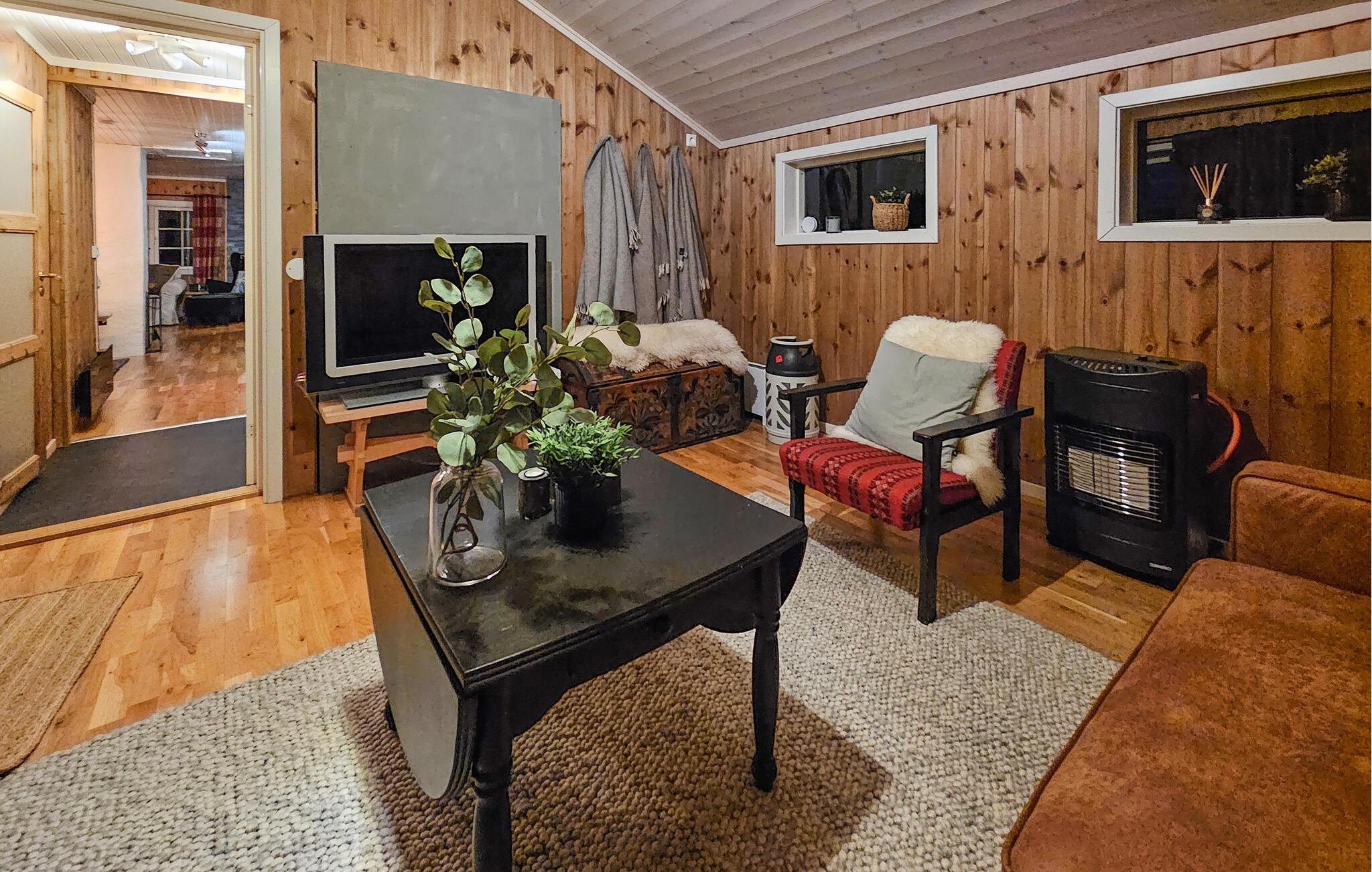 Slapp av i dette koselige feriehuset i Tuddal, ideelt for en ferie nær naturen. Den varme, rustikke møbleringen skaper en koselig atmosfære som er ideell for avslappende dager. De store vinduene bringer den pittoreske naturen rett inn i stuen og fyller rommet med lys. Med tremøbler og vakre detaljer gir huset deg en autentisk norsk hytteopplevelse.