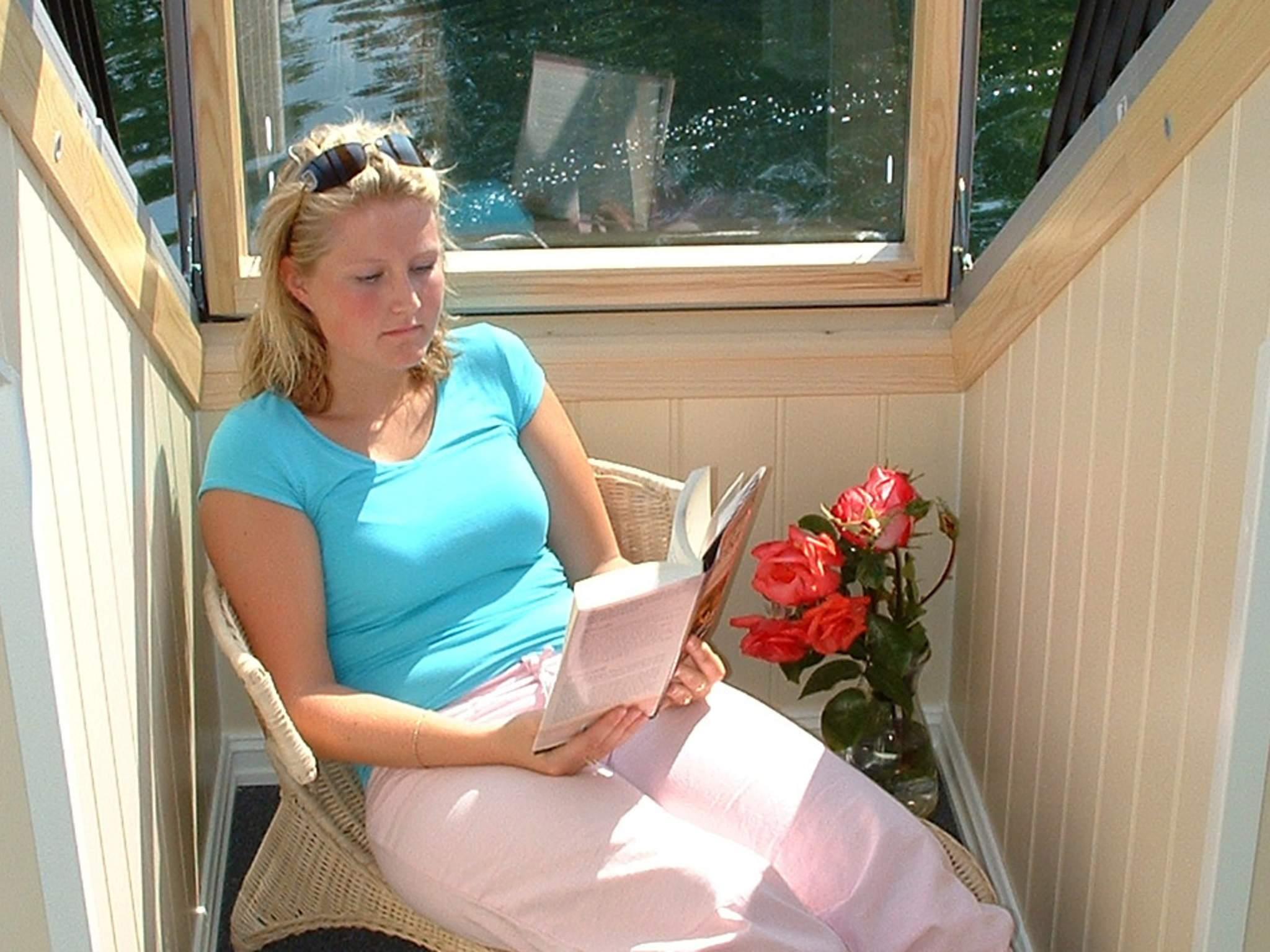 Hytten har 50 kvm åpen og overdekket uteplass fordelt på tre verandaer i hvert hjørne, knyttet sammen med overbygde gangveier rundt hytten. På den ene siden er det laget til flytebrygge for enklere adgang med båt. Hytten er miljøvennlig og gjør ingen inngrep i naturen. Alle innvendige dører har ”ko-øyer”. Også badet har egen utgang til uteplass. Kjøkkenet er funksjonelt og komfyren gassdrevet med stekeovn. Varmepumpe som kan brukes som air condition om sommeren. Stuen er stilfullt innredet og har store glassflater, gasspeisen varmer godt på kalde dager. TV med 20 norsk og engelsktalende kanaler, internett 100 Mbits for streaming. Det ene av soverommene er utstyrt med verandavindu. Tilgang til vaskemaskin på land.
