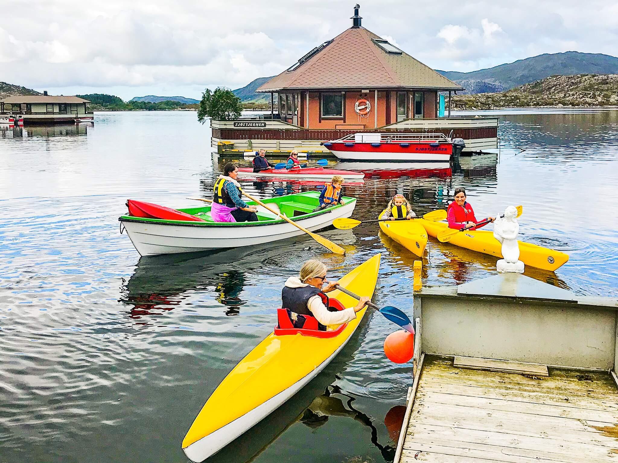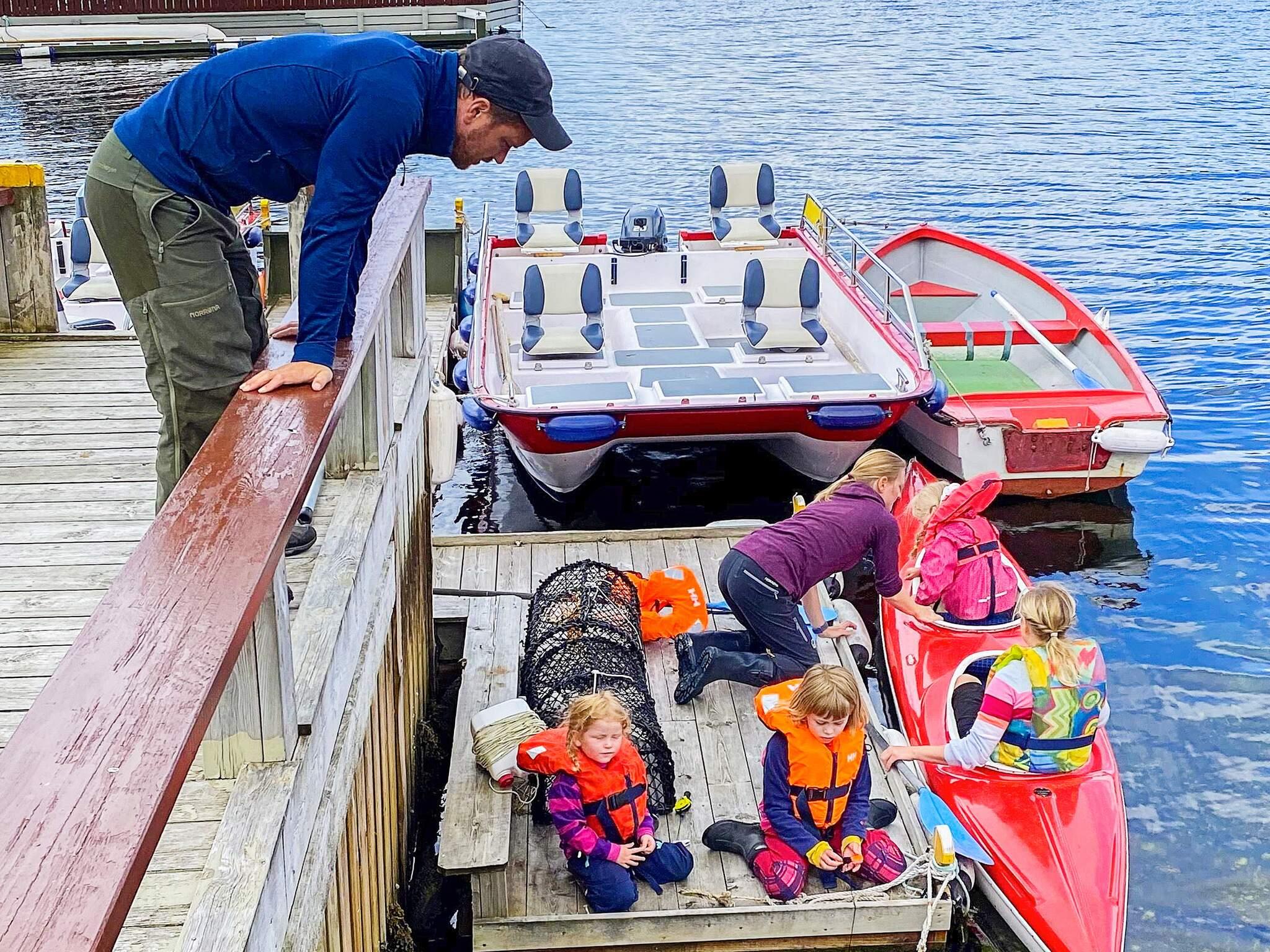 Bademuligheter fra hytten via badeleider, eller langgrunt på land 50 m unna. Krabbeteiner, 2 sykler, 2 enkle kajakker og en dobbel kajakk er inklusiv. Det er to båter inkludert i leien: En 15 fots robåt til å komme seg til og fra hytten, og en 17 fots katamaran med 2 stk 25 hk Suzuki påhengsmotorer med elstart, GPS, ekkolodd og kartplotter, en meget stødig båt for 8 personer. Godt sjøfiske hele året i lukkede eller åpne farvann. Egen fileteringsplass for fisk.