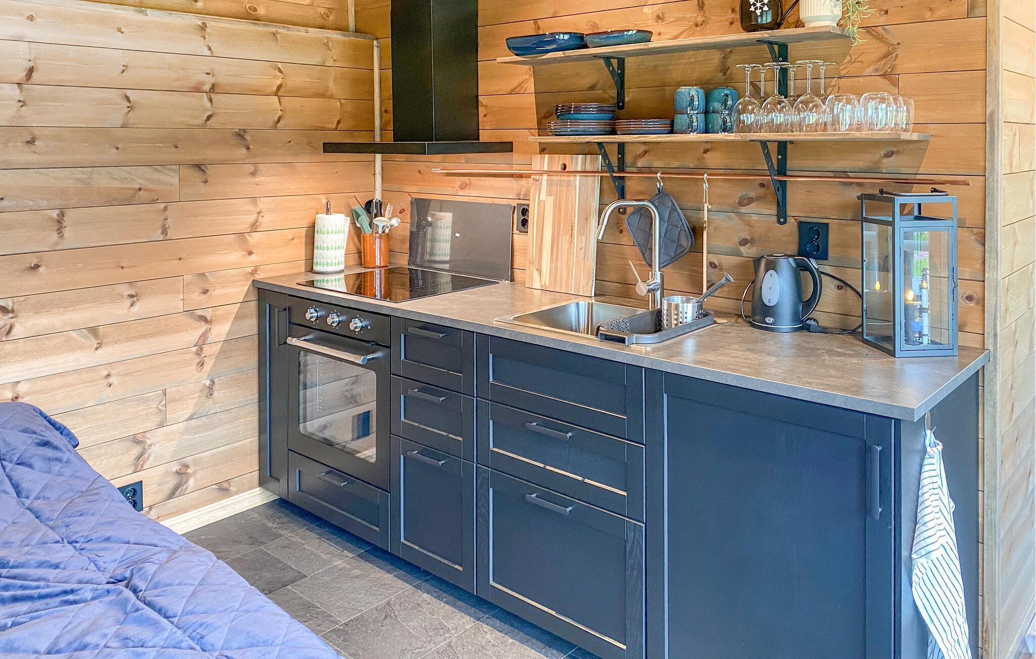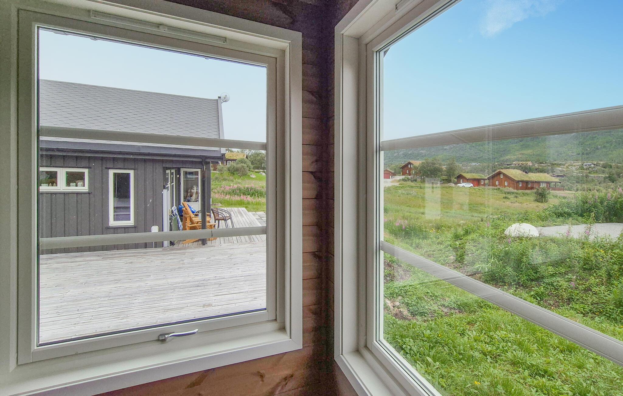 Det innbydende huset ønsker deg velkommen midt i et vakkert landskap og er det ideelle stedet for en ferie med aktiviteter i naturen, og fiskemuligheter finnes på fjorden i nærheten av huset. Våkn opp til utsikt over de pittoreske omgivelsene, og føl deg som hjemme i de koselig møblerte rommene.