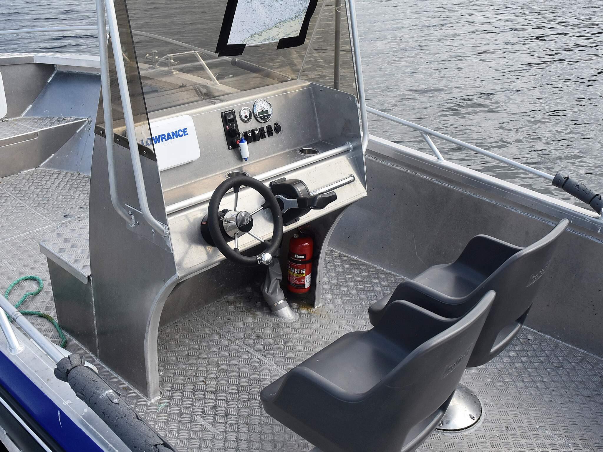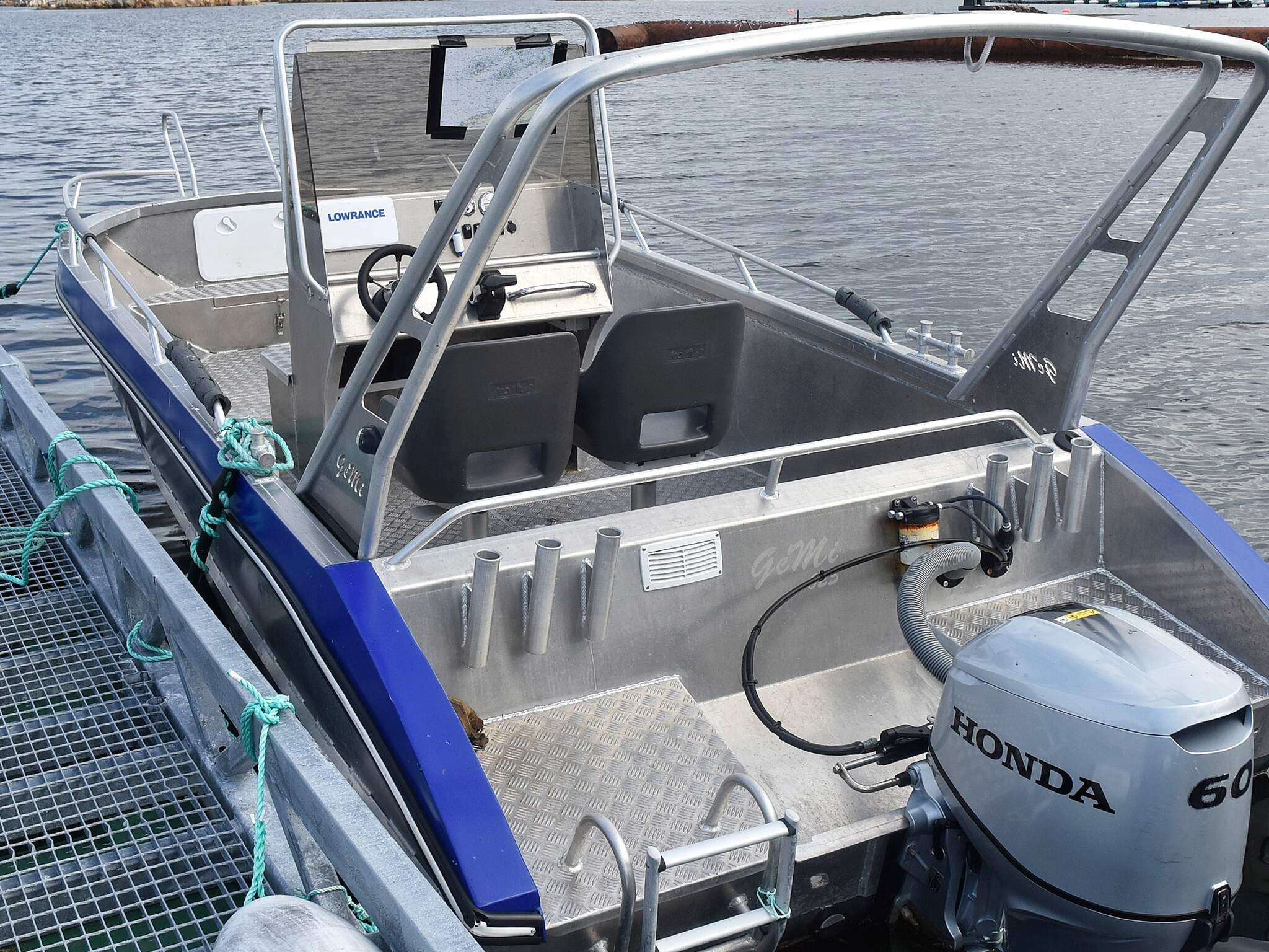Båt til leie på forespørsel:1 x 21 fots Gemi med 150 HK Honda, GPS/Kartplotter/Ekkolodd, 10 stangholdere.