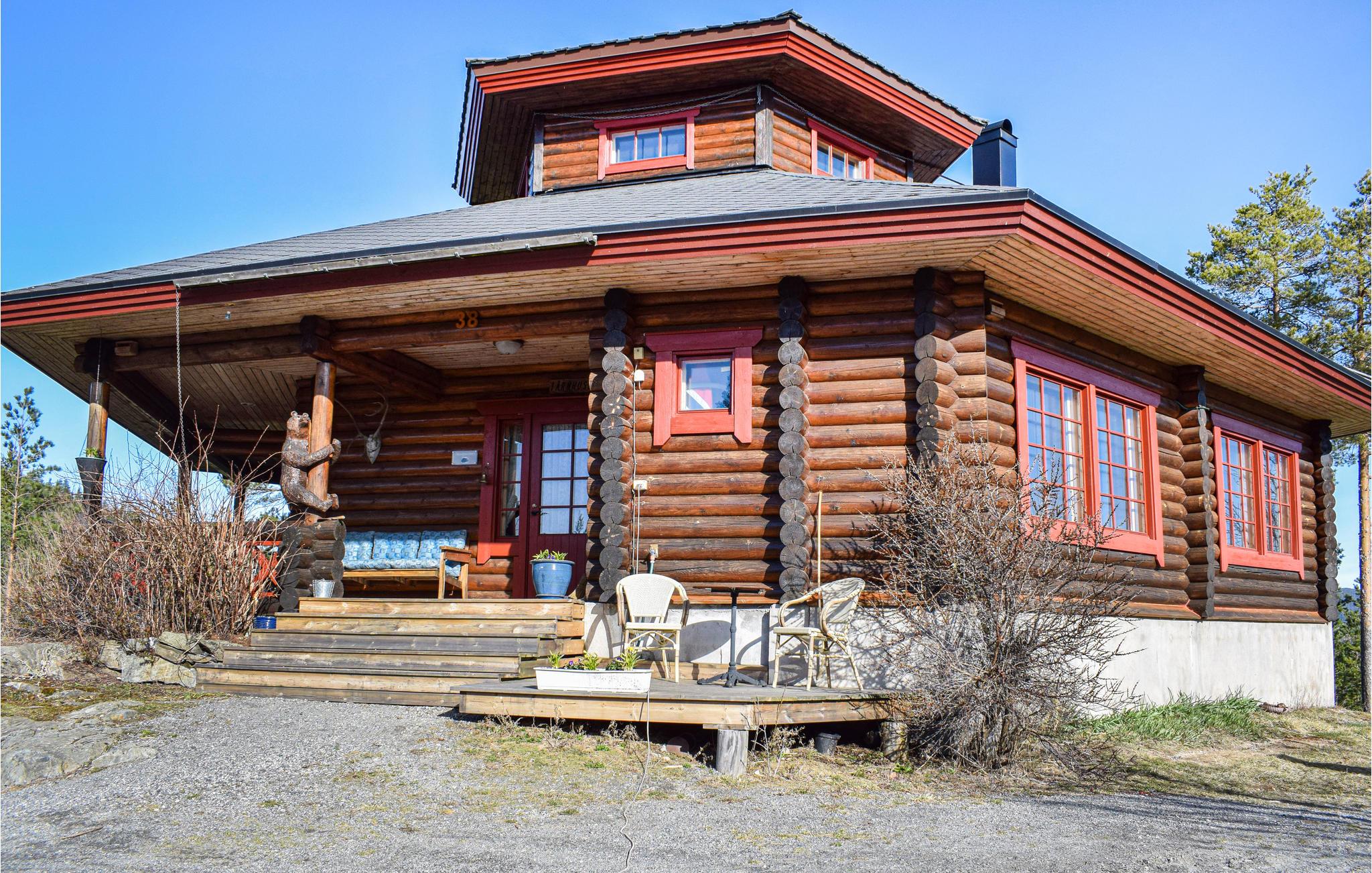 Velkommen til denne vakre tømmerhytta med eget bassengrom og badstue.
