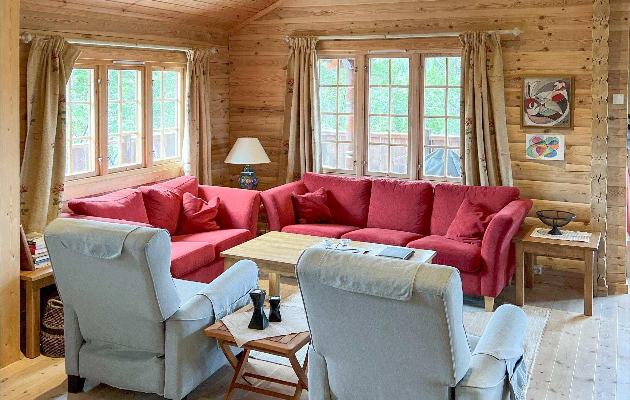 Slapp av i denne koselige hytta med fantastisk utsikt over fjellene og skogene.