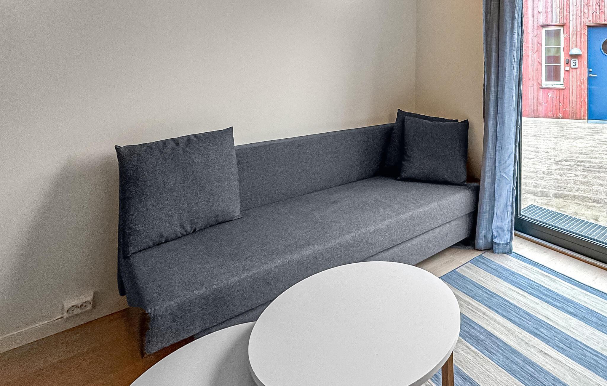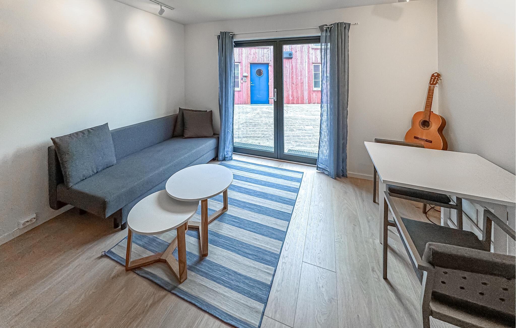Fra den åpne terrassen har du en vakker utsikt over hovedkaien, og du kan følge med på båtenes liv og røre i sundet. Utforsk det store fellesområdet og slå deg ned rundt grillen.