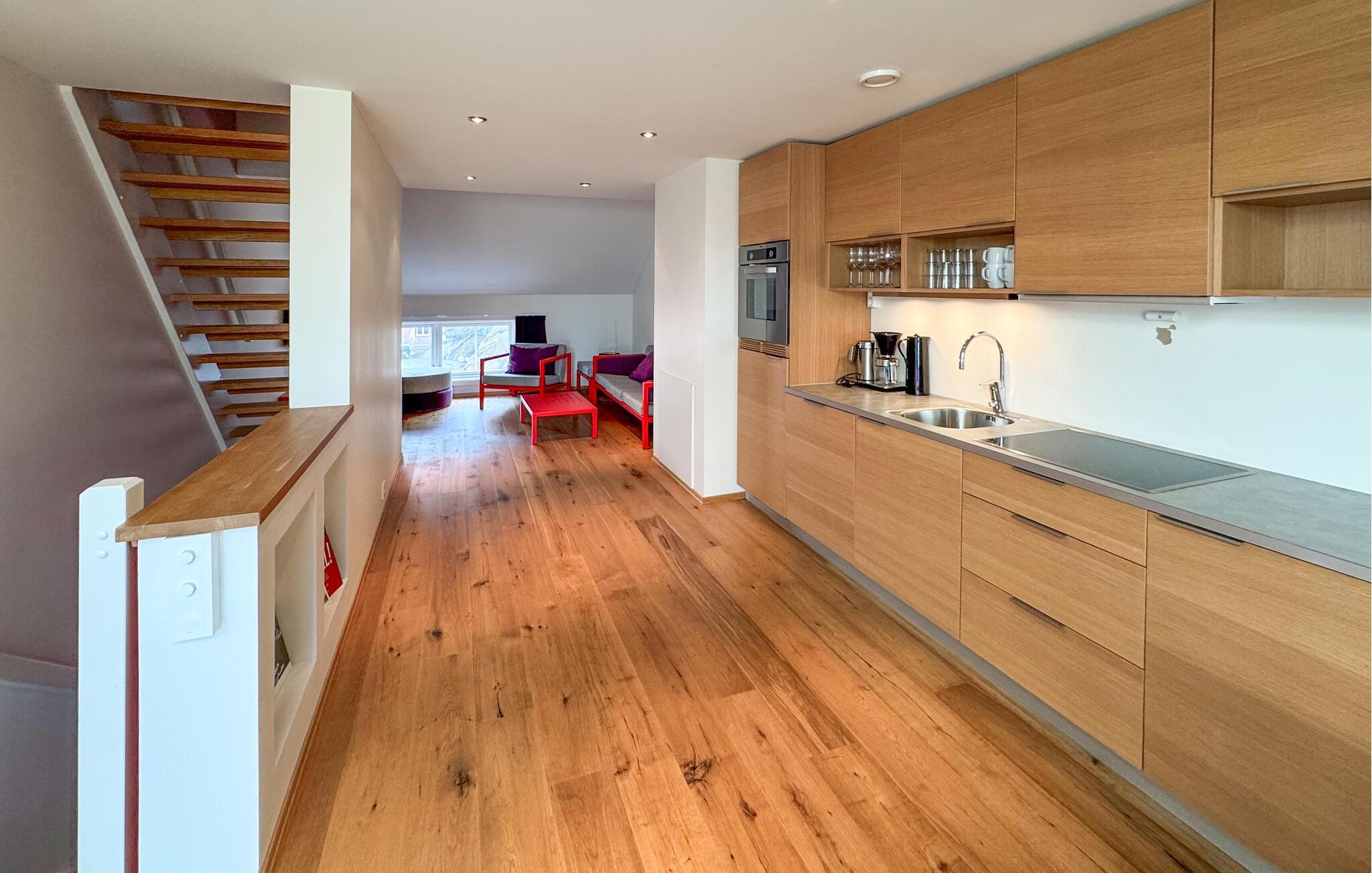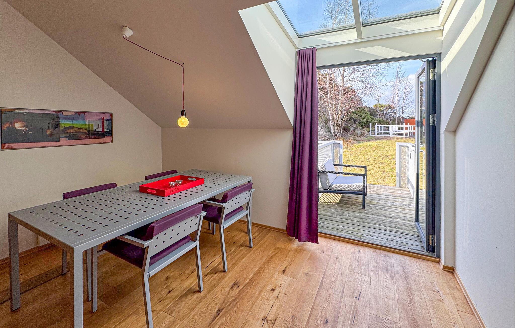 Denne lyse og luftige loftsleiligheten gir deg muligheten til å komme deg bort fra alt sammen med dine nærmeste på den lune øya Ny-Hellesund. Naturmaterialer og harmonisk design skaper en koselig atmosfære i det innbydende interiøret. Gled dere til å lage mat sammen på det åpne kjøkkenet og til å sosialisere ved det stilfulle spisebordet. Slapp av i sofaen, fordyp deg i en kveld med spill eller ta deg tid til en god samtale over et glass vin.