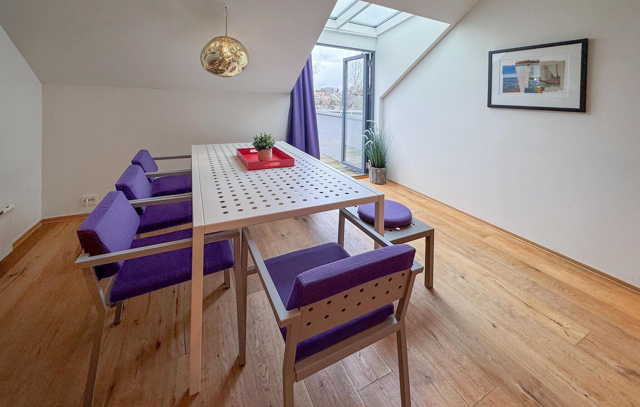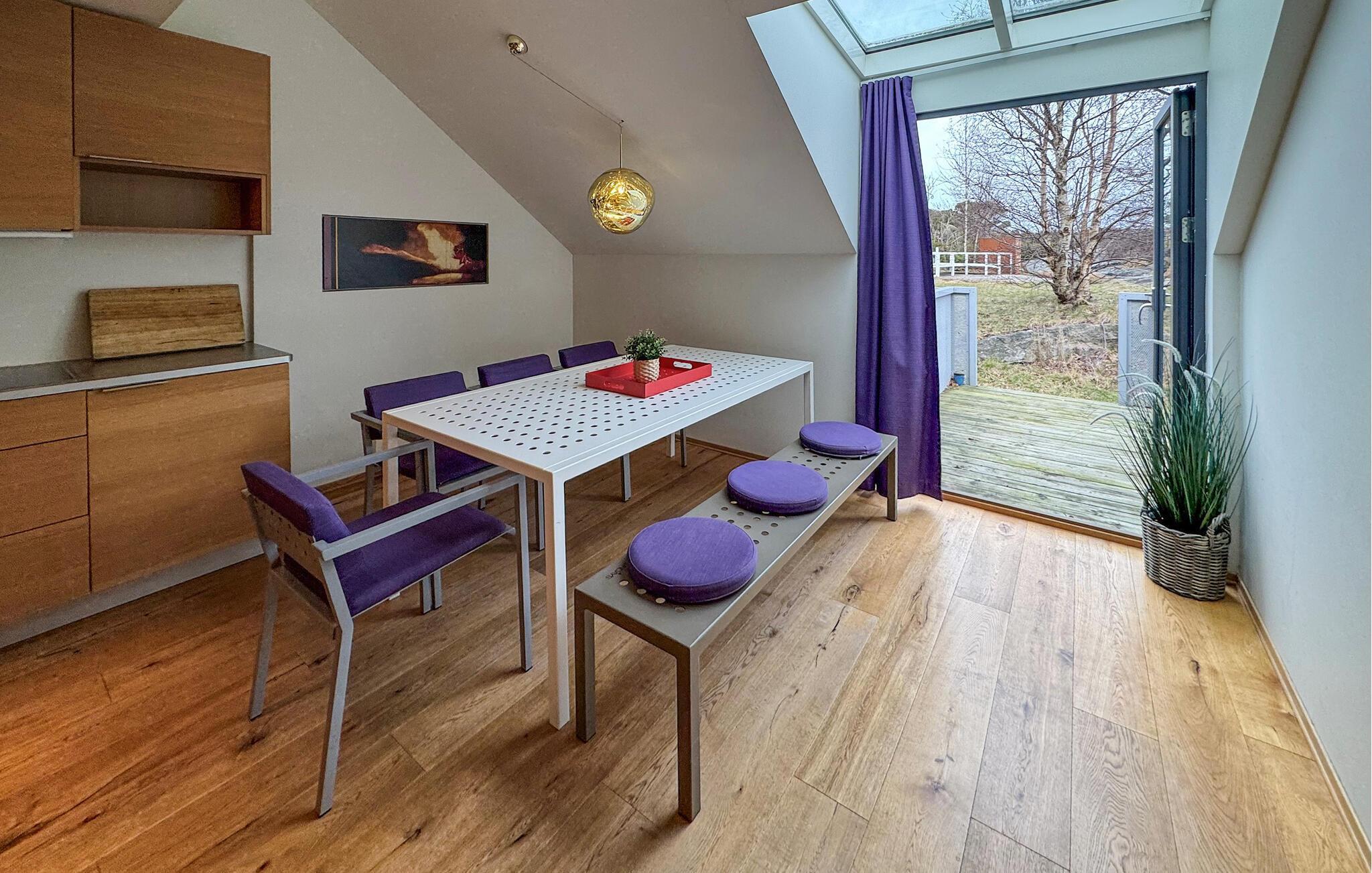 Denne lyse og luftige leiligheten gir deg muligheten til å komme deg bort fra alt sammen med dine nærmeste på den lune øya Ny-Hellesund. Tiltalende farger og harmonisk design skaper en hyggelig atmosfære i det innbydende interiøret. Gled dere til å lage mat sammen i den åpne kjøkkenløsningen og til å sosialisere over måltidene i en vakker atmosfære. Slapp av i sofaen, nyt en kveld med spill eller ta deg tid til en god samtale over et glass vin.