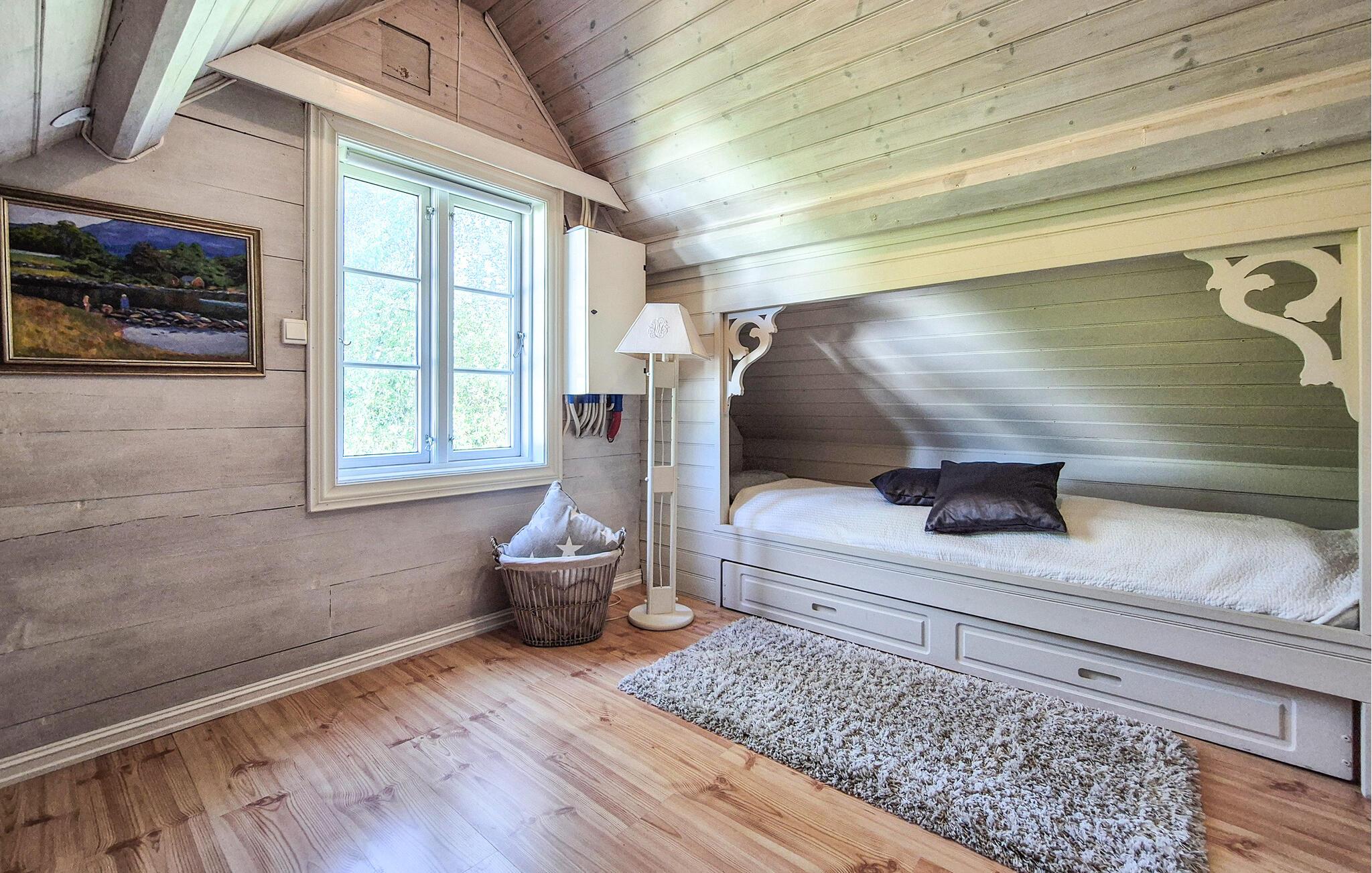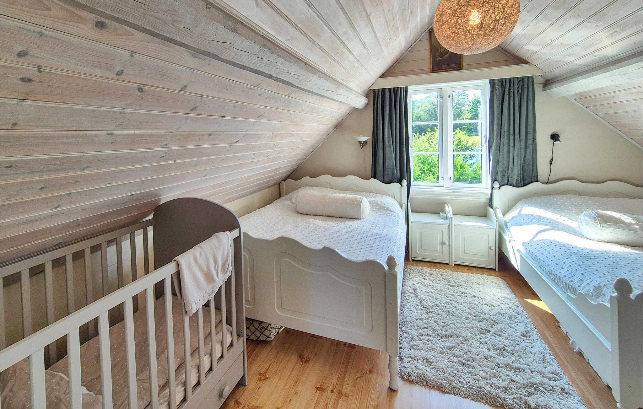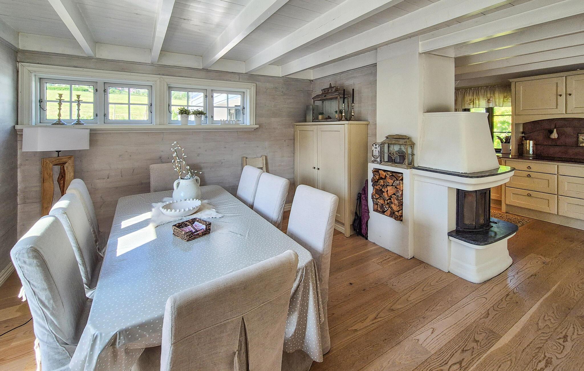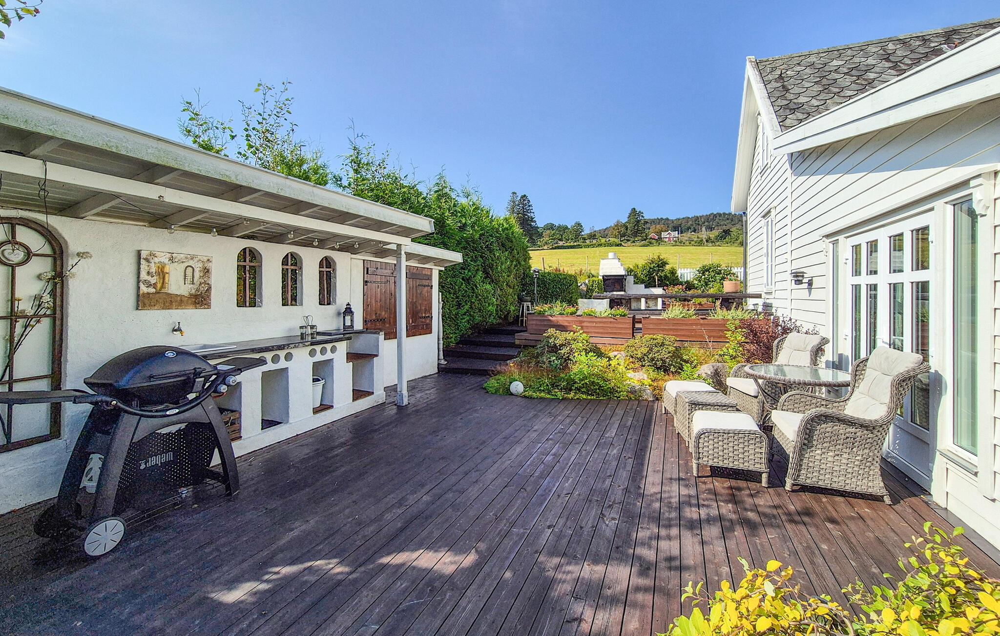 Dette barnevennlige huset tilbyr også god plass til større familier i sitt koselige og komfortable interiør. Smakfulle møbler og duse farger skaper en hyggelig atmosfære som du kan nyte under hyggelige matlagingskvelder, hyggelige måltider og avslappede lesestunder. Tenn opp i den norske vedovnen og samle dere til en god film eller en harmonisk spillkveld i den romslige sofagruppen.