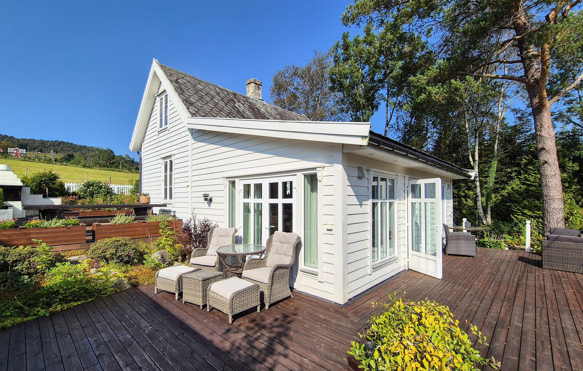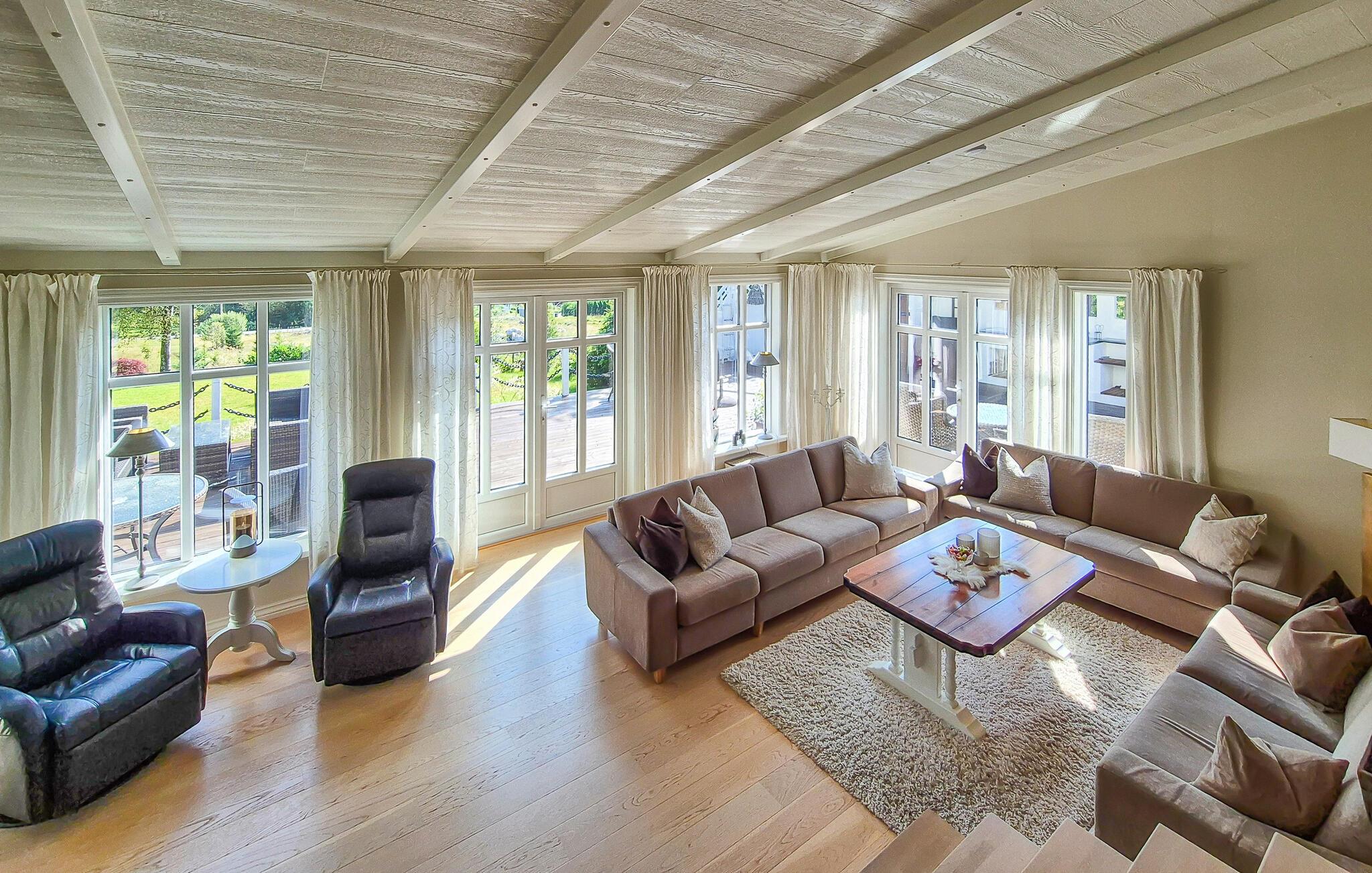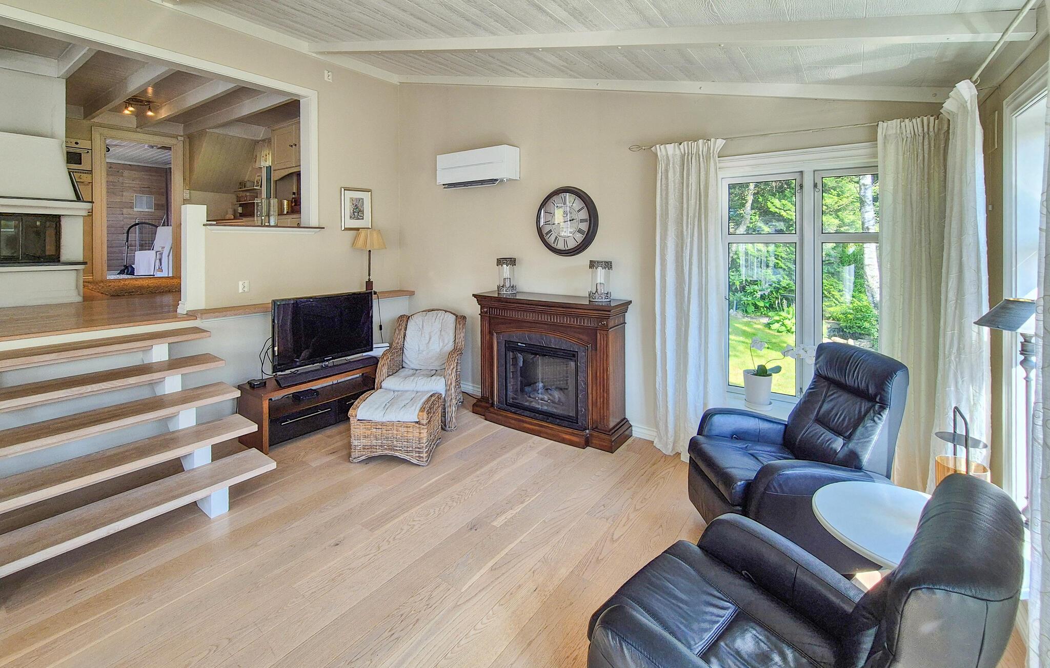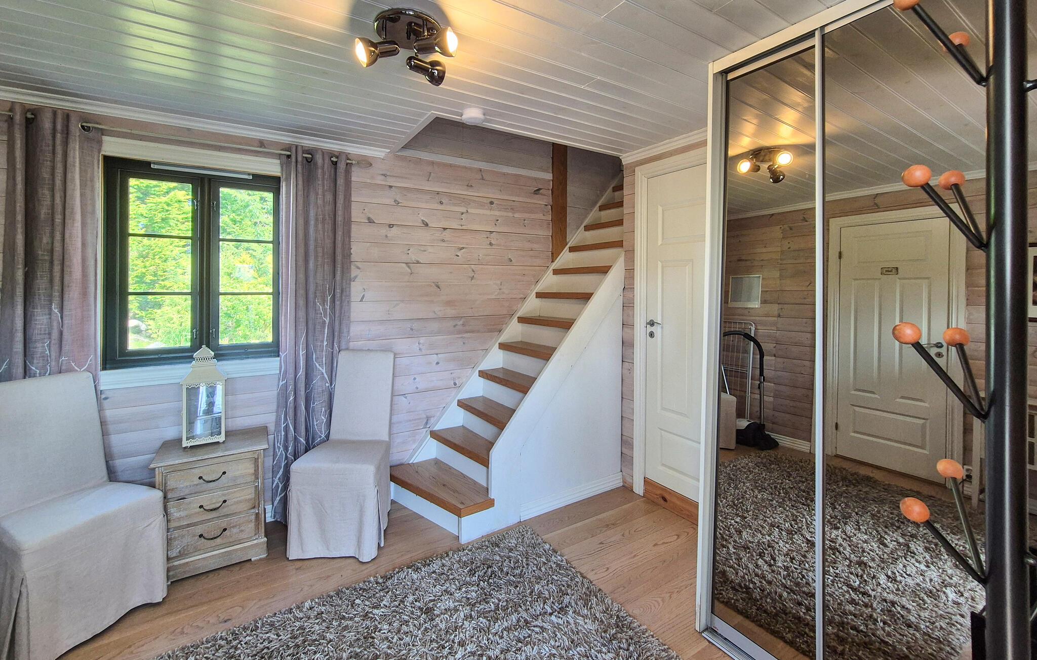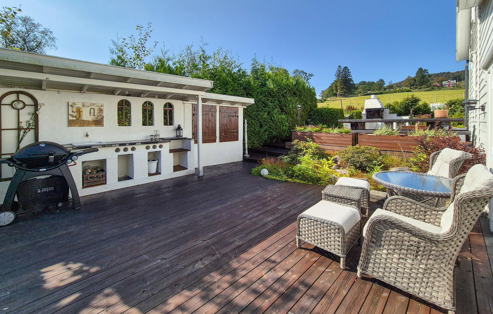 Dette barnevennlige huset tilbyr også god plass til større familier i sitt koselige og komfortable interiør. Smakfulle møbler og duse farger skaper en hyggelig atmosfære som du kan nyte under hyggelige matlagingskvelder, hyggelige måltider og avslappede lesestunder. Tenn opp i den norske vedovnen og samle dere til en god film eller en harmonisk spillkveld i den romslige sofagruppen.