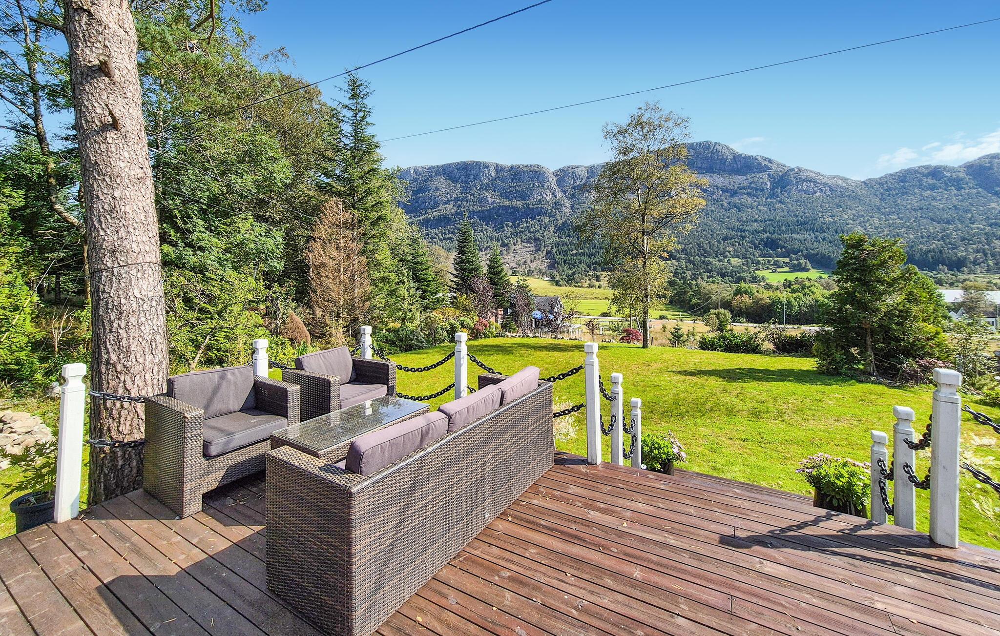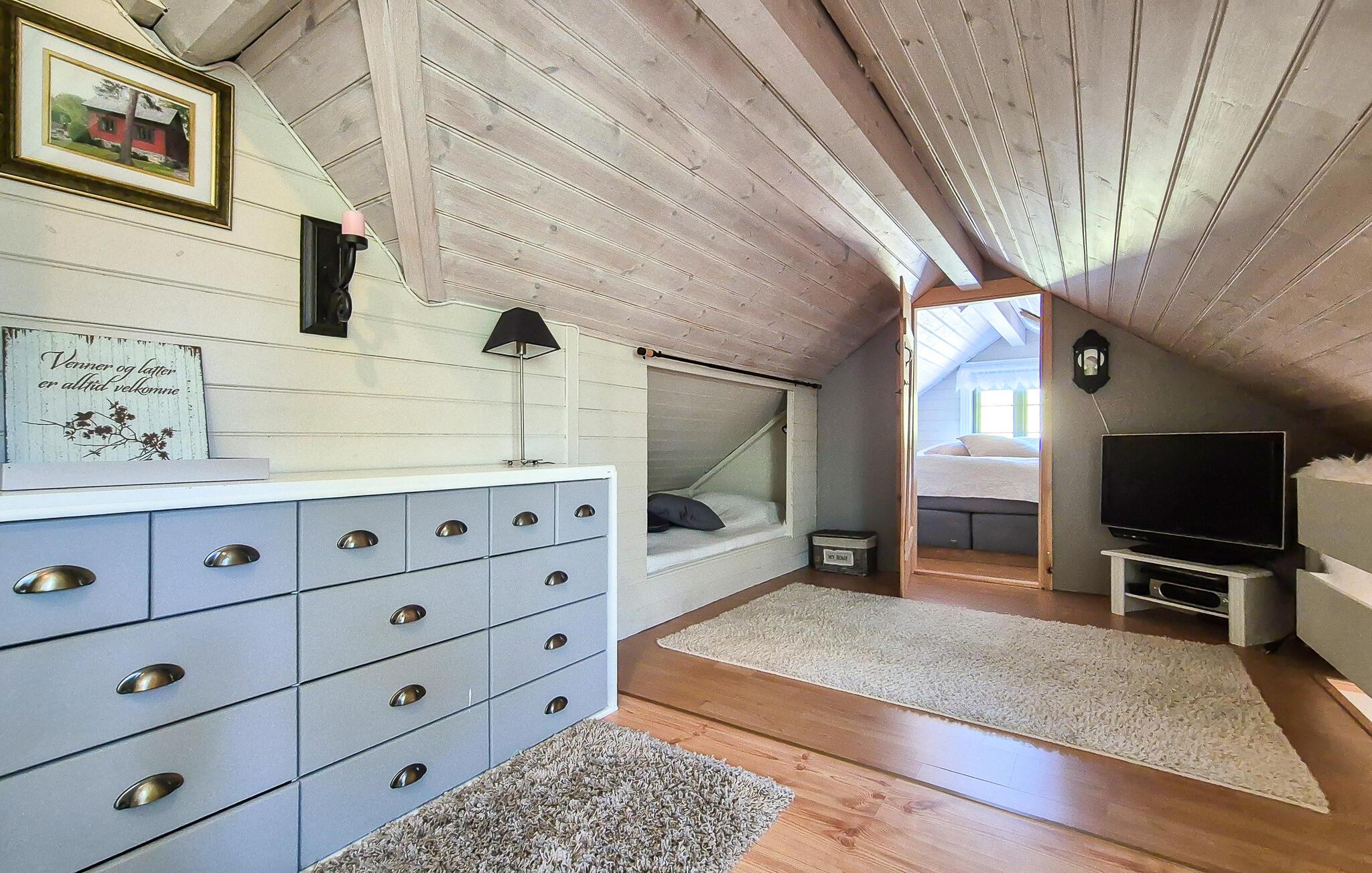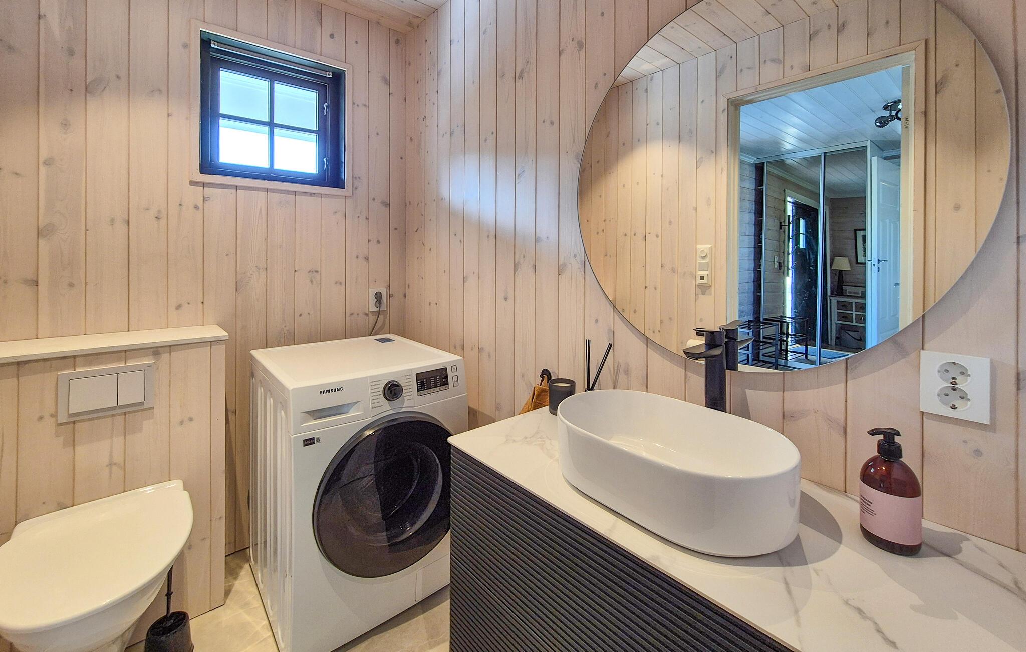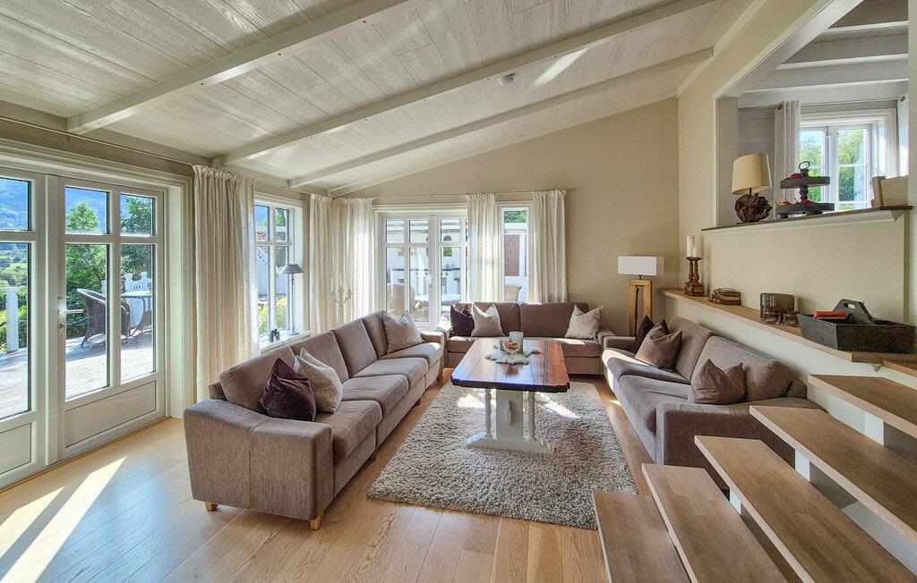 Dette barnevennlige huset tilbyr også god plass til større familier i sitt koselige og komfortable interiør. Smakfulle møbler og duse farger skaper en hyggelig atmosfære som du kan nyte under hyggelige matlagingskvelder, hyggelige måltider og avslappede lesestunder. Tenn opp i den norske vedovnen og samle dere til en god film eller en harmonisk spillkveld i den romslige sofagruppen.