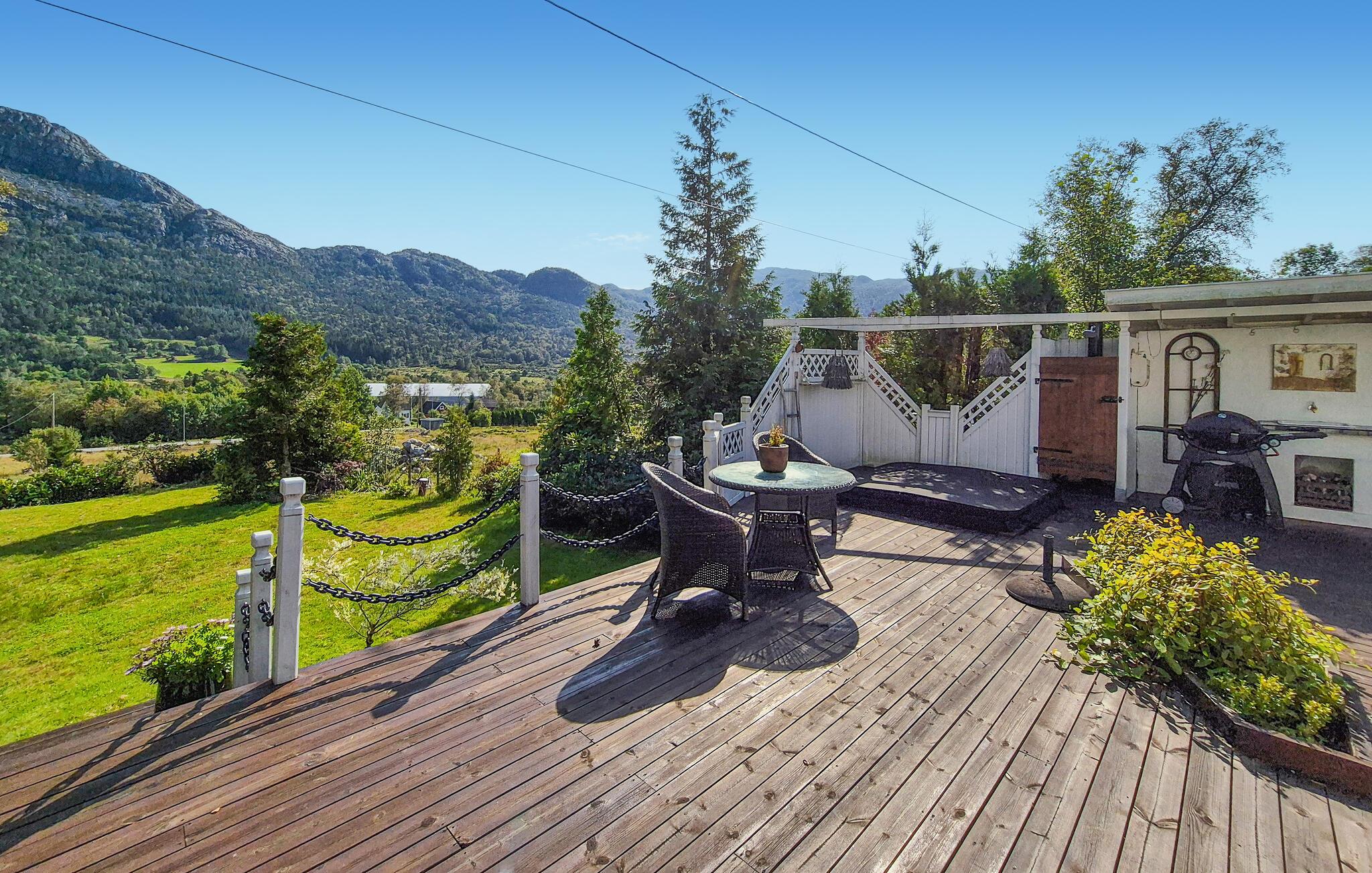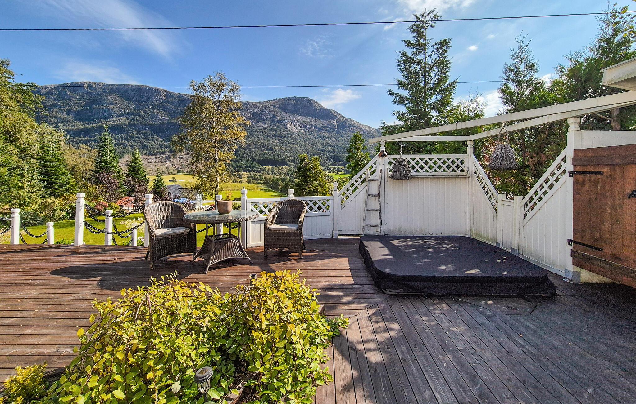 Uteområdet lokker med en sjarmerende terrasse hvor du kan nyte solen mens du spiser frokost og slapper av. Unn deg koselige stunder i boblebadet, la deg fortrylle av panoramautsikten over fjellene og feir tiden sammen med stemningsfulle grillkvelder.