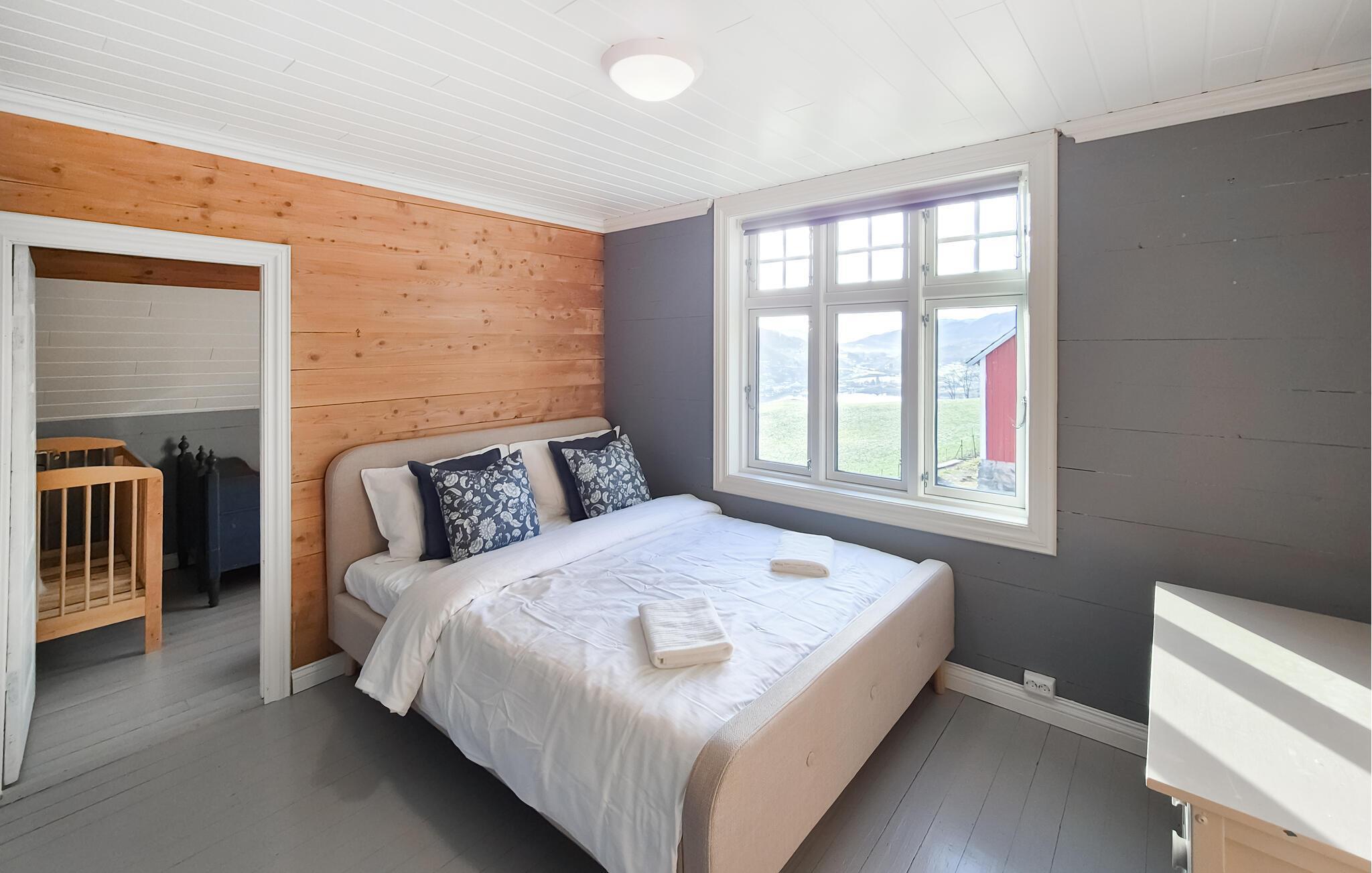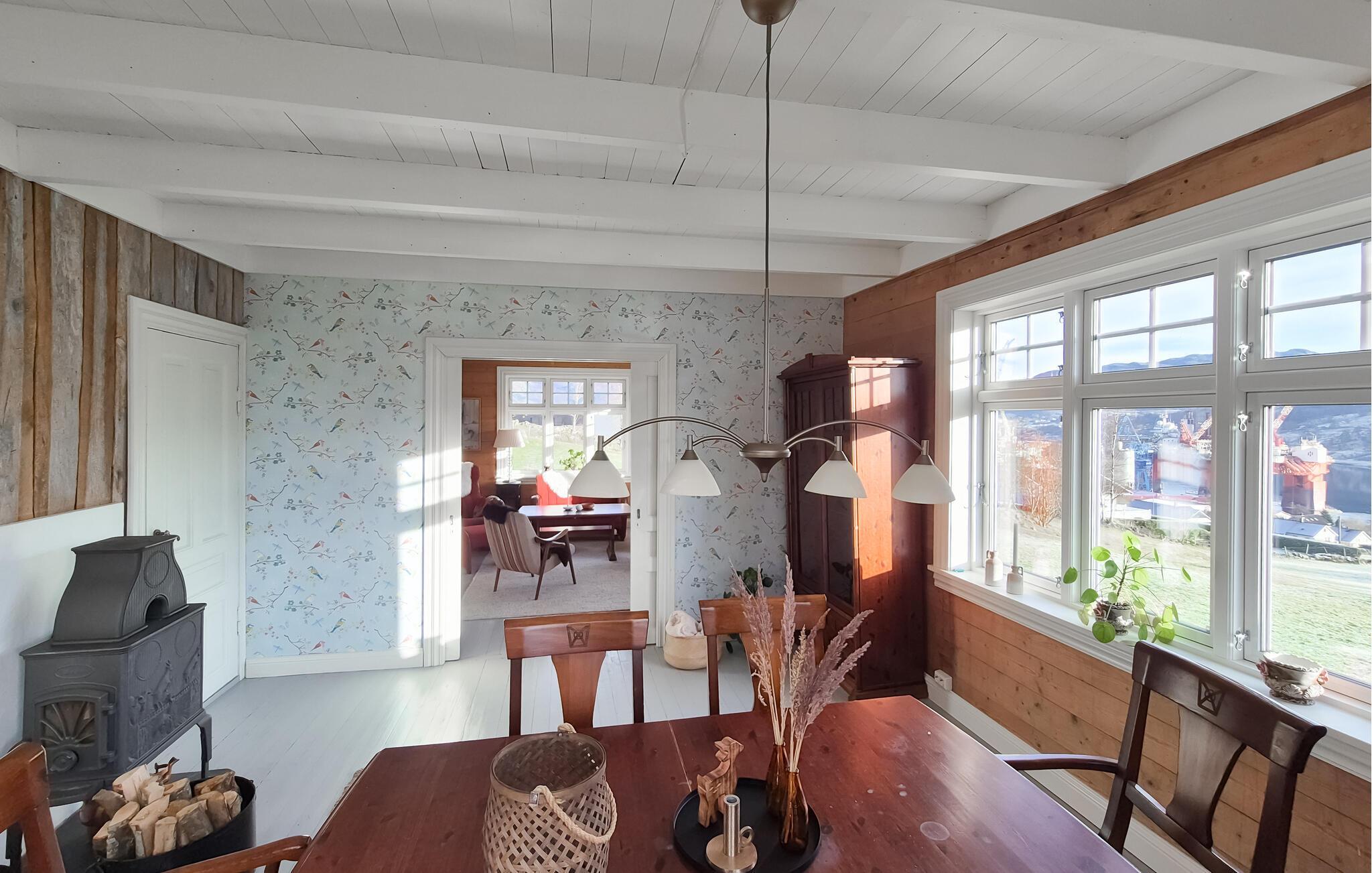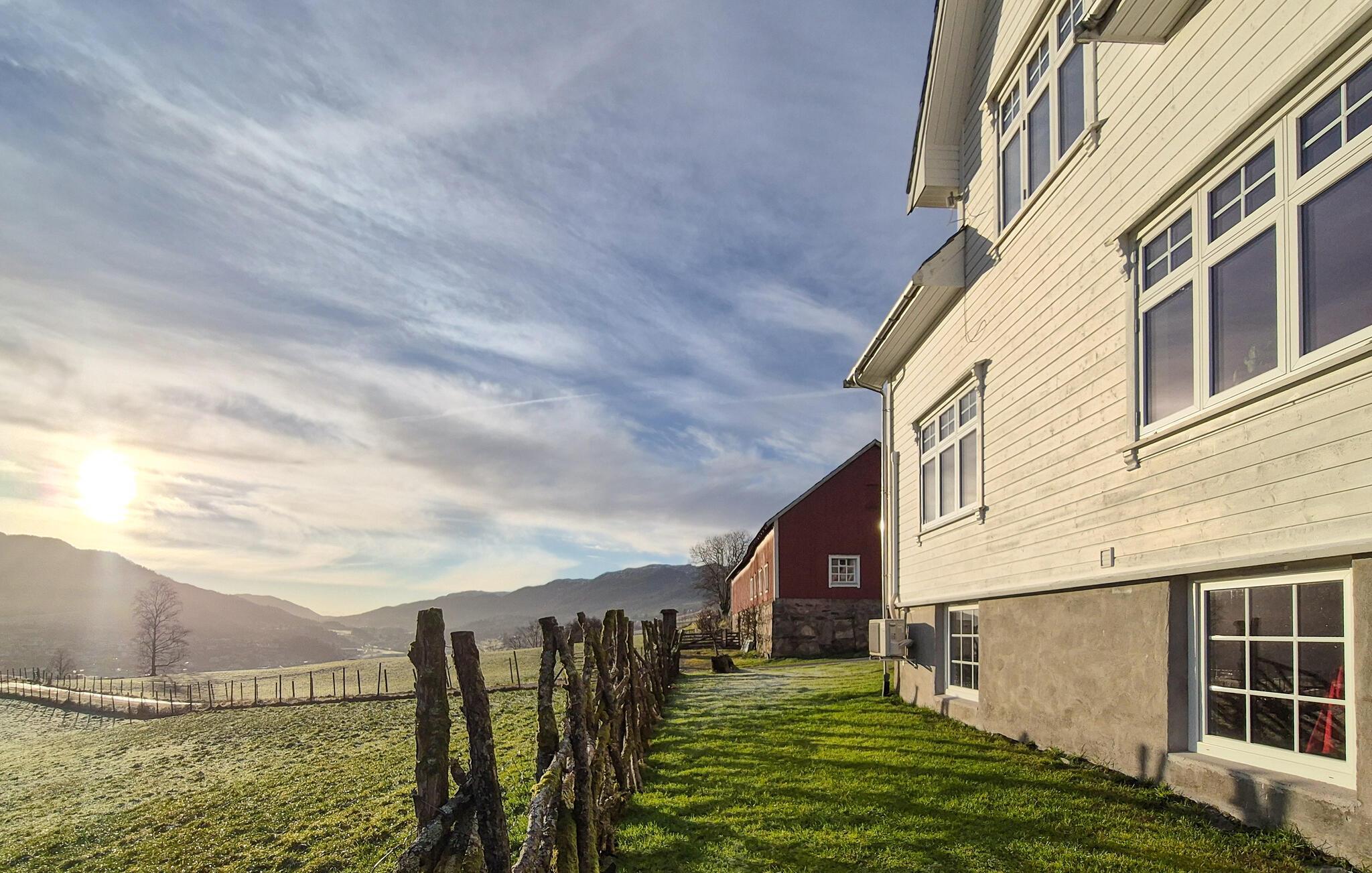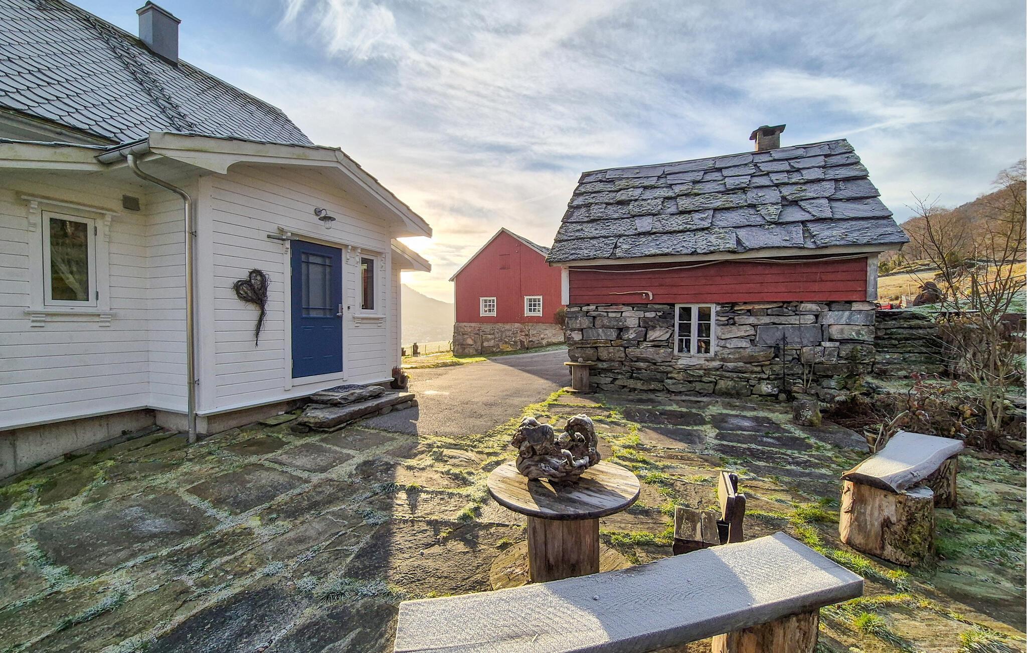 Dette frittliggende, moderniserte gårdshuset kombinerer komfort med romantisk sjarm og inviterer deg til avslappende dager. Det smakfullt innredede interiøret bevarer karakteren til det opprinnelige gårdshuset, samtidig som det tilbyr deg moderne bekvemmeligheter. Flere terrasser rundt huset inviterer deg til å slappe av og nyte de idylliske omgivelsene. Begynn fotturene dine direkte fra gården og opplev den imponerende naturen med spektakulær utsikt. Villsau og et rikt dyreliv sørger for et autentisk liv på landet, mens fjorden med brygge og koselig uteområde ligger bare en kort spasertur unna.
