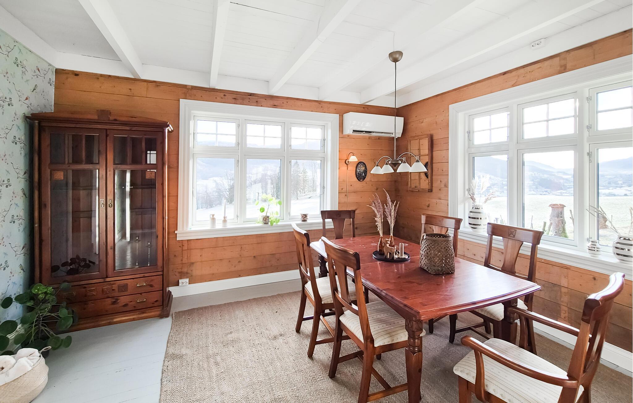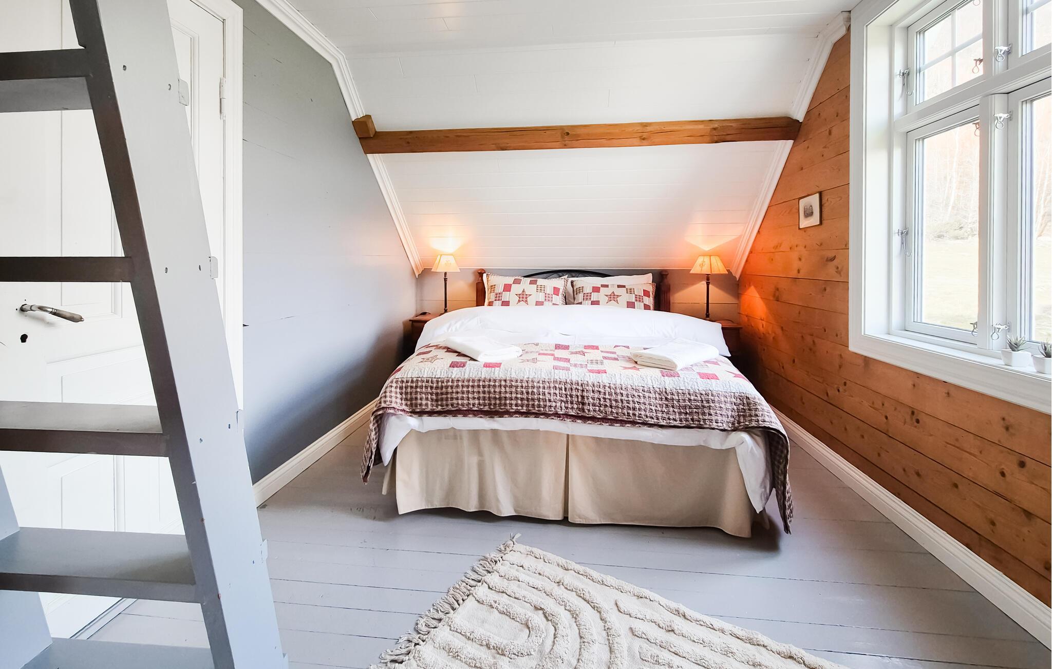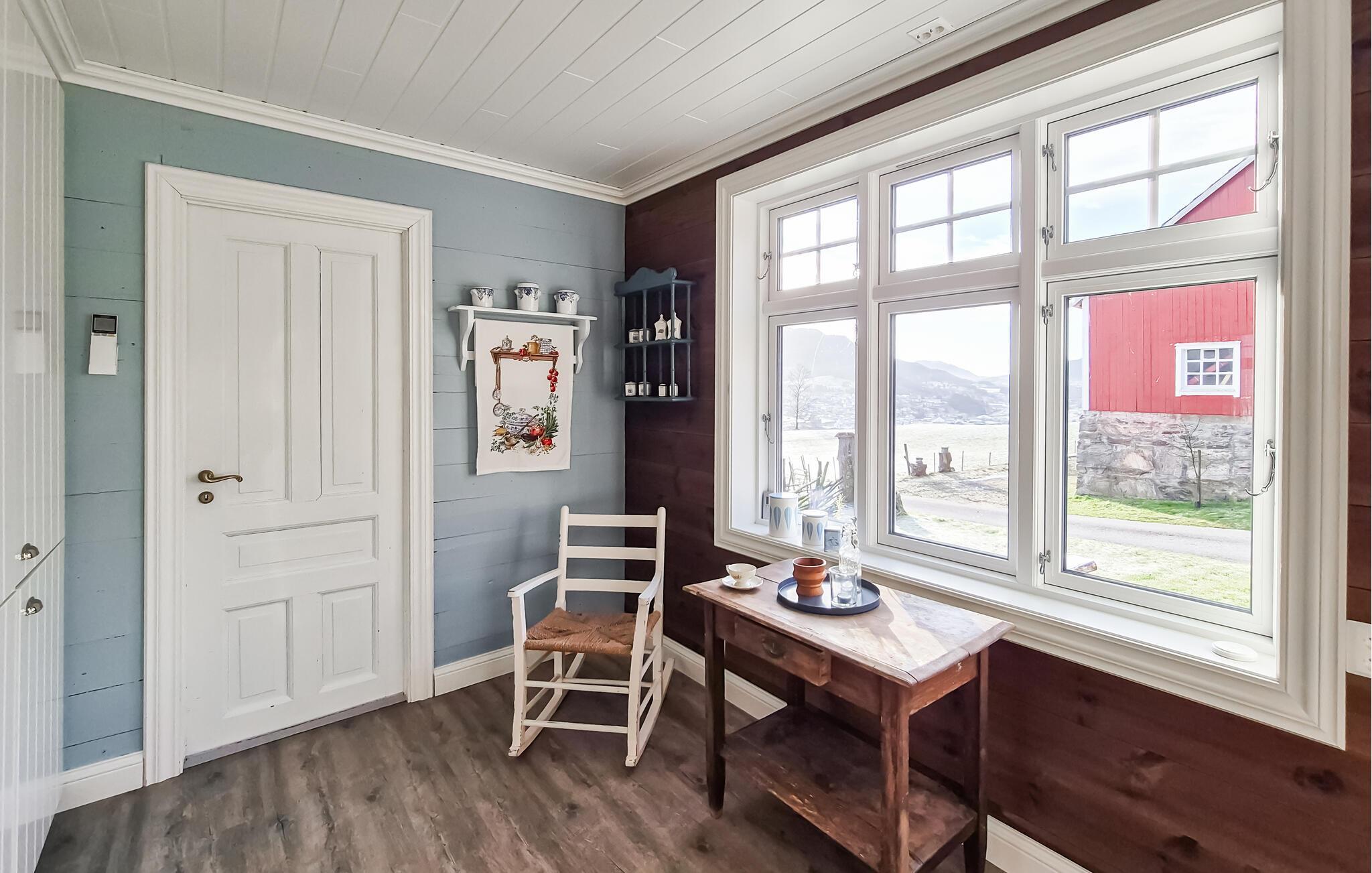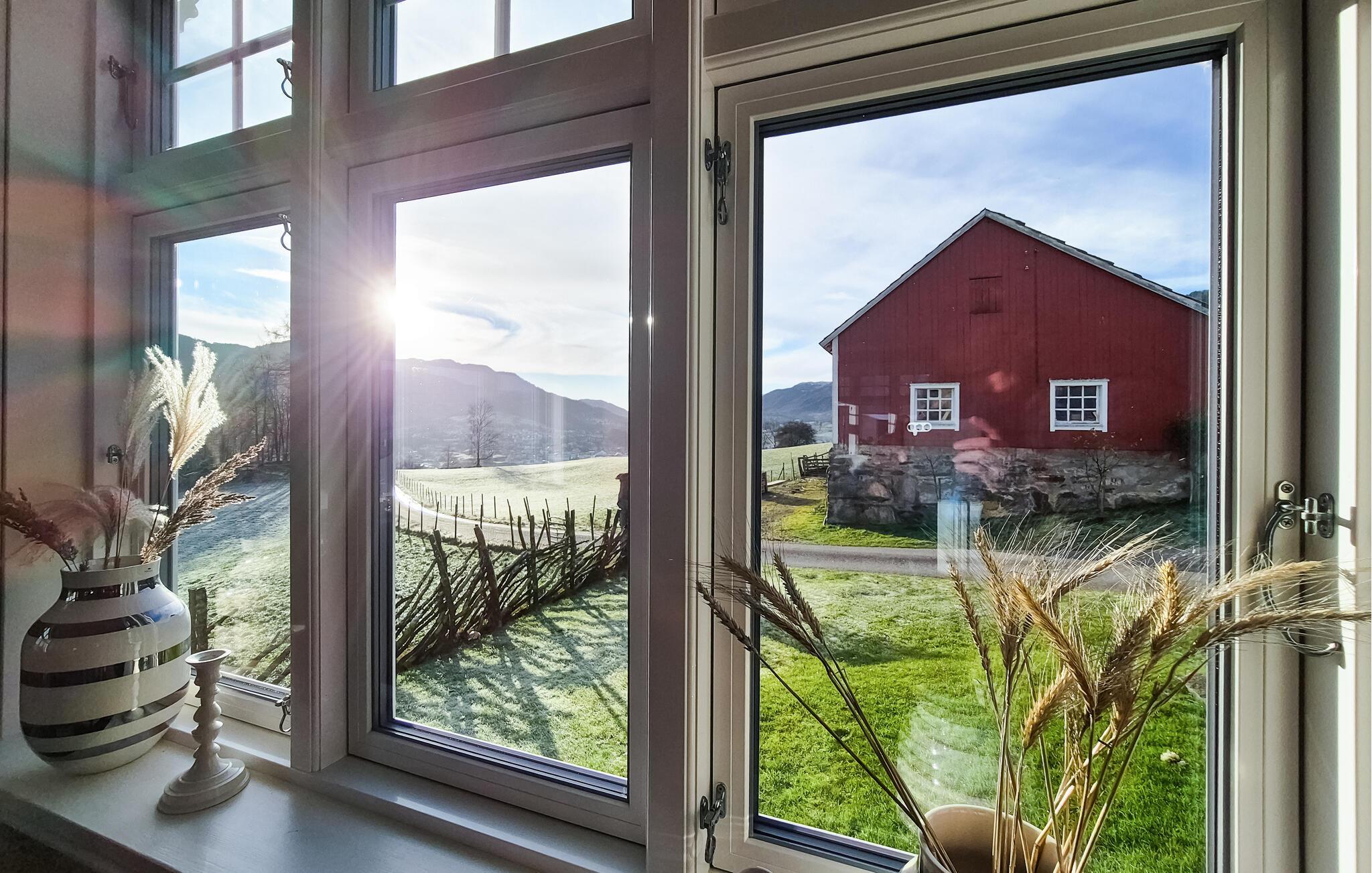 Dette frittliggende, moderniserte gårdshuset kombinerer komfort med romantisk sjarm og inviterer deg til avslappende dager. Det smakfullt innredede interiøret bevarer karakteren til det opprinnelige gårdshuset, samtidig som det tilbyr deg moderne bekvemmeligheter. Flere terrasser rundt huset inviterer deg til å slappe av og nyte de idylliske omgivelsene. Begynn fotturene dine direkte fra gården og opplev den imponerende naturen med spektakulær utsikt. Villsau og et rikt dyreliv sørger for et autentisk liv på landet, mens fjorden med brygge og koselig uteområde ligger bare en kort spasertur unna.