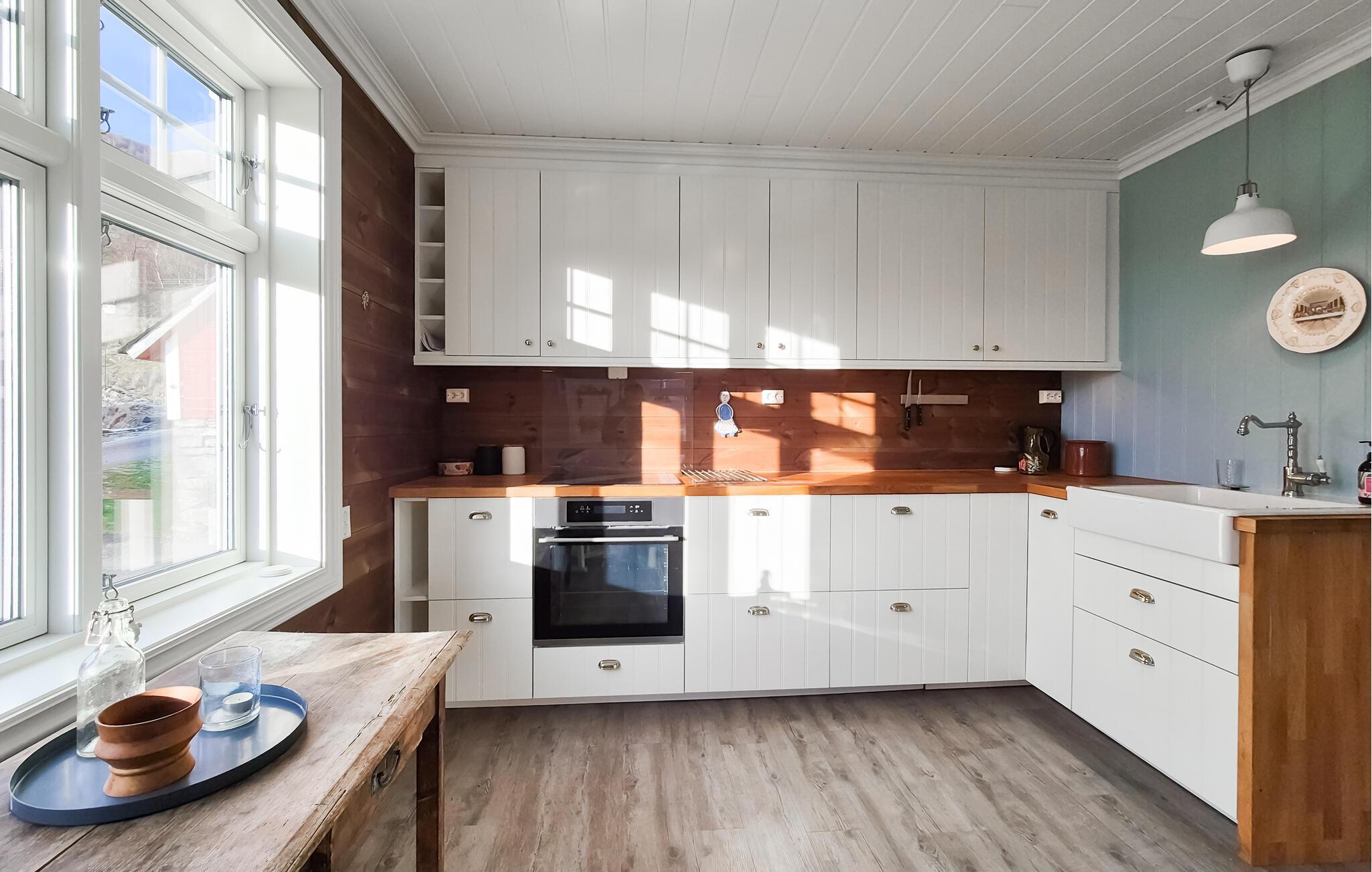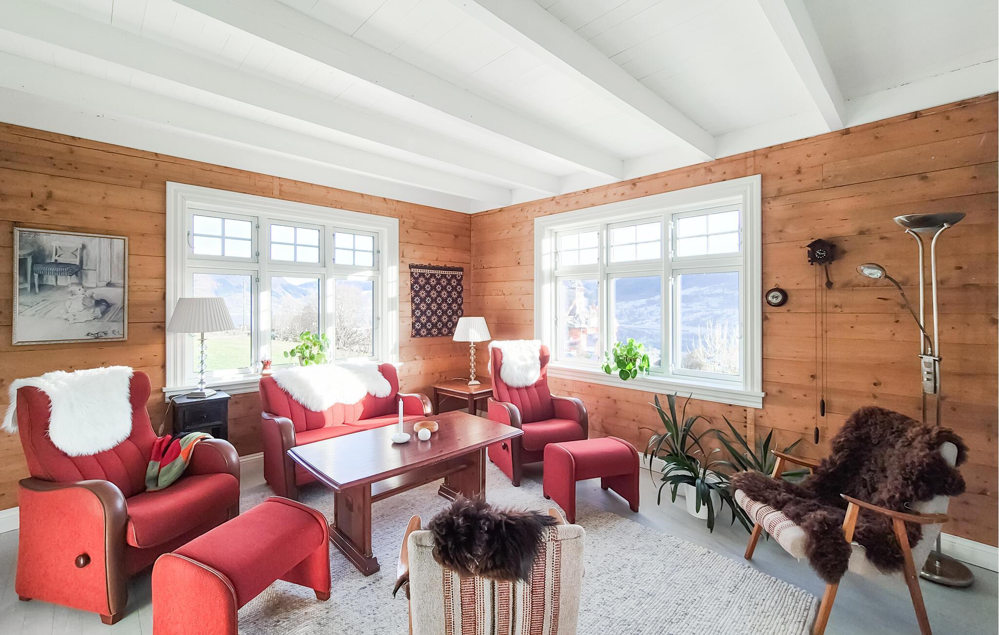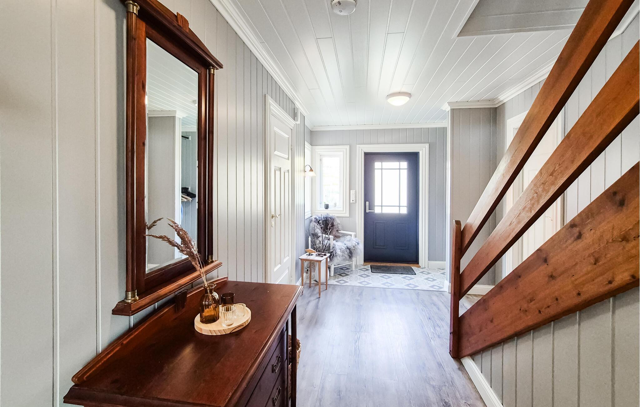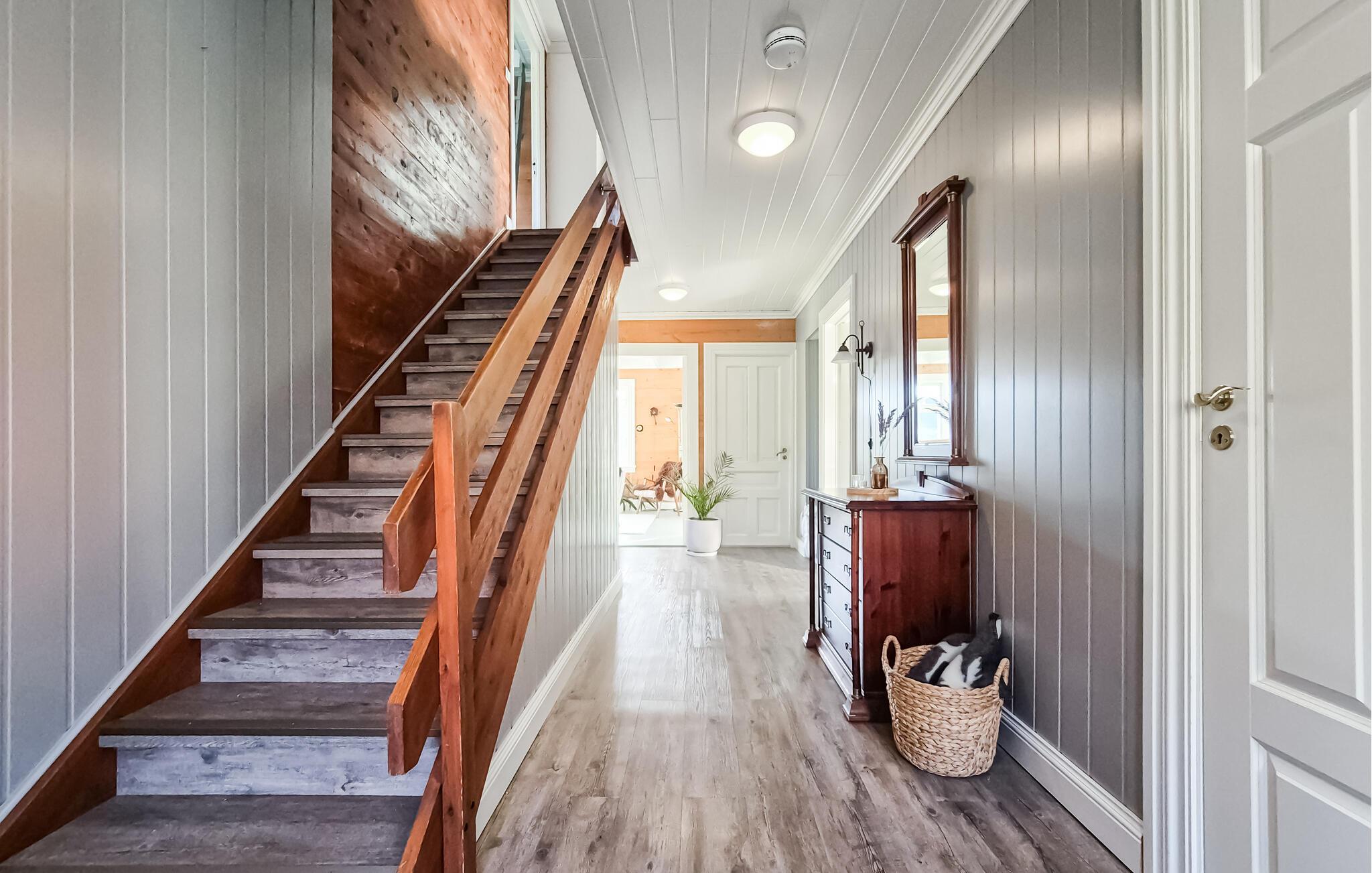 Dette frittliggende, moderniserte gårdshuset kombinerer komfort med romantisk sjarm og inviterer deg til avslappende dager. Det smakfullt innredede interiøret bevarer karakteren til det opprinnelige gårdshuset, samtidig som det tilbyr deg moderne bekvemmeligheter. Flere terrasser rundt huset inviterer deg til å slappe av og nyte de idylliske omgivelsene. Begynn fotturene dine direkte fra gården og opplev den imponerende naturen med spektakulær utsikt. Villsau og et rikt dyreliv sørger for et autentisk liv på landet, mens fjorden med brygge og koselig uteområde ligger bare en kort spasertur unna.