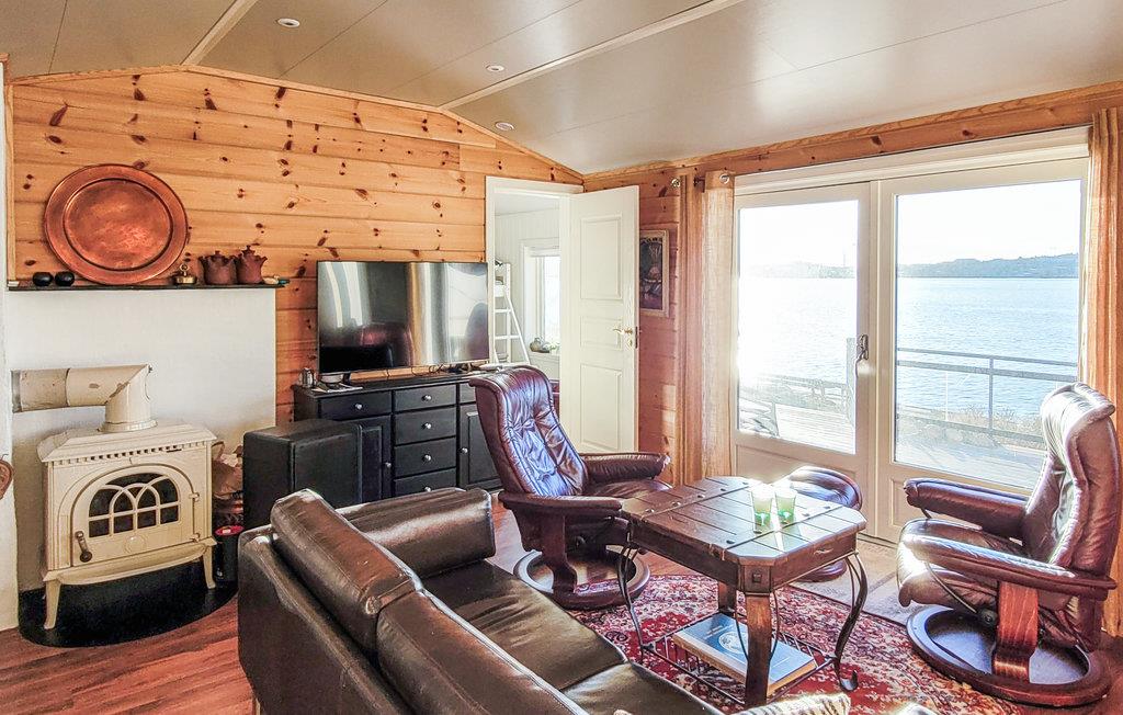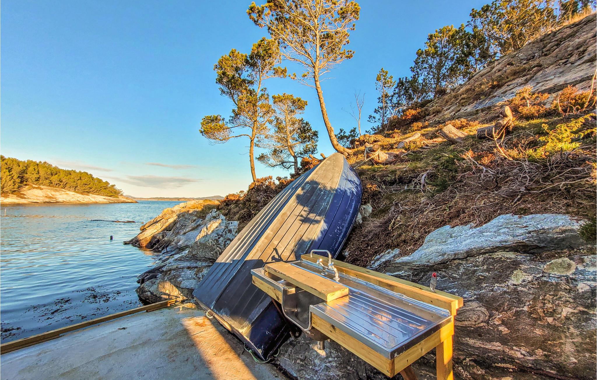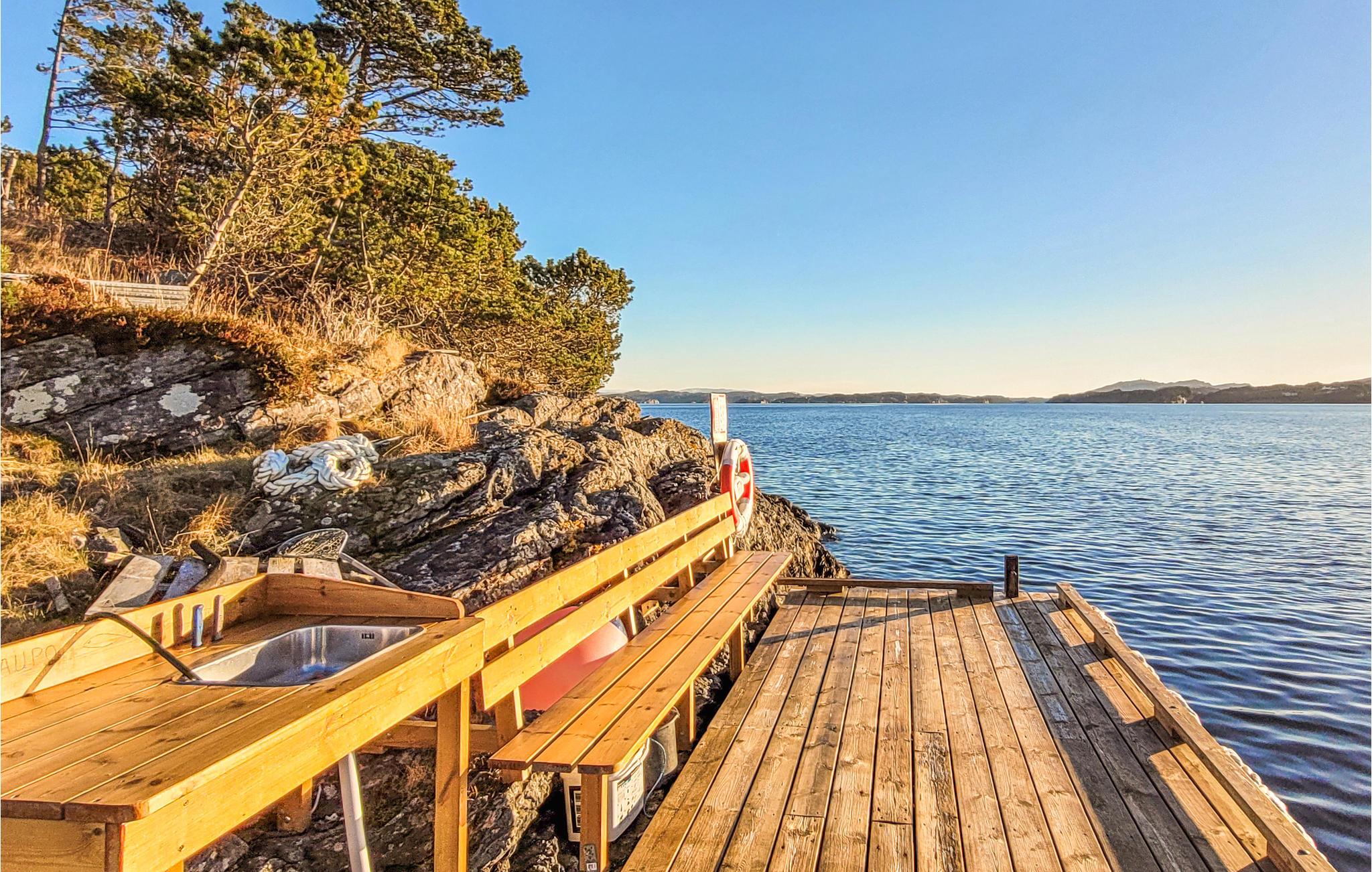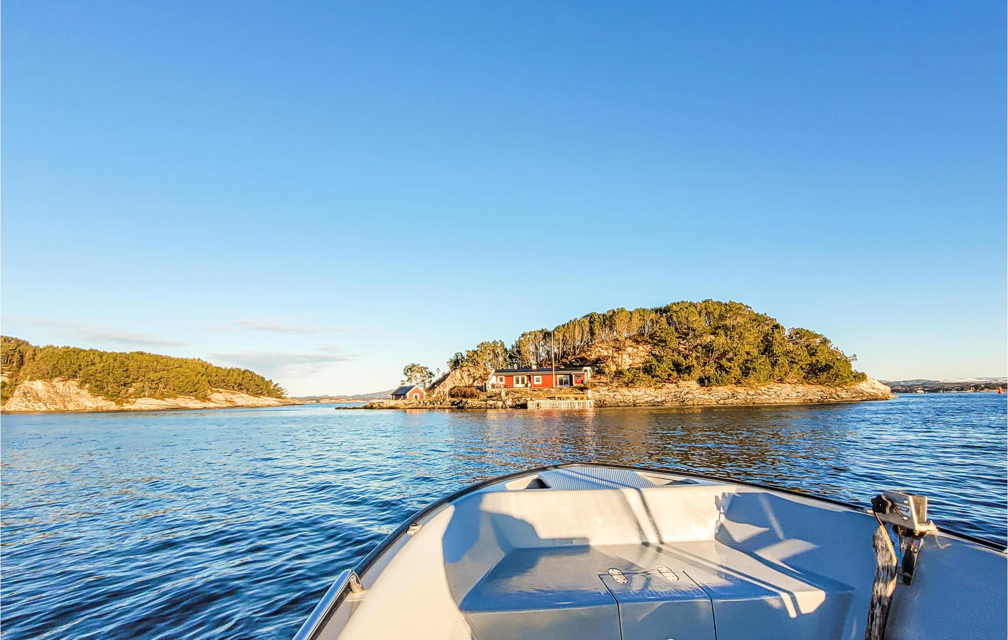 Er du på utkikk etter et romslig hus med en usedvanlig fredelig beliggenhet? Her bor du ikke bare i et tilbaketrukket feriehus i idylliske omgivelser, du får også en liten øy helt for deg selv, for hele øya tilhører hytta! Innkvarteringen er delt inn i to leiligheter med eget kjøkken, bad og stue, noe som gjør den perfekt for to vennlige familier eller litt større grupper, eller for dem som trenger litt plass. Her er det lagt til rette for en avslappende ferie, og dere har all den komforten dere trenger for et vellykket opphold. Dere kan glede dere til å lage mat sammen og hyggekvelder ved de store vinduene med utsikt over fjorden. Uteområdet har gode terrasser med fantastisk utsikt over fjorden og to brygger med gode båtplasser, og det er også gode fortøyningsmuligheter på bryggen ved naustet. Her kan du tilbringe ferien med fiske og bading og lade batteriene.