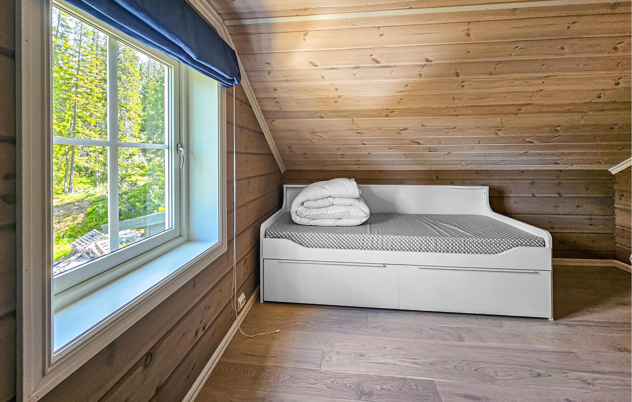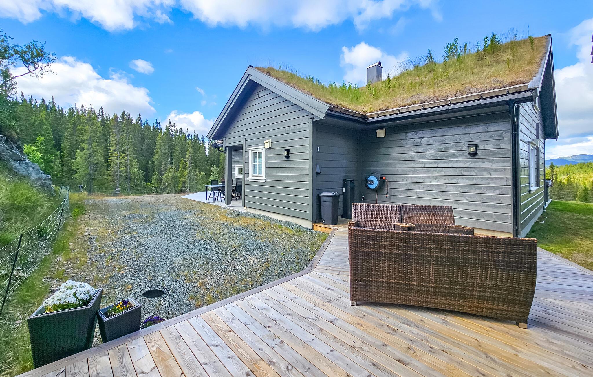 Pust inn den klare skogsluften mens du slapper av i boblebadet på terrassen og lar blikket vandre over innsjøen. Ta en spasertur til vannkanten og få ny energi med en forfriskende dukkert i det klare vannet, eller prøv fiskelykken.