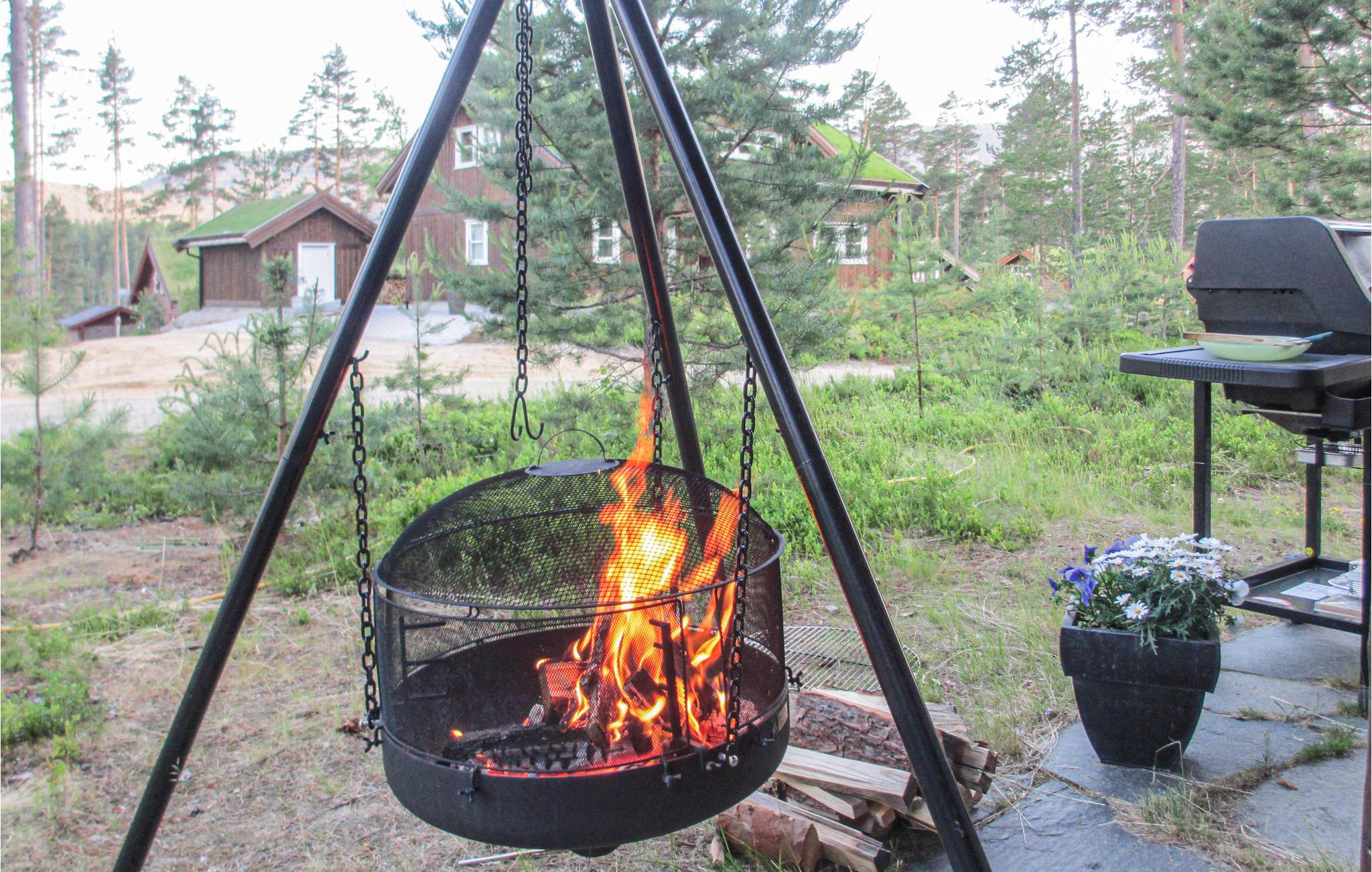 Fra den romslige og vakre terrassen kan du nyte utsikten og solstrålene på fine sommerdager. Feriehuset er omgitt av fortryllende og spennende natur. Utenfor er det også en svingbar grill og en gassgrill, perfekt for å tilberede et deilig måltid.